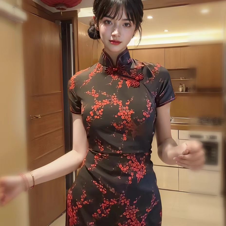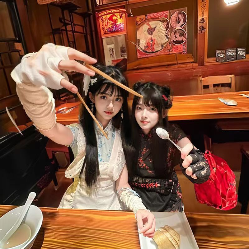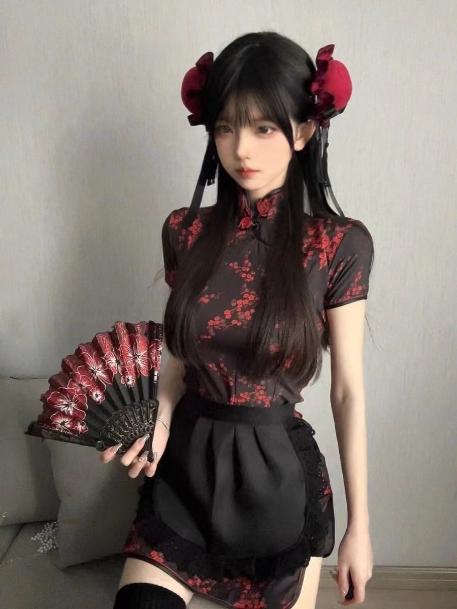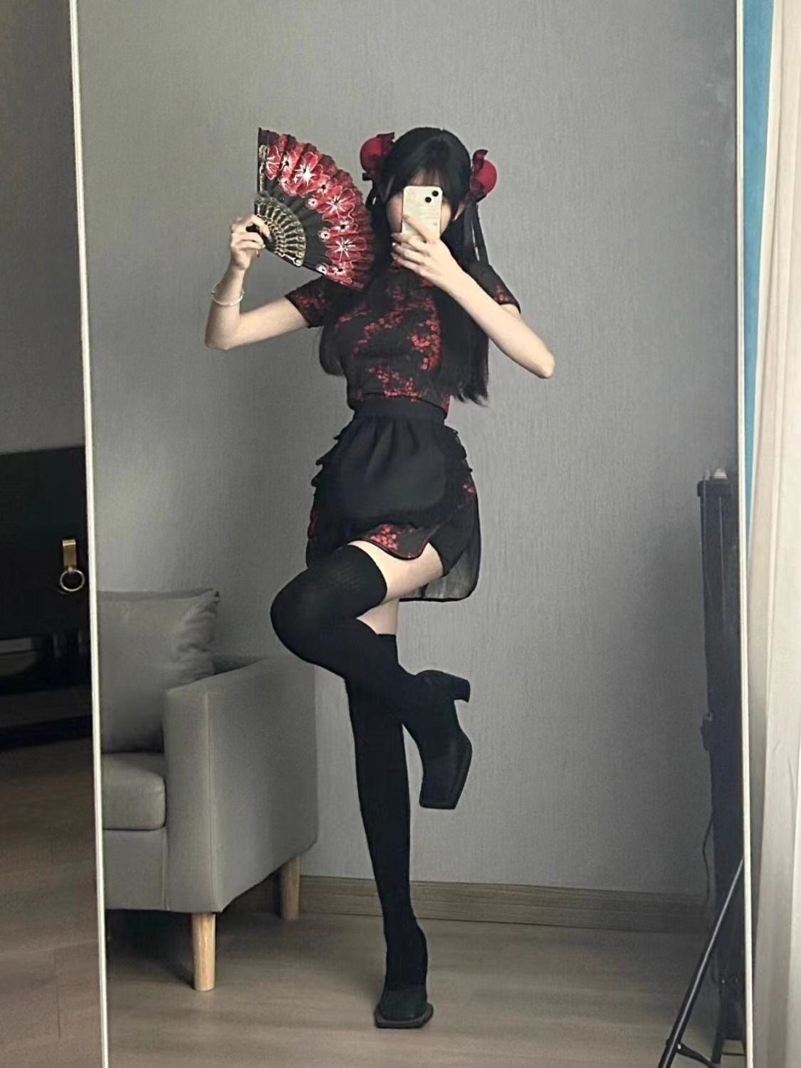 【大码】中华小厨娘洛丽塔日系女仆围裙COS新中式旗袍连衣裙套装