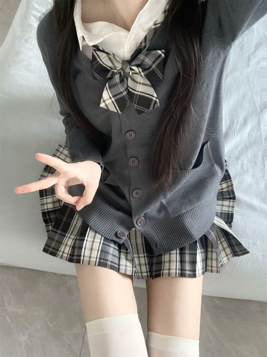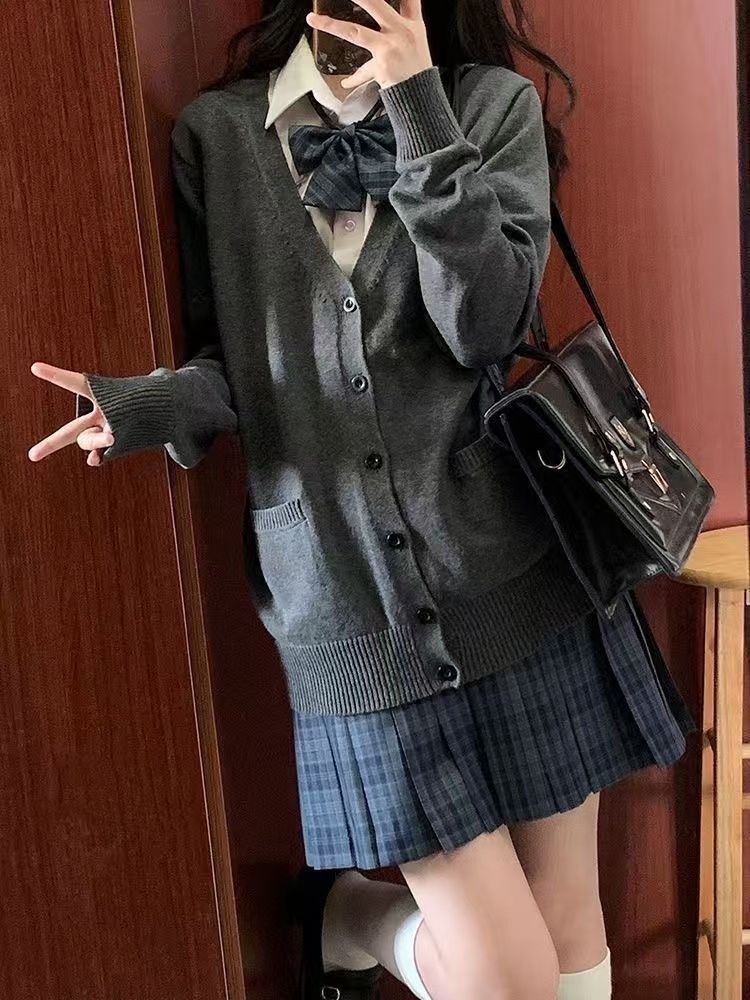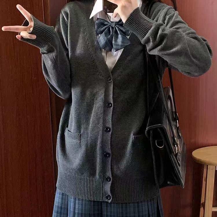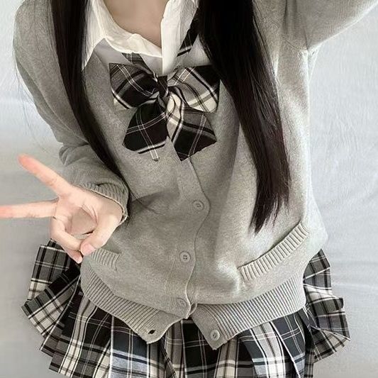 原创JK制服2024春秋学生韩版宽松学院风校供感长袖百搭毛衣开衫女