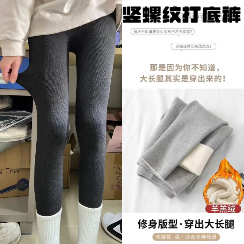 加绒打底裤女秋冬季2024新款外穿显瘦螺纹紧身加厚秋裤保暖裤棉裤