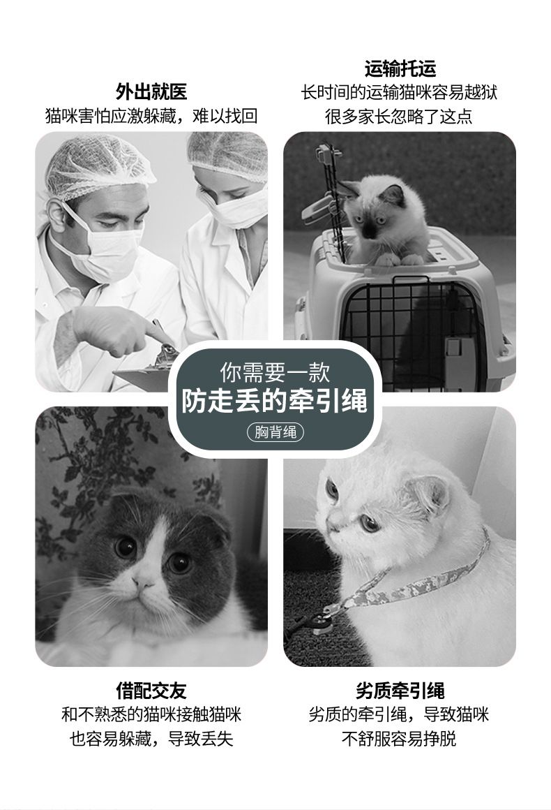 背心式狗狗牵引绳遛猫绳子专用猫咪小型犬猫胸背带防挣脱宠物用品