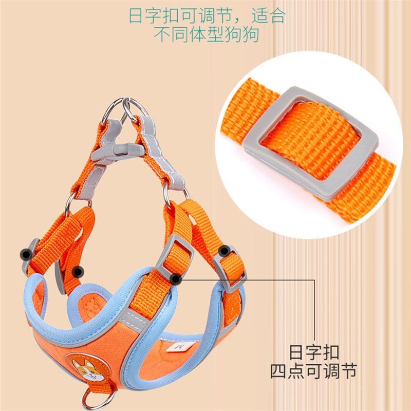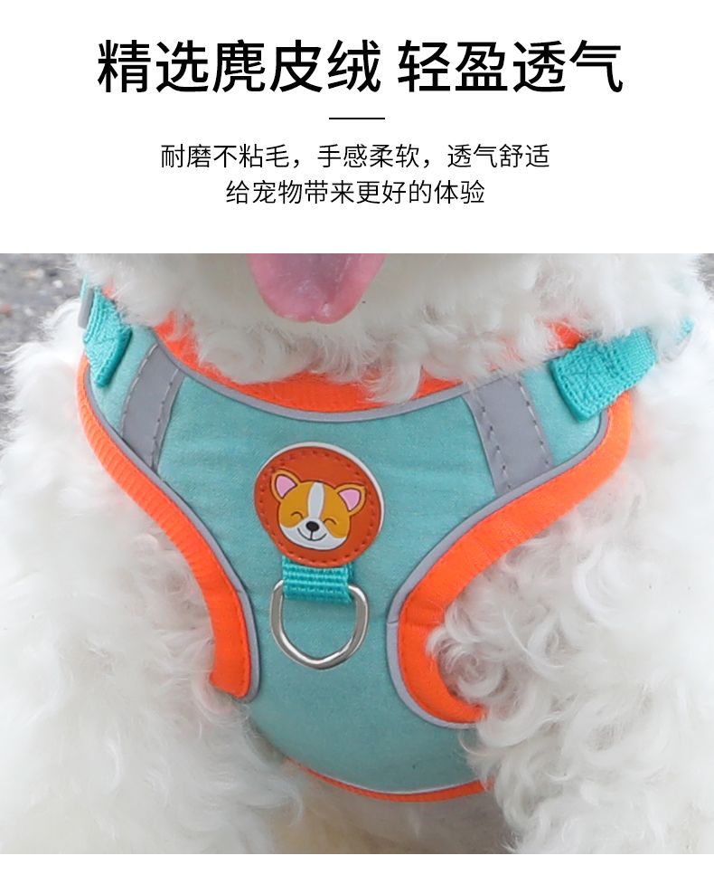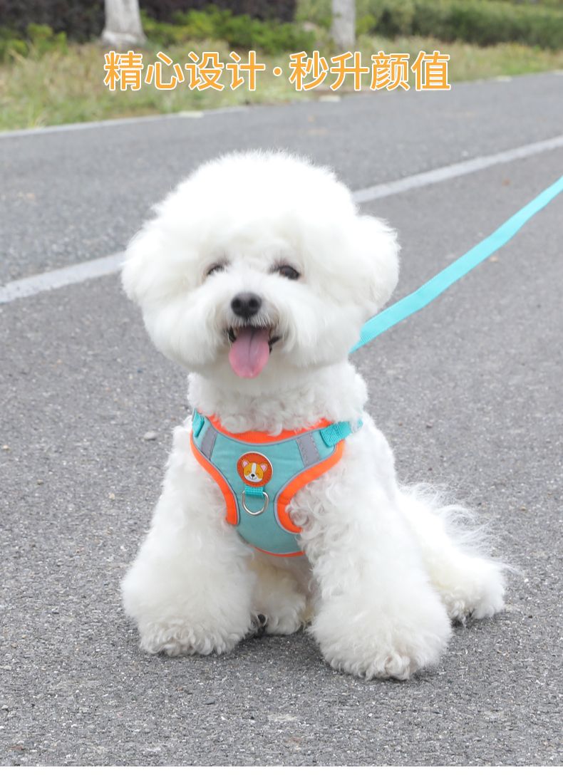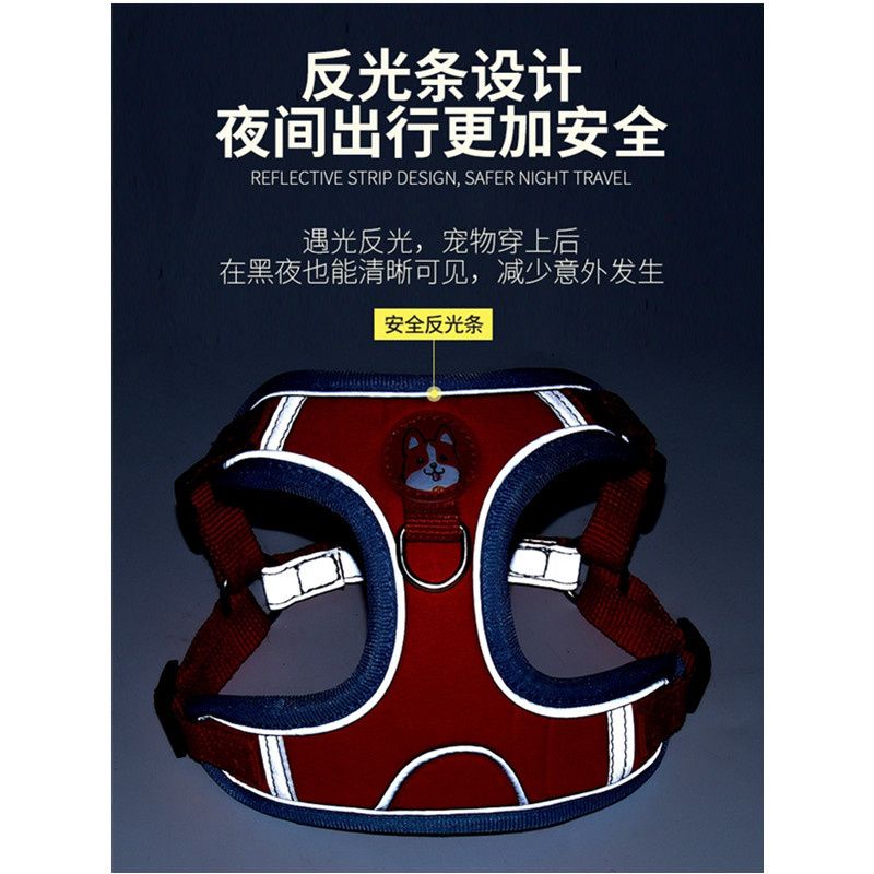 狗狗牵引绳反光胸背带遛狗绳子狗链中小型犬外出背心式可调节
