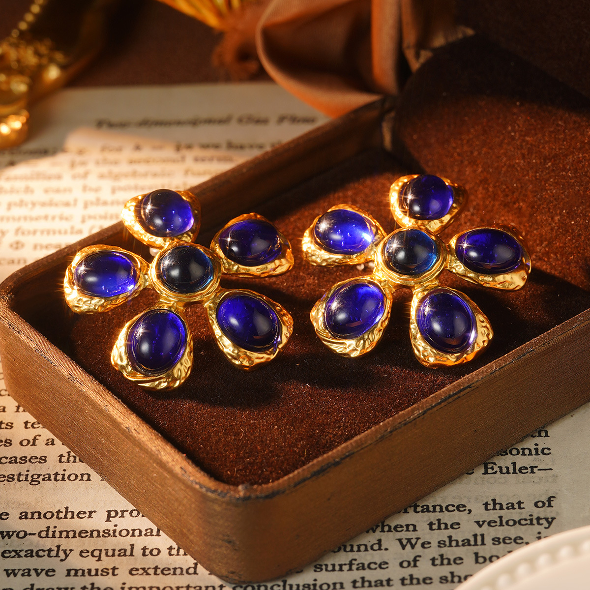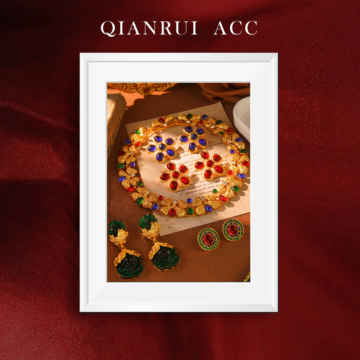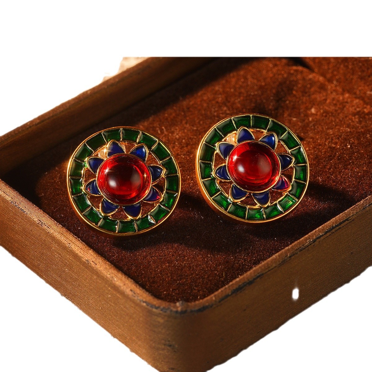 宫廷风花朵耳环小众彩色轻奢高级耳饰品熔岩效果绿玫瑰耳钉中古女
