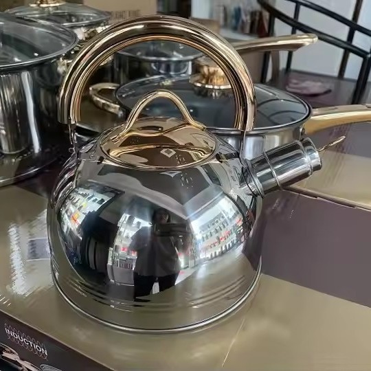 供应跨境货源不锈钢平底壶半球形鸣音水壶燃气灶电磁炉适用烧水壶
