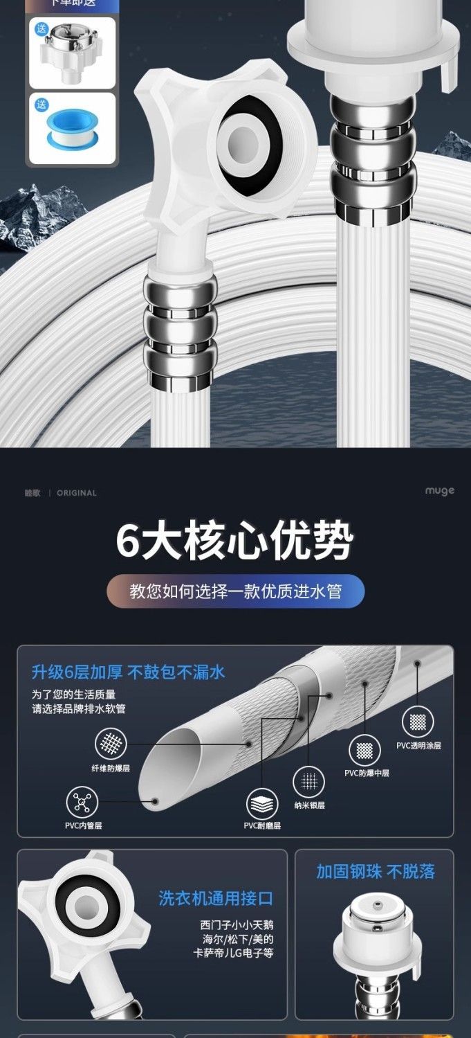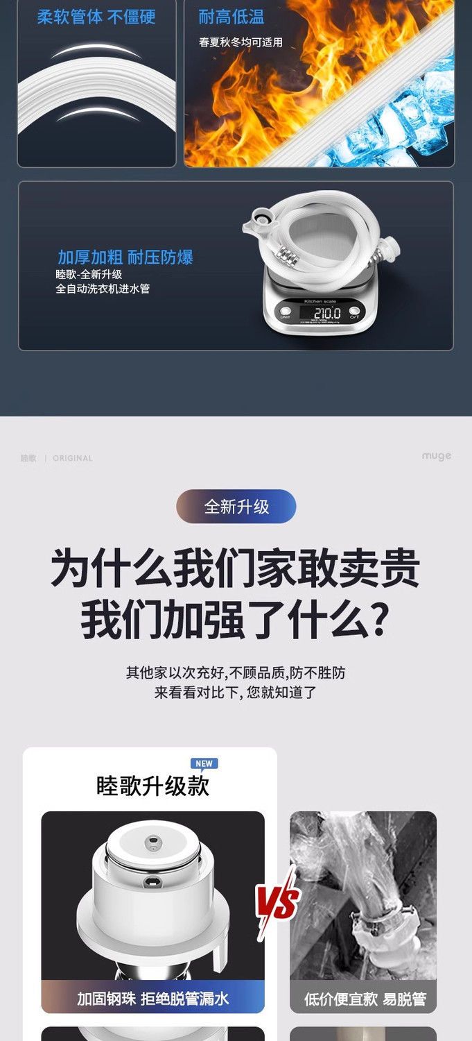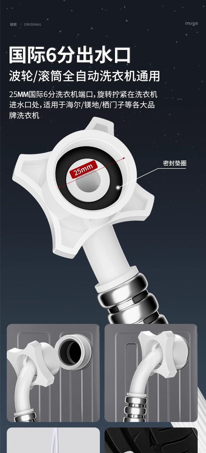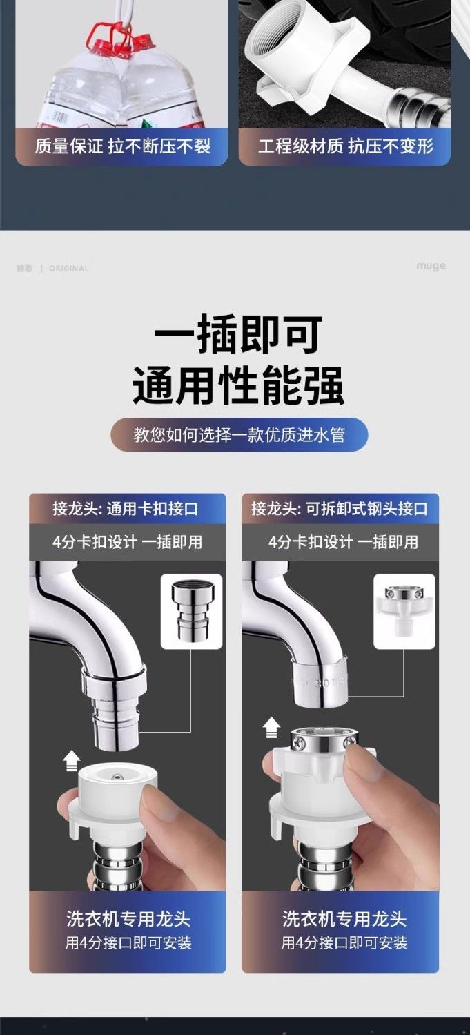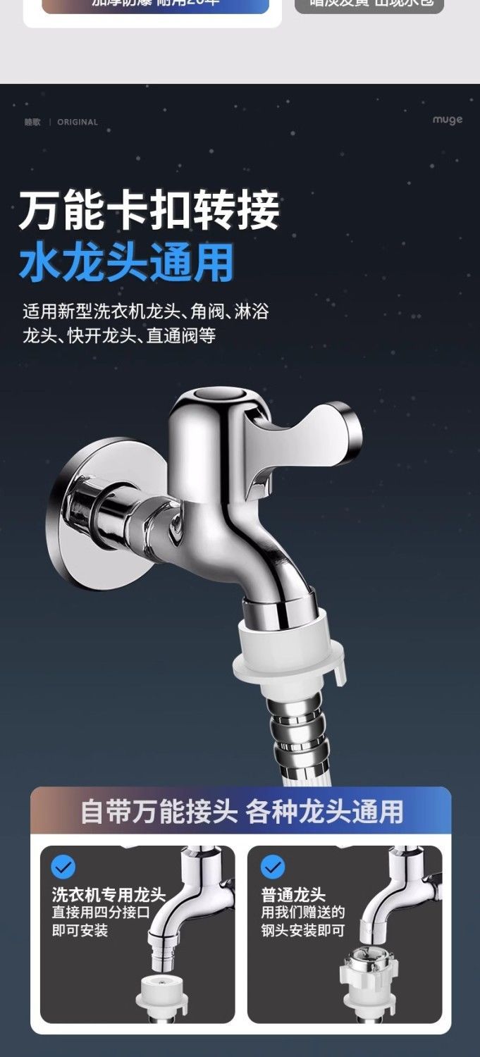 睦歌全自动洗衣机进水管加厚软管通用水龙头防爆管卡扣式万能接头