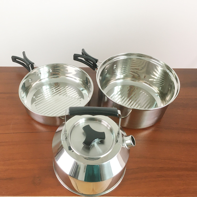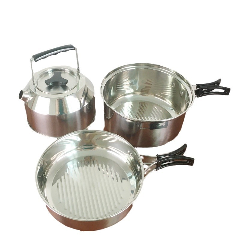 不锈钢露营野户外炊具套锅便携登山锅具收纳便携式野营锅带茶水壶