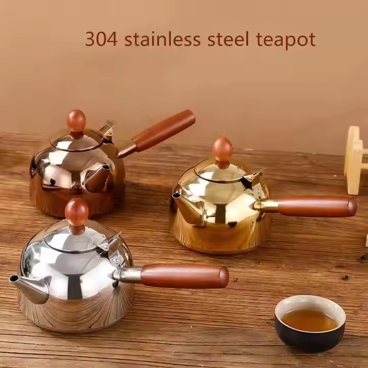 煮茶壶316不锈钢壶侧把壶平底功夫茶烧水壶 茶座泡茶壶户外煮水壶