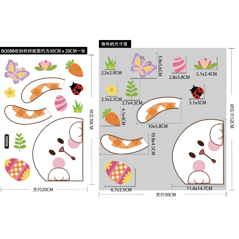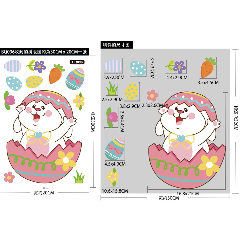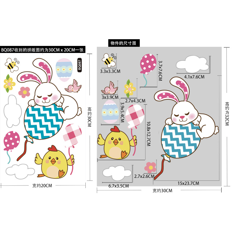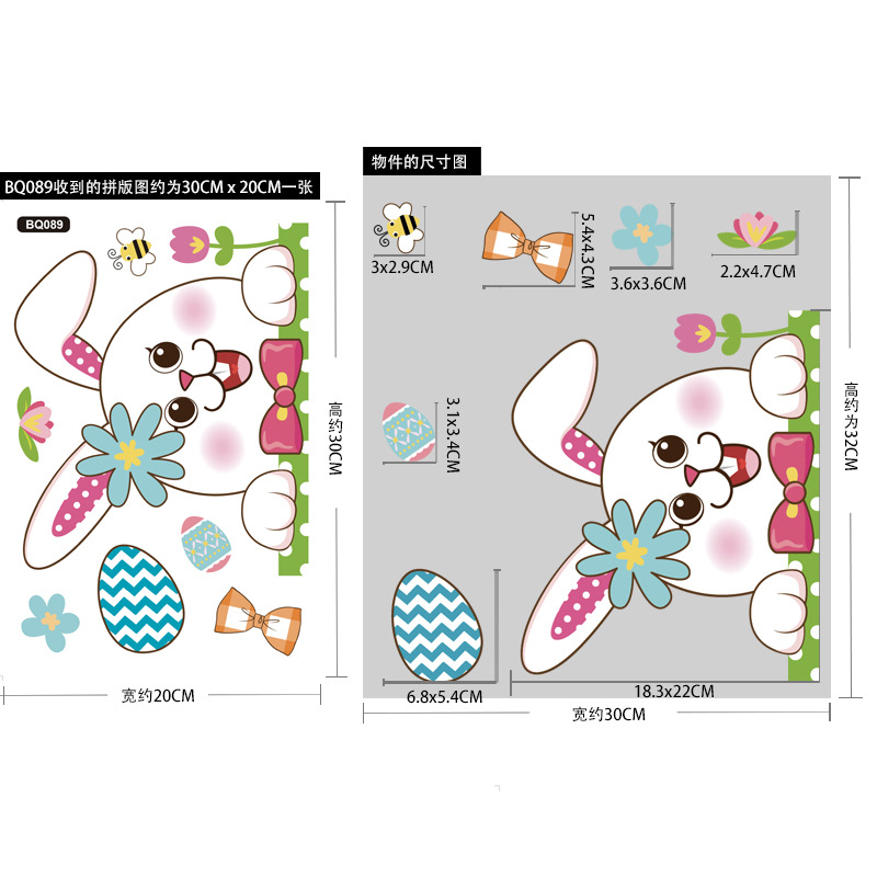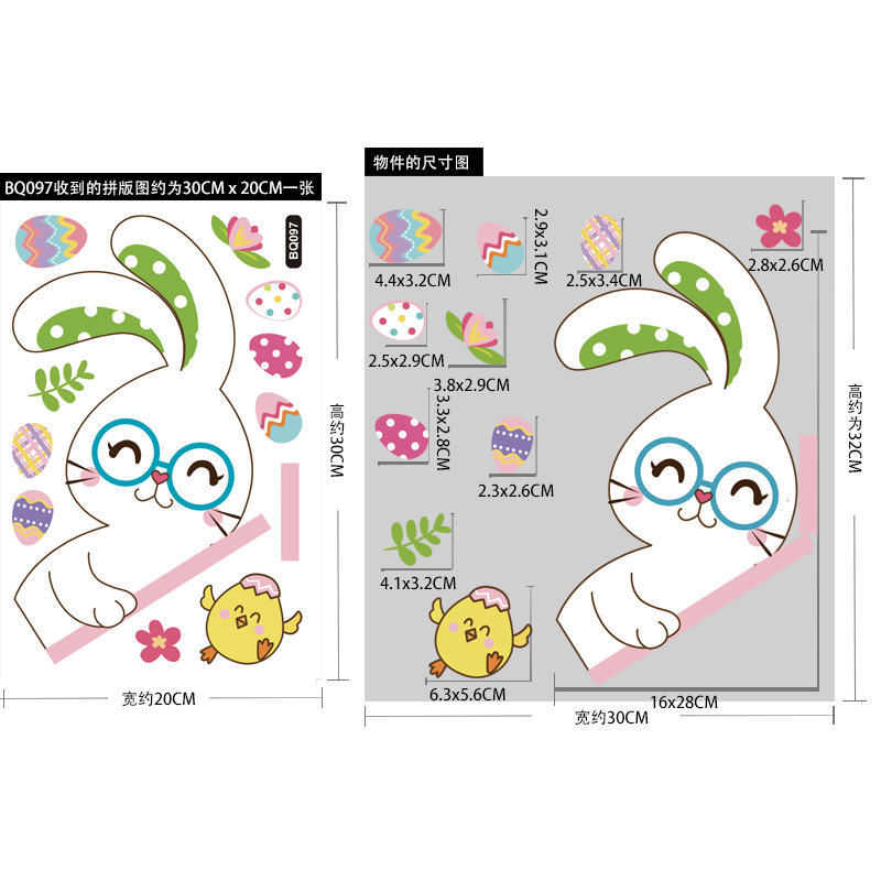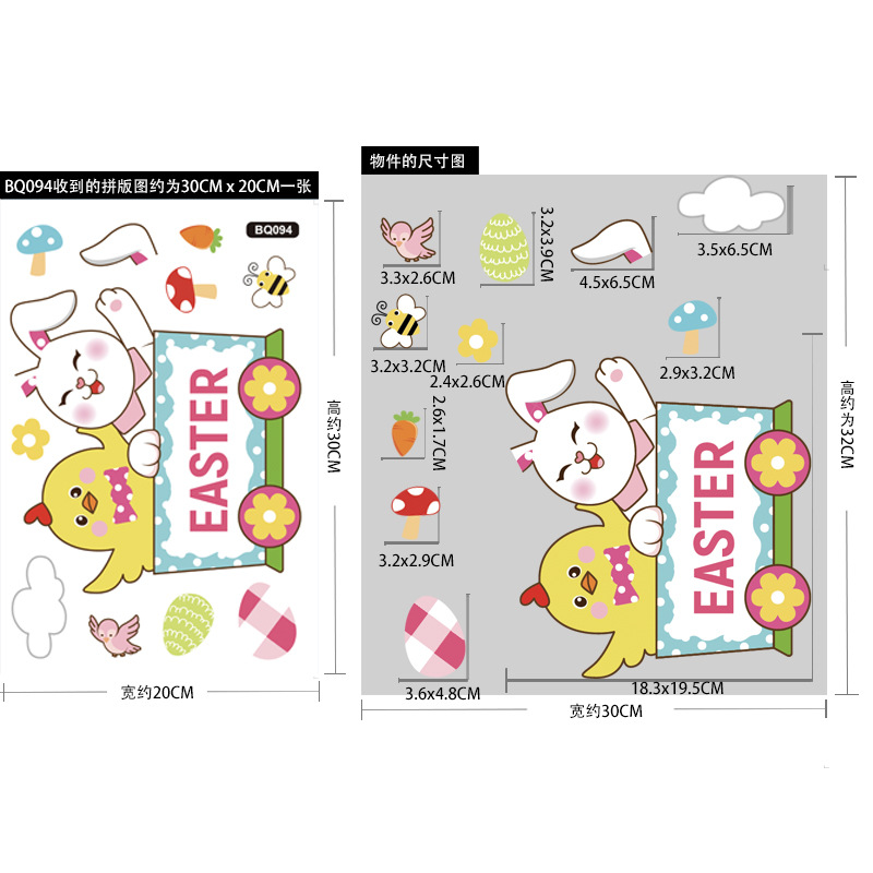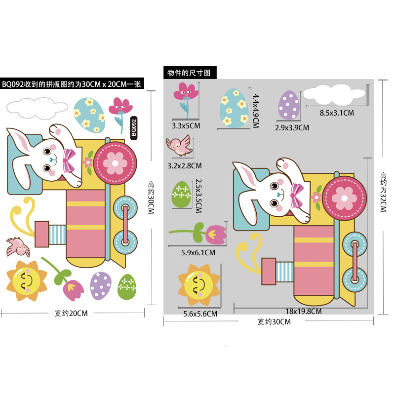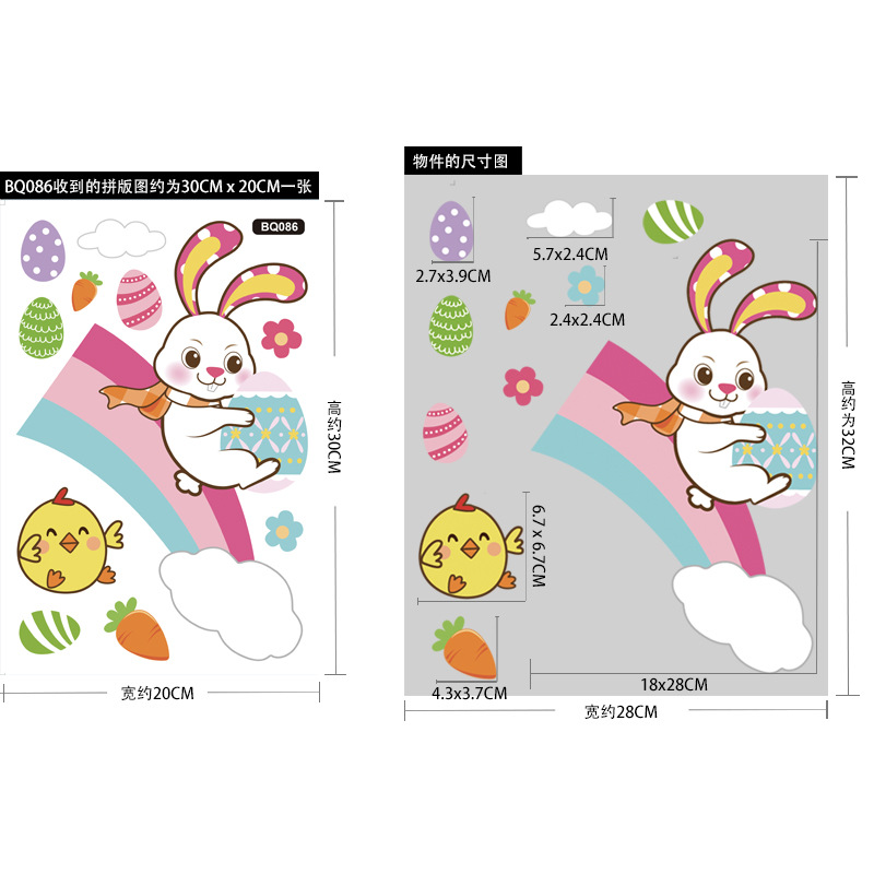 跨境亚马逊复活节贴纸兔子彩蛋可爱卡通墙贴复活节装饰静电贴画