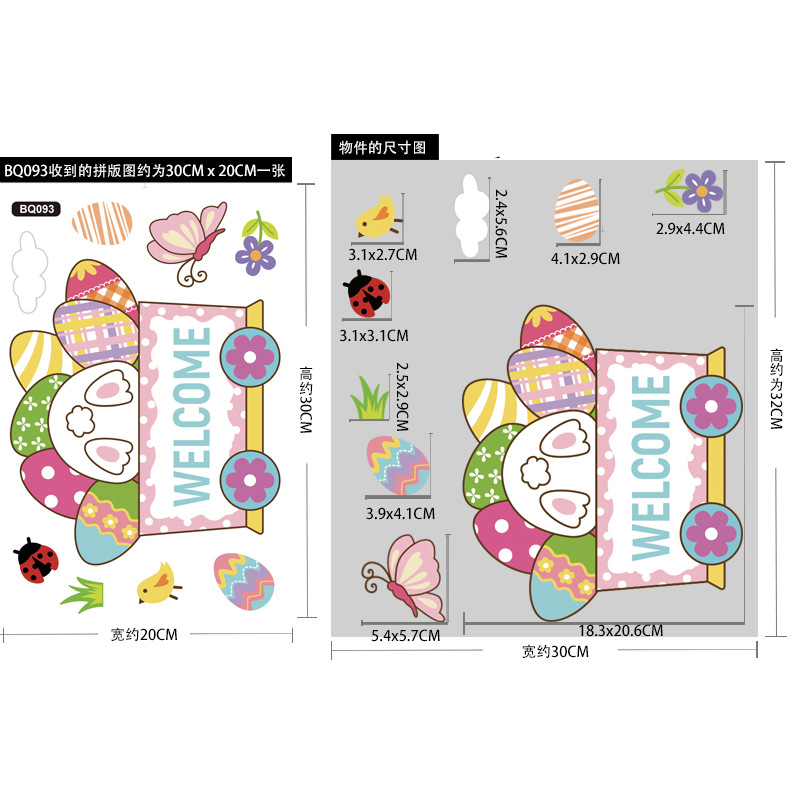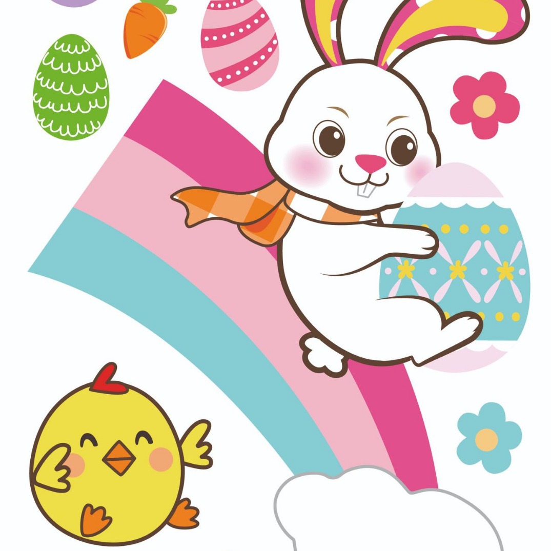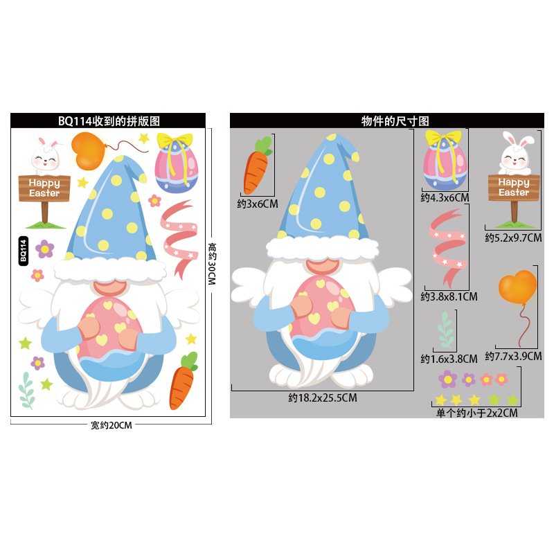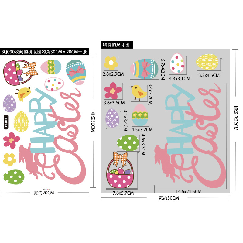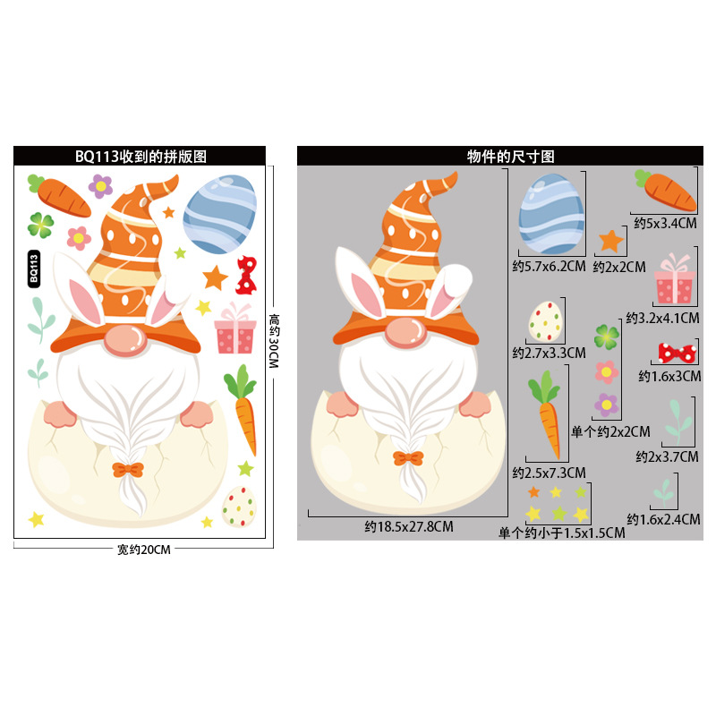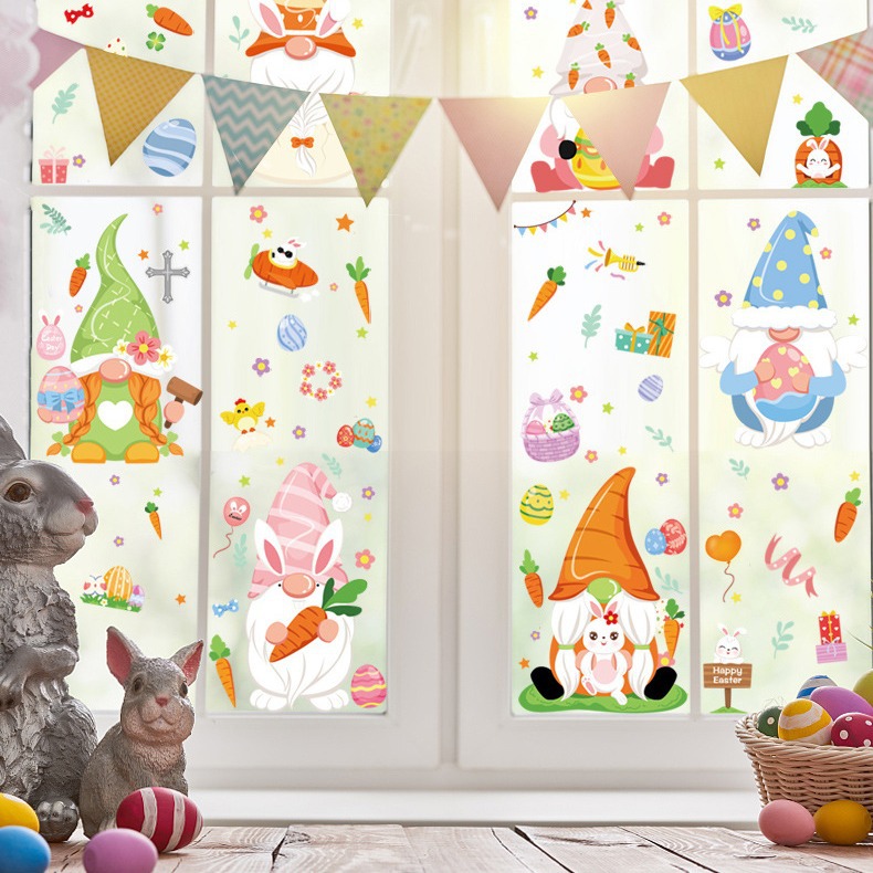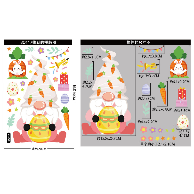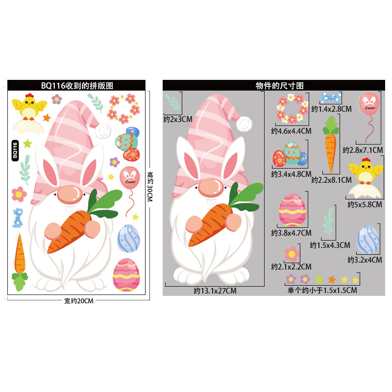 跨境亚马逊复活节贴纸兔子彩蛋可爱卡通墙贴复活节装饰静电贴画