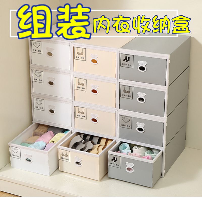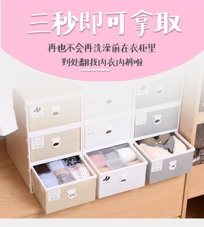 内衣收纳盒抽屉式大号内裤袜子文胸整理塑料收纳箱宿舍收纳三件套