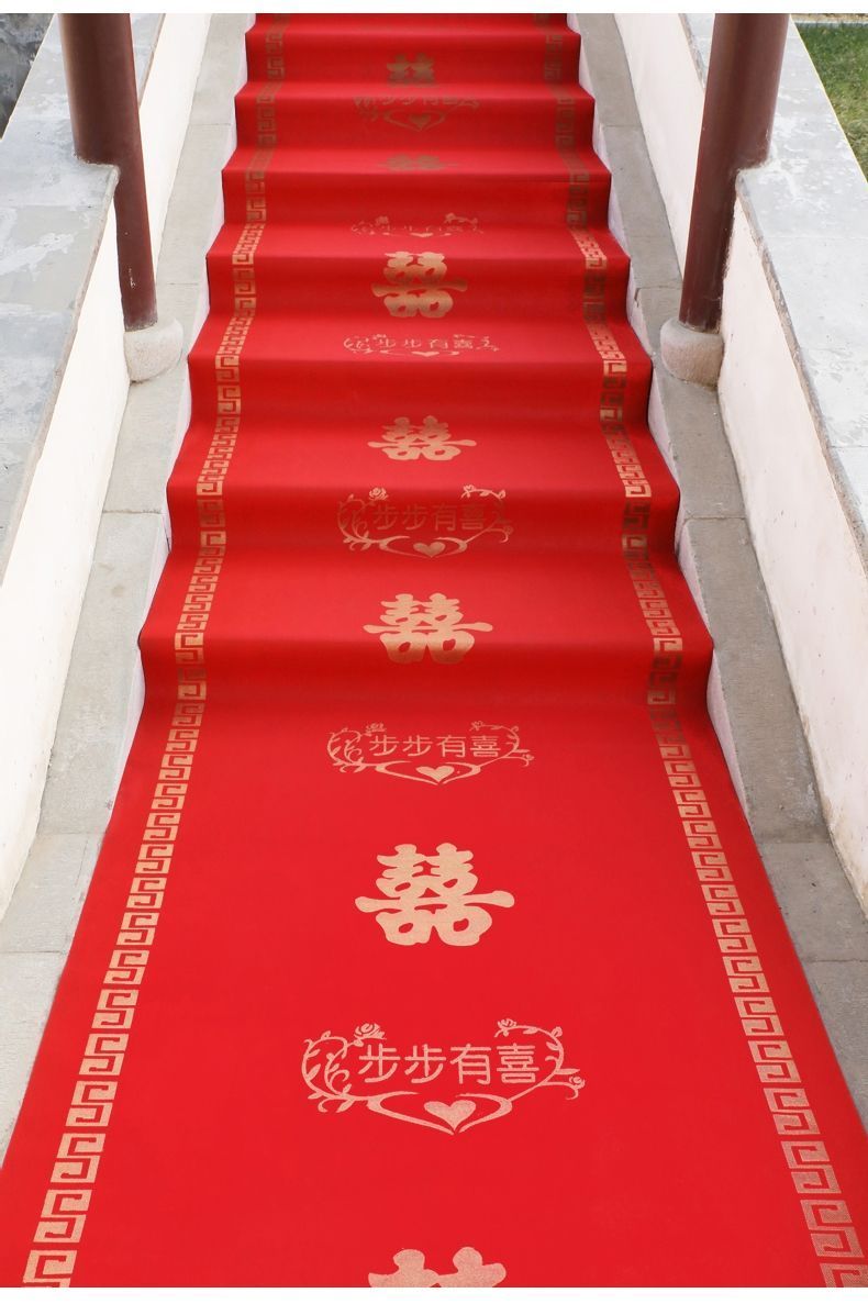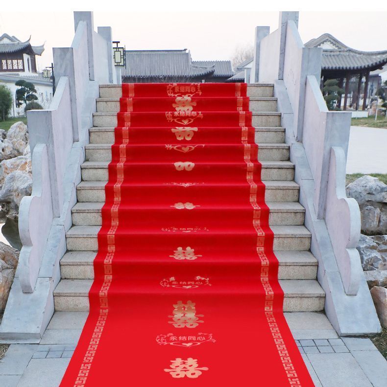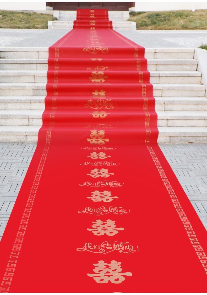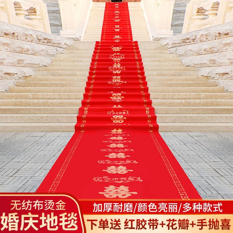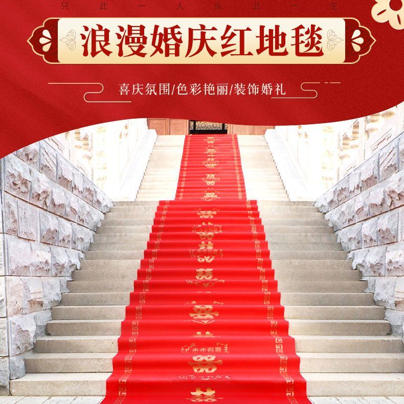 结婚红地毯一次性结婚用婚礼婚庆场景布置喜字红色大加厚楼梯客厅