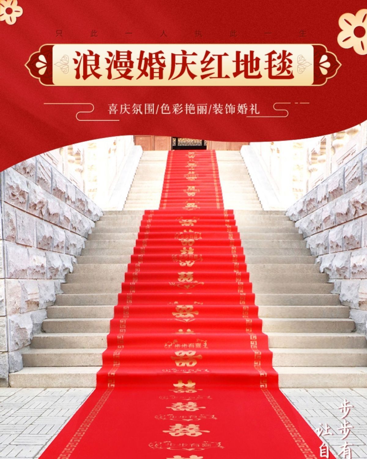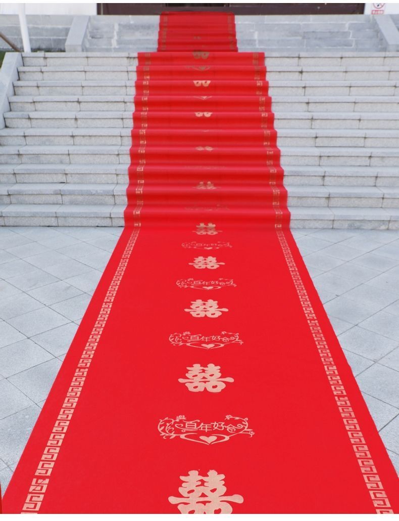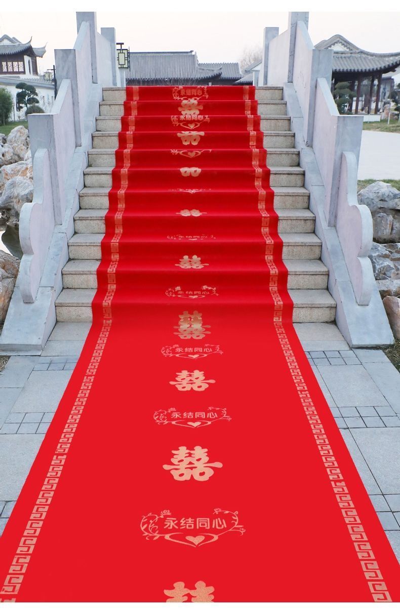 结婚红地毯一次性结婚用婚礼婚庆场景布置喜字红色大加厚楼梯客厅