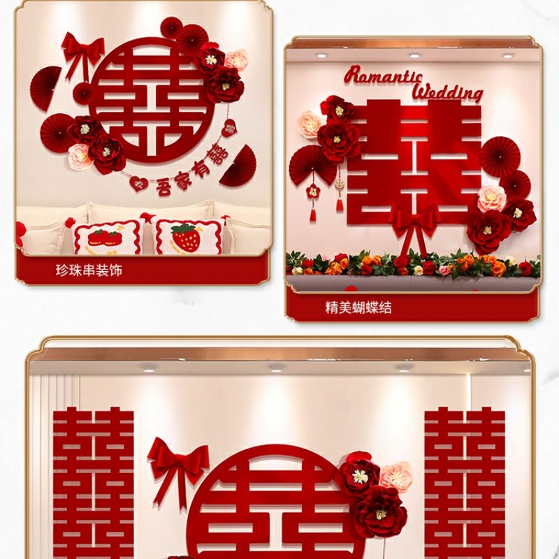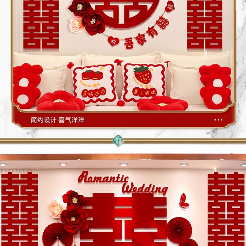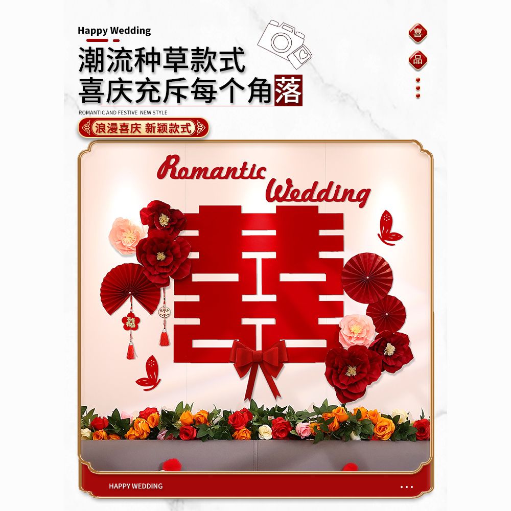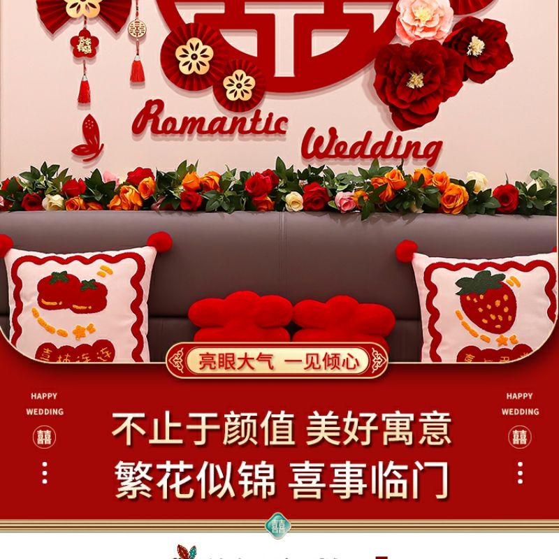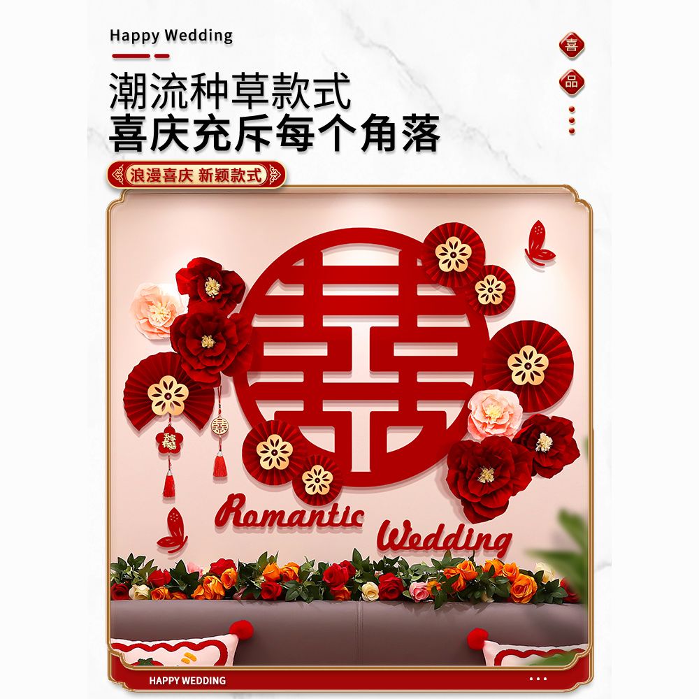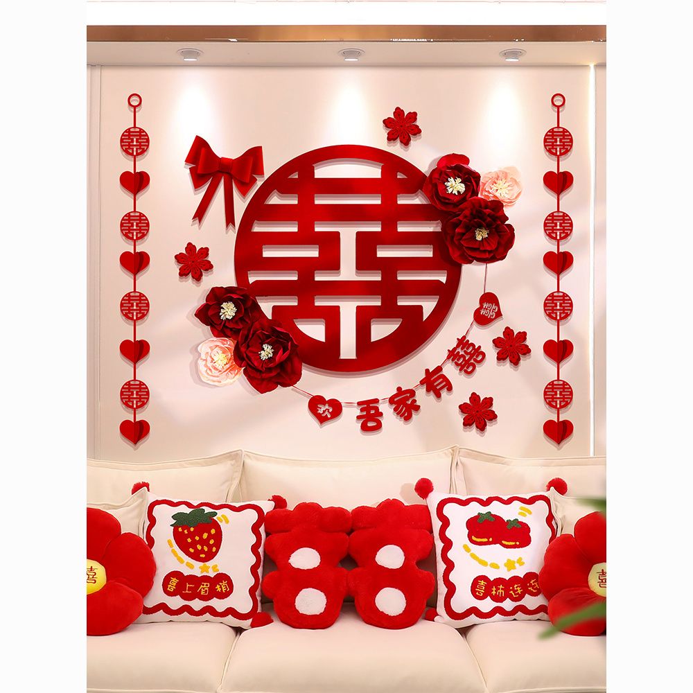 婚房布置女方卧室结婚新房装饰床头喜字贴背景墙套装婚庆用品大全