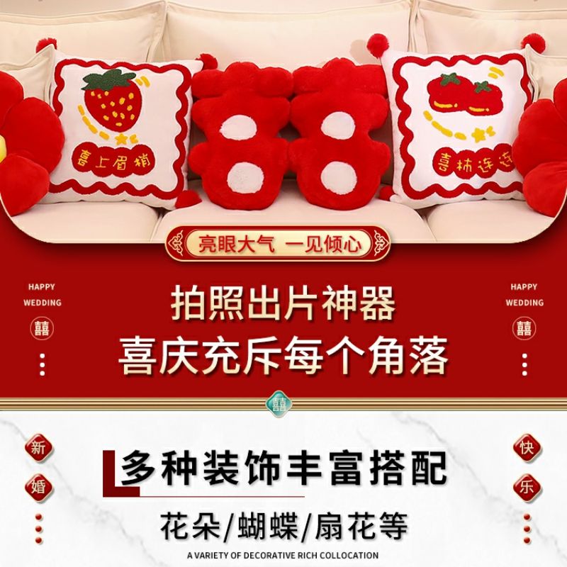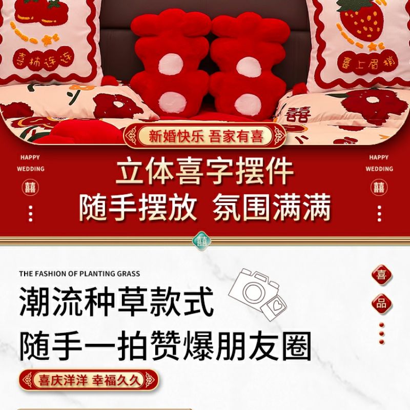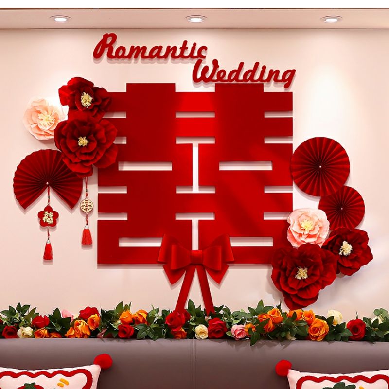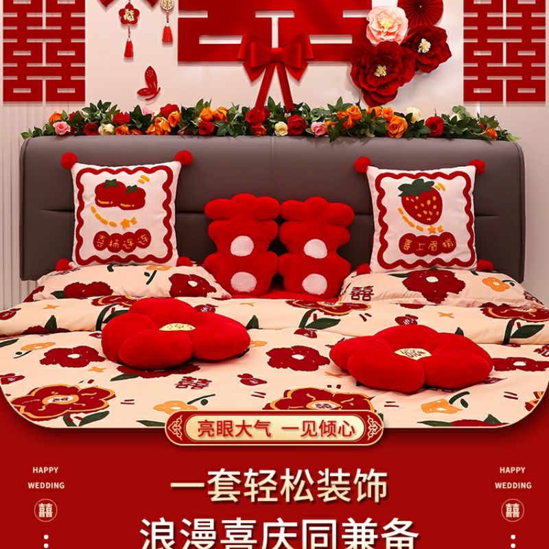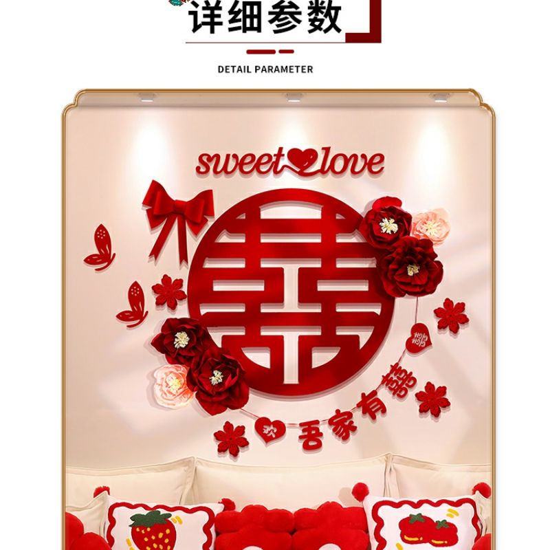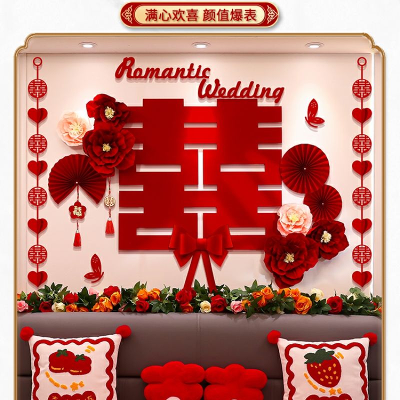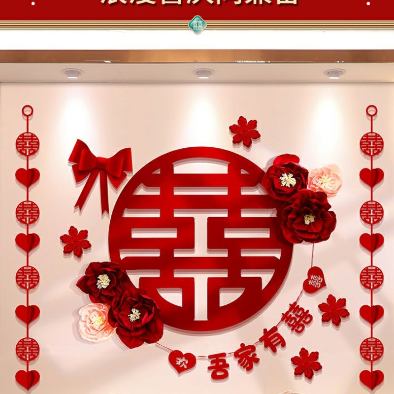 婚房布置女方卧室结婚新房装饰床头喜字贴背景墙套装婚庆用品大全