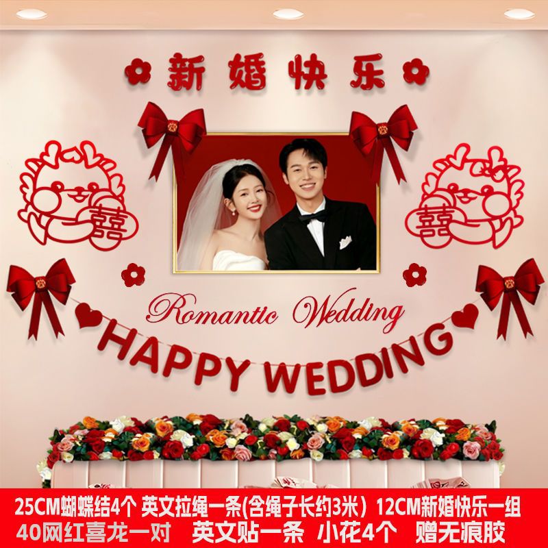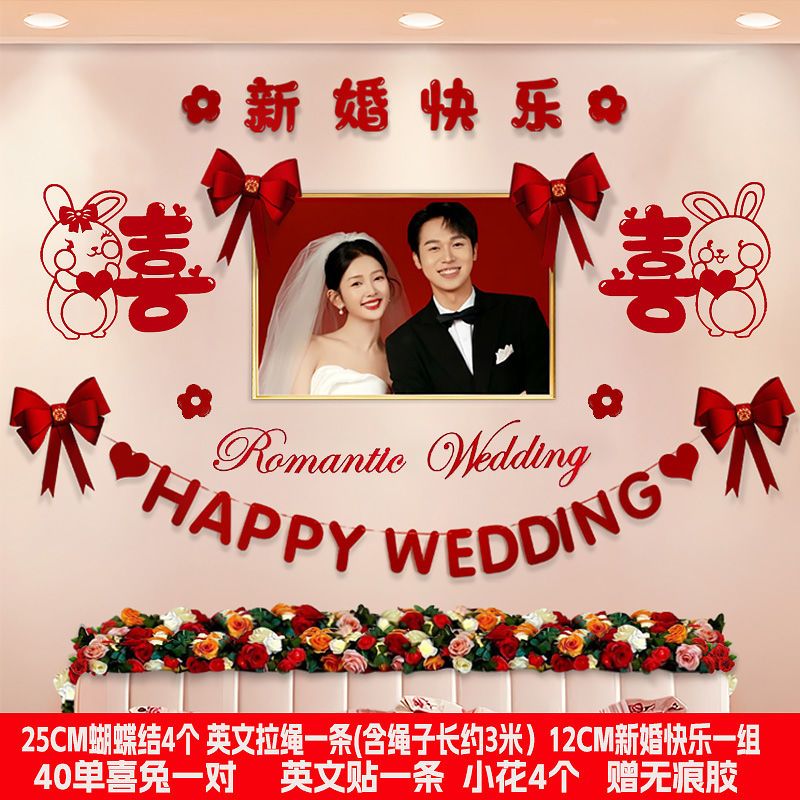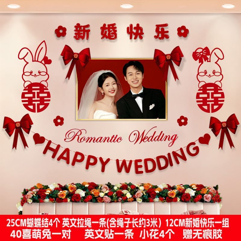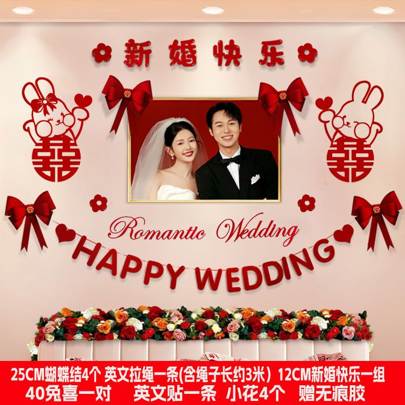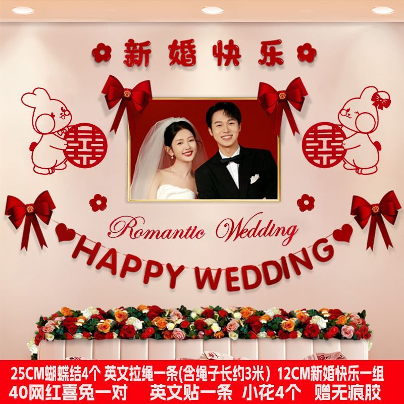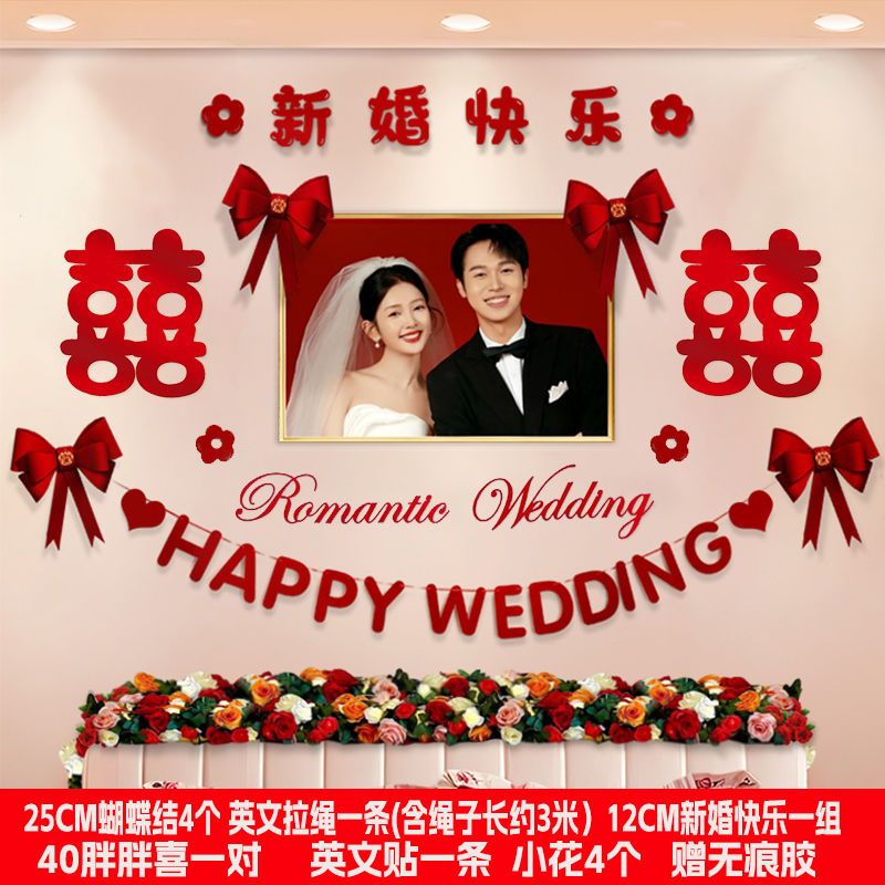 婚房布置套装新房卧室装饰婚礼男方房间主卧床头拉花结婚用品大全
