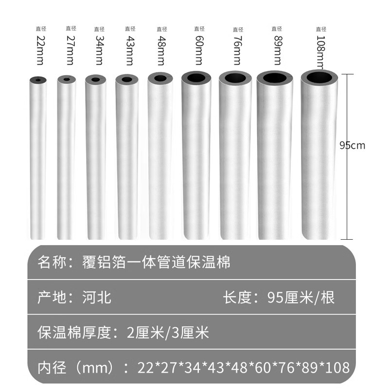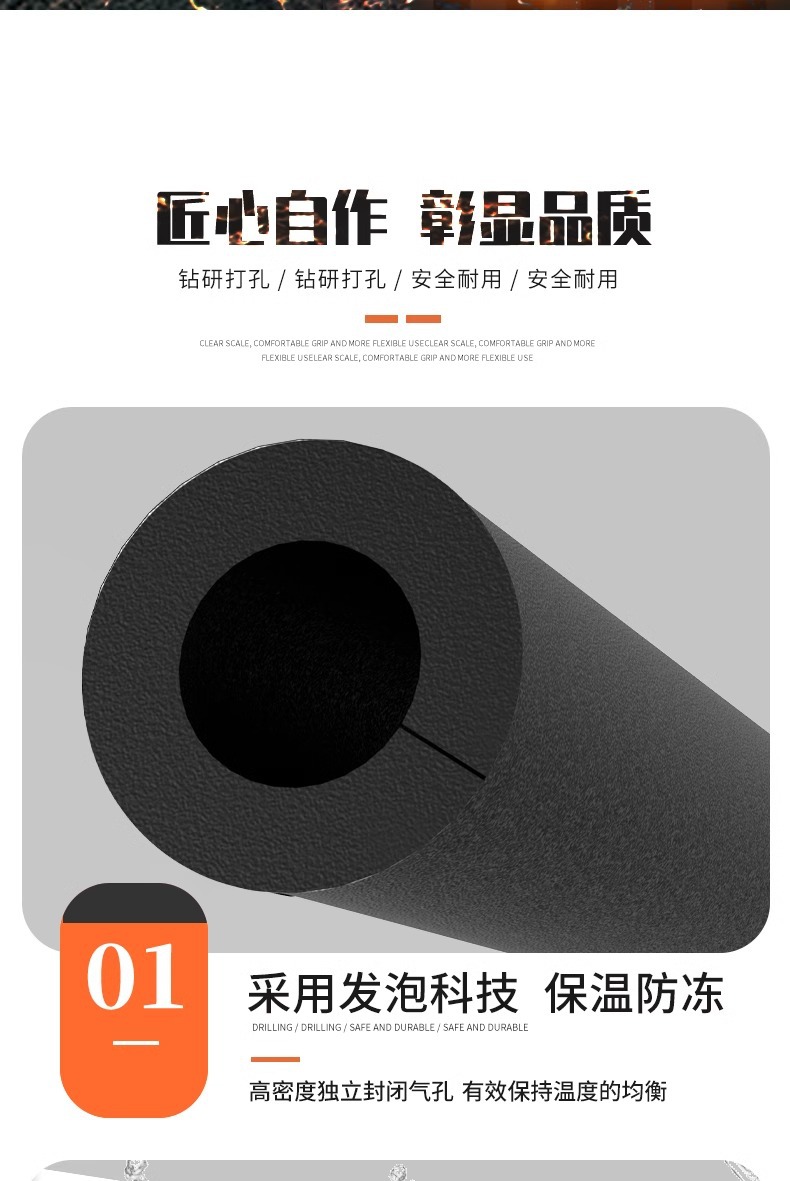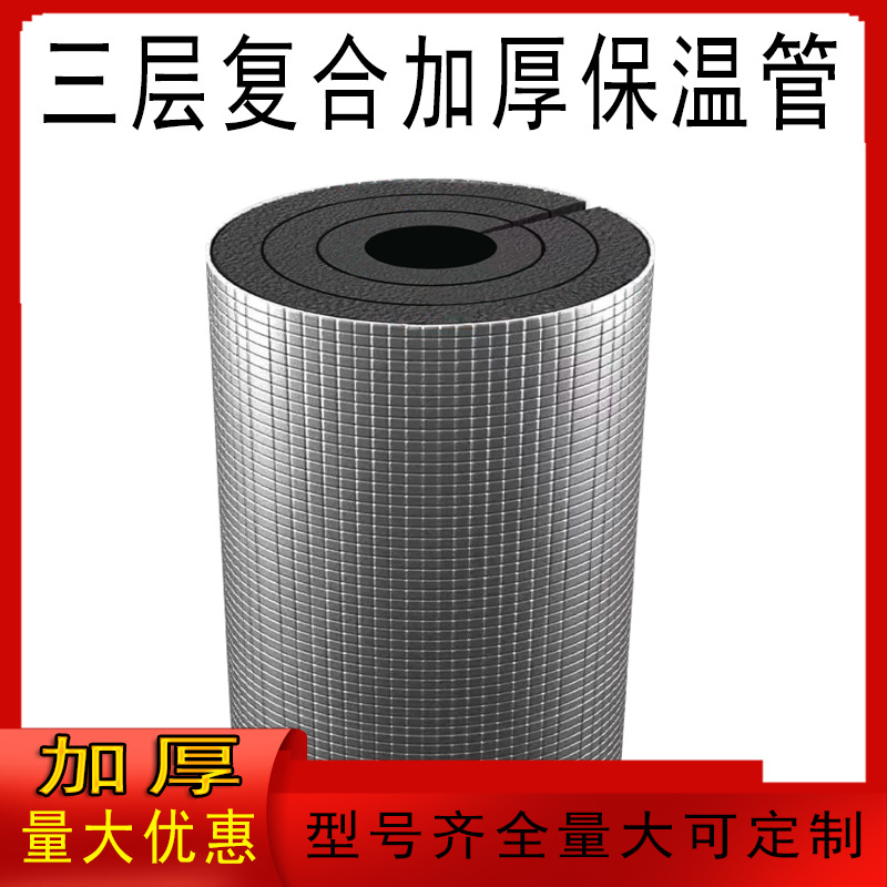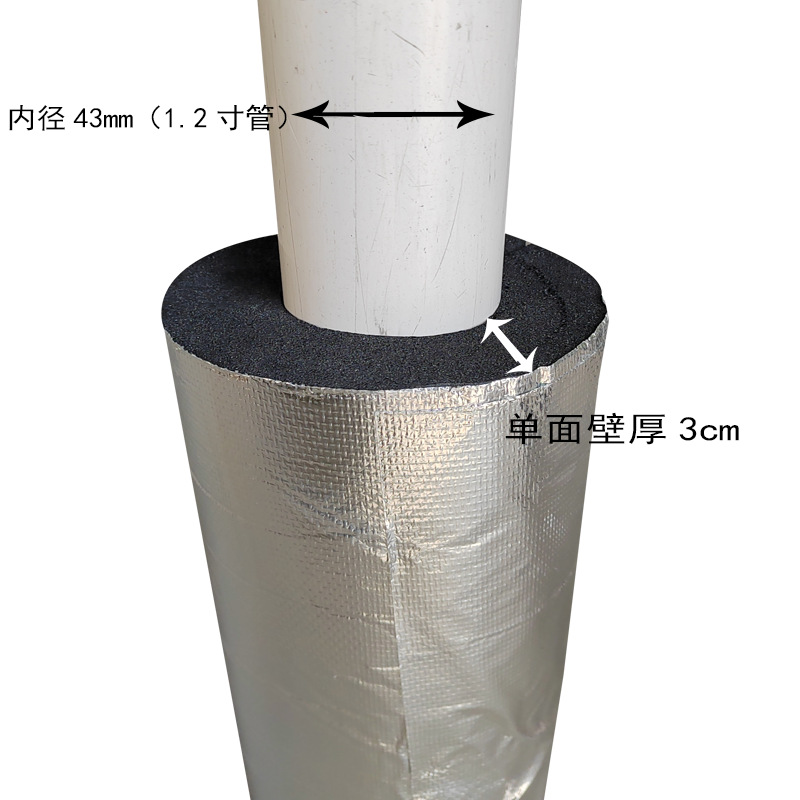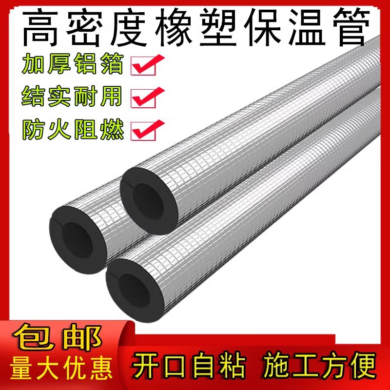 开口式铝箔自粘橡塑保温套管冬季加厚保温棉阻燃室外管道保温材料