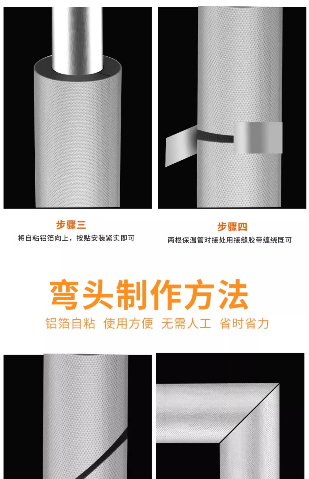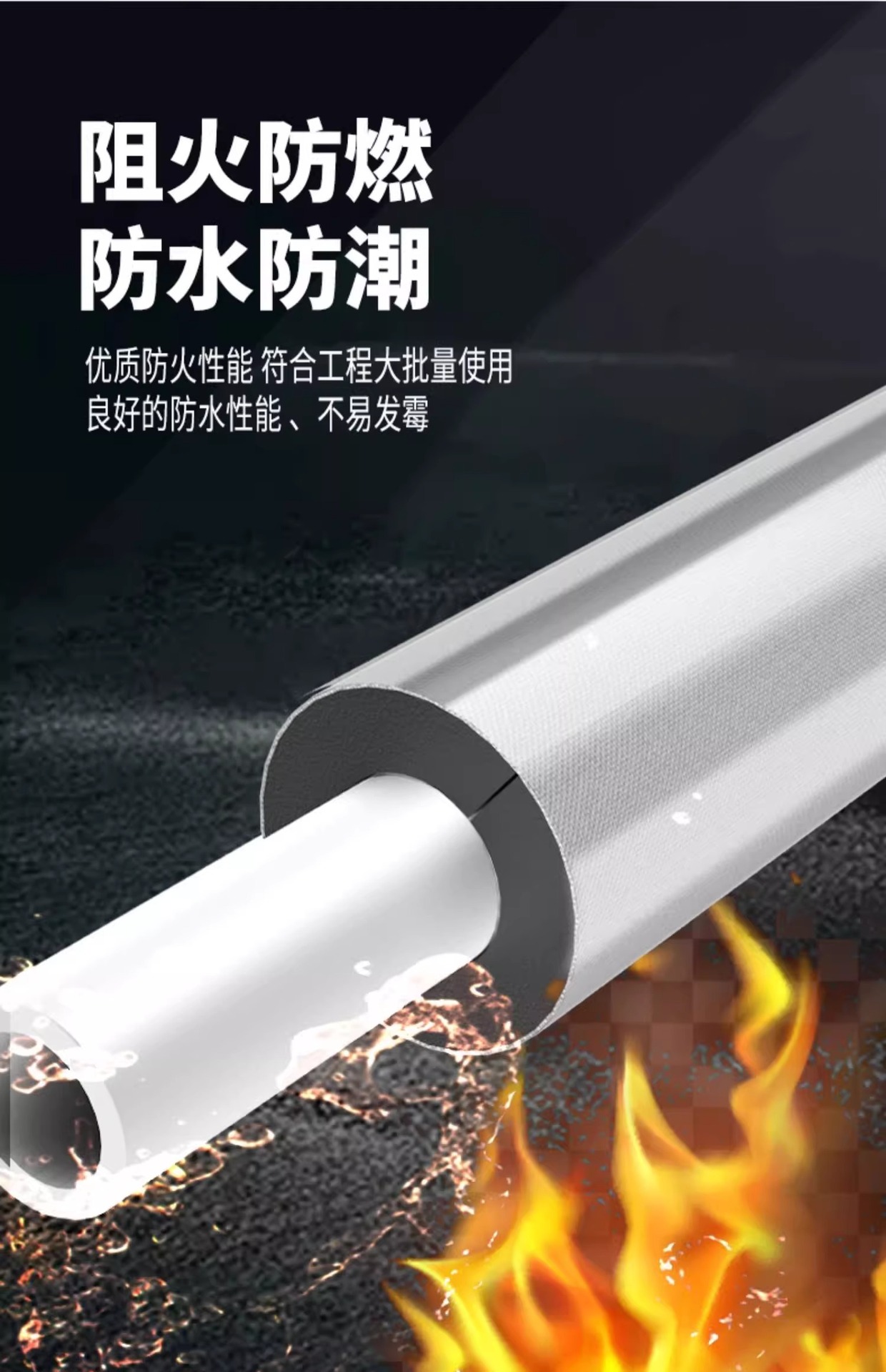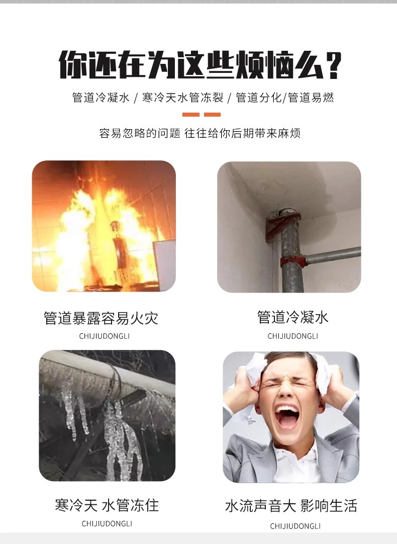开口式铝箔自粘橡塑保温套管冬季加厚保温棉阻燃室外管道保温材料