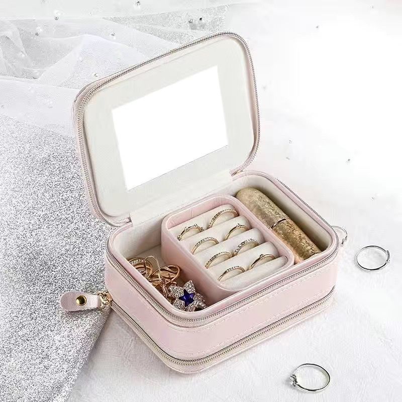 便携式迷你戒指盒精致典雅PU首饰收纳盒