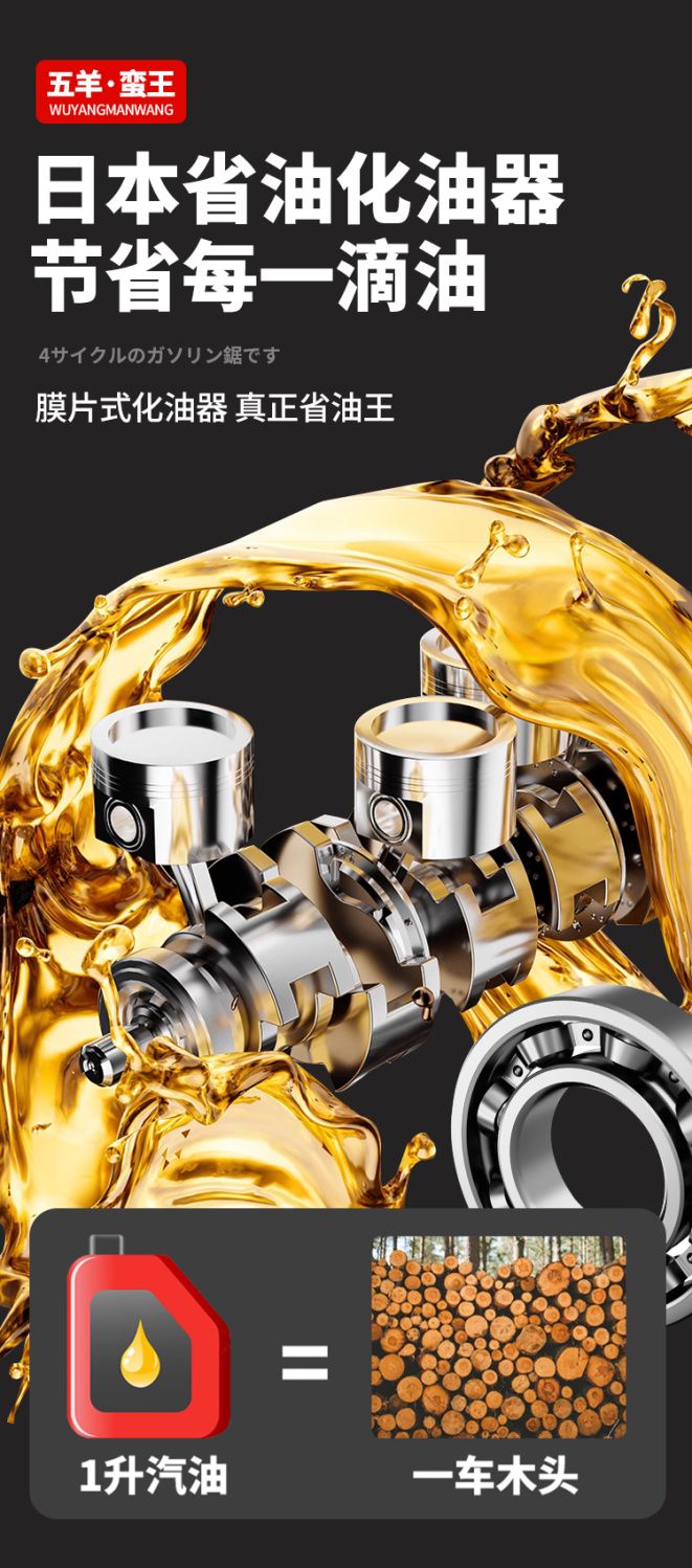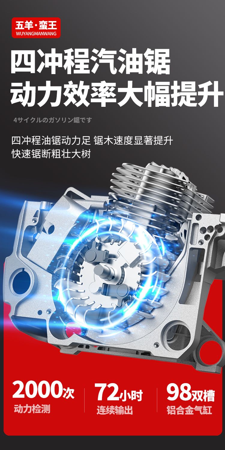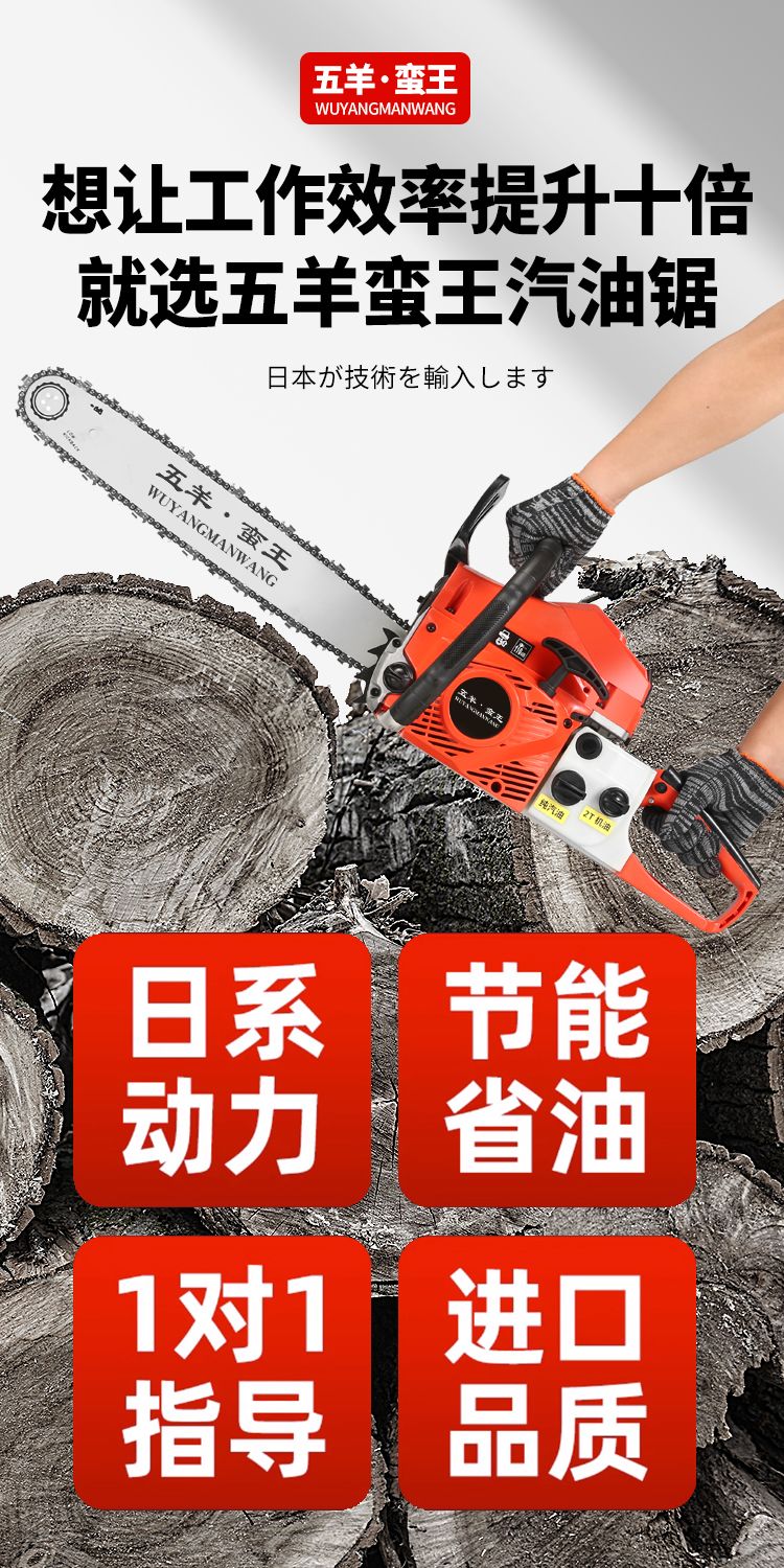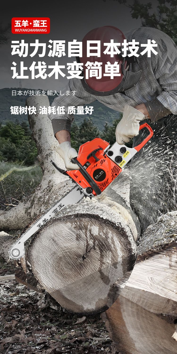 进口五羊油锯大马力四冲程纯汽油油锯伐木锯大功率省油砍树机电锯
