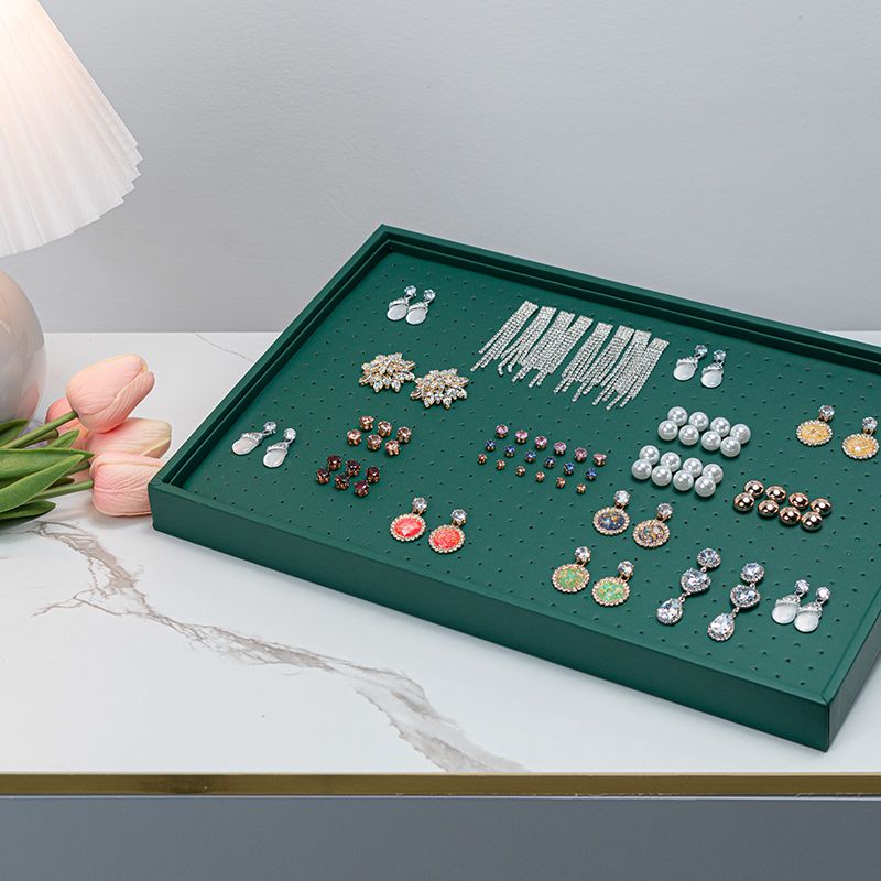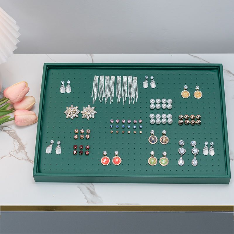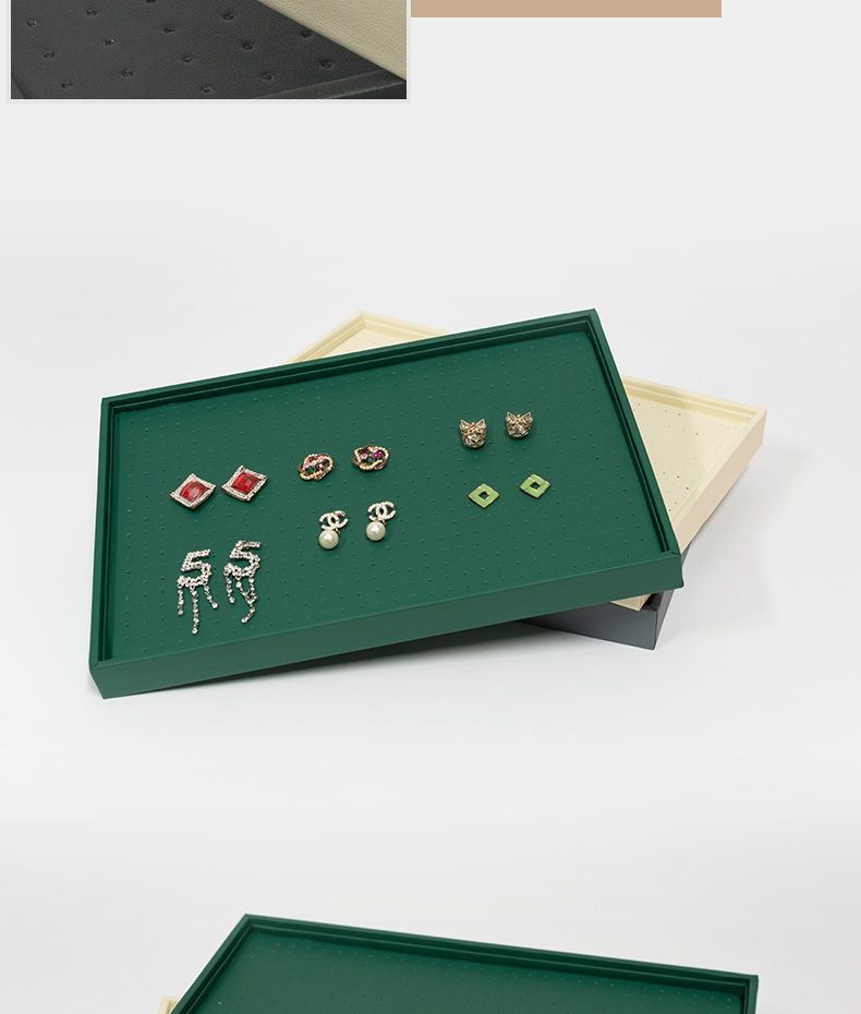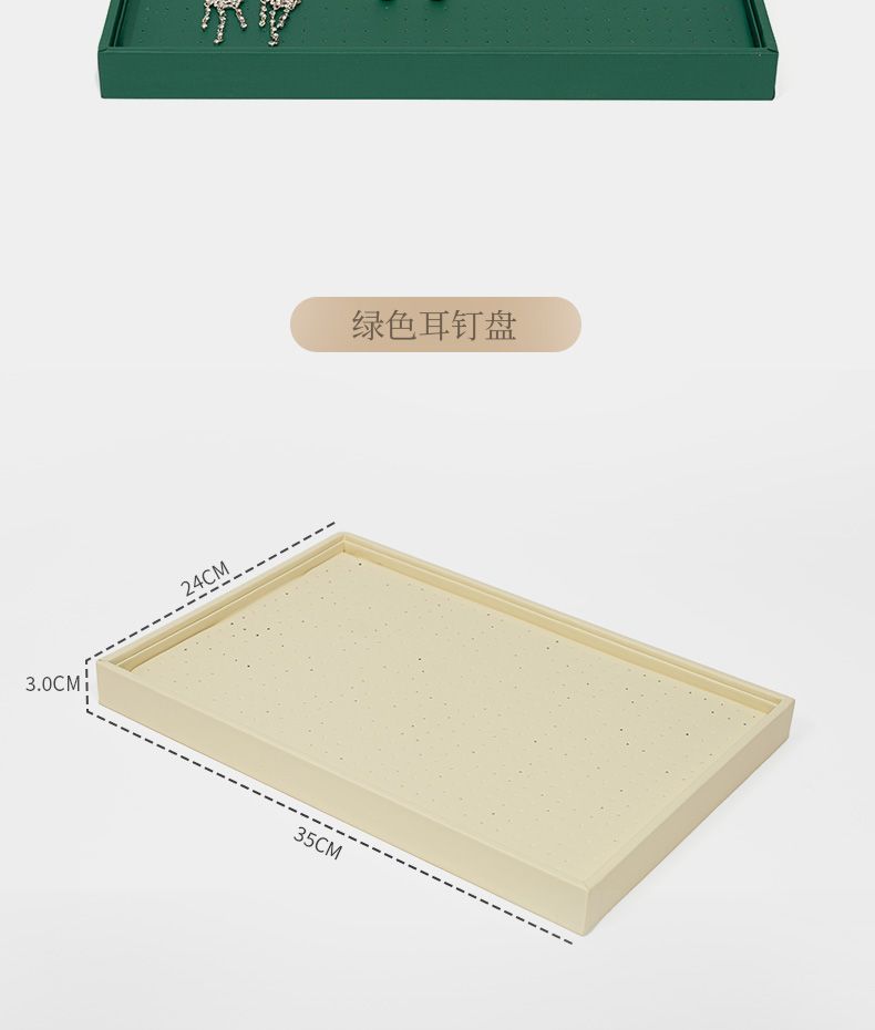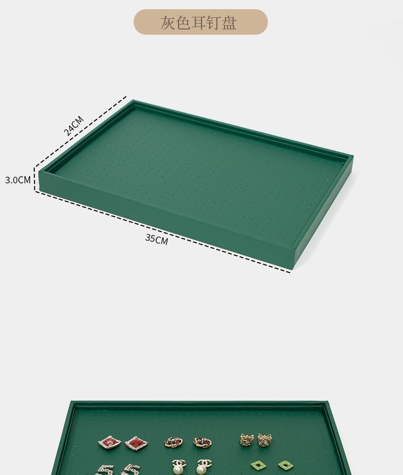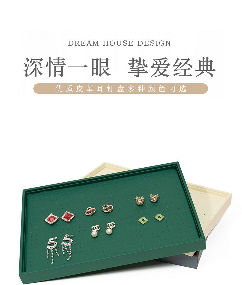 精致皮质耳钉墨绿盘珠宝首饰盒饰品收纳托盘柜台陈列展示摆摊道具