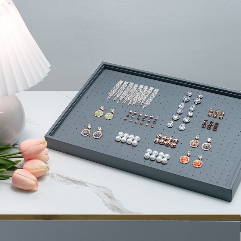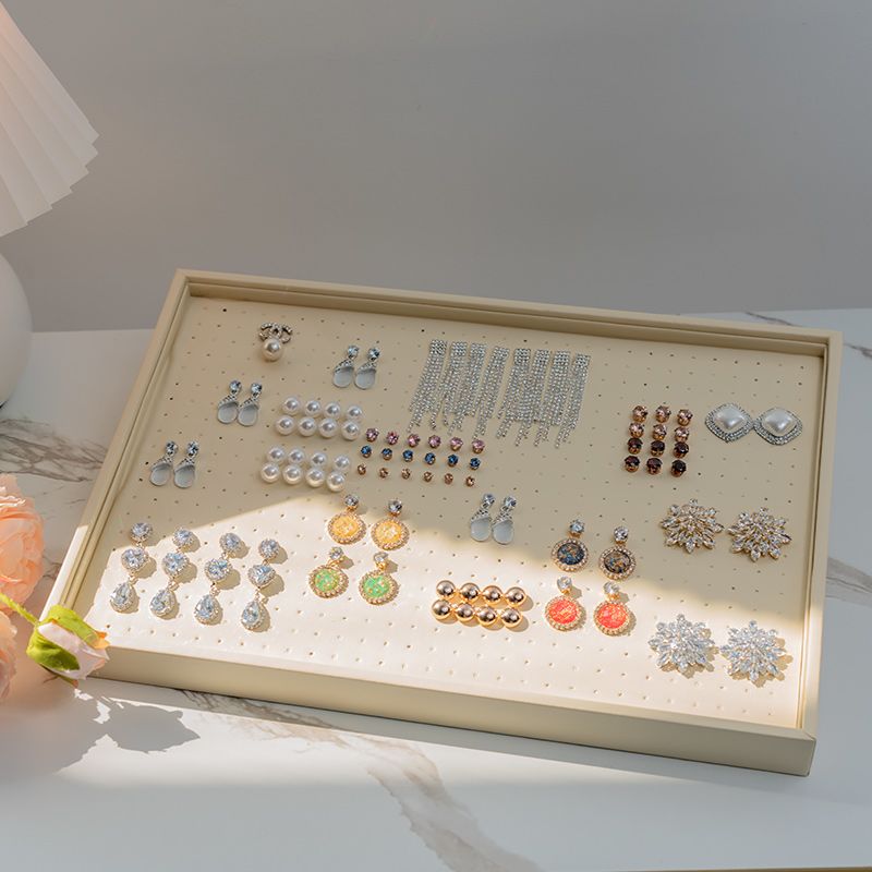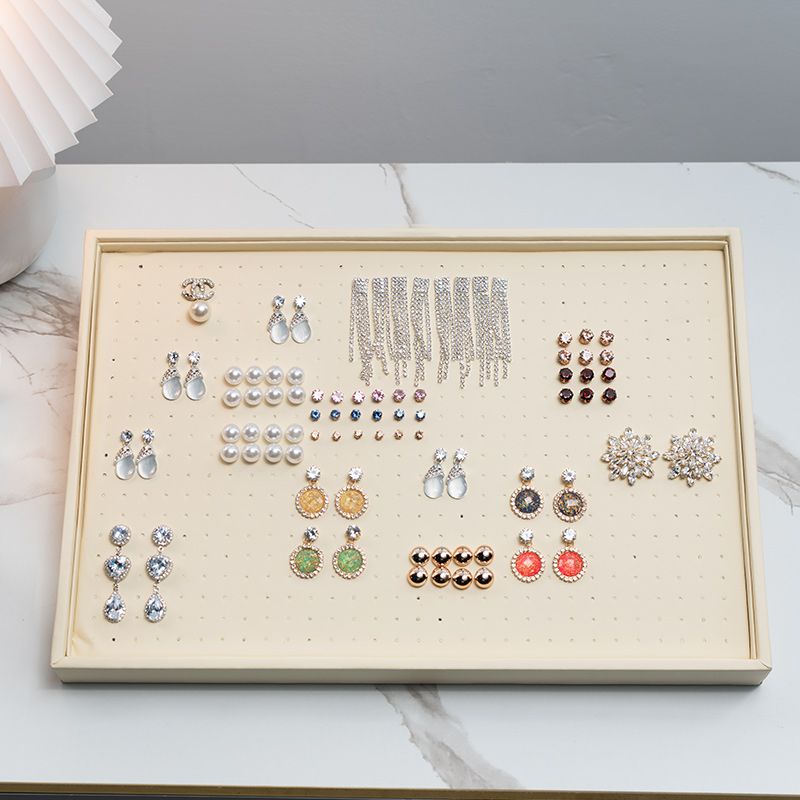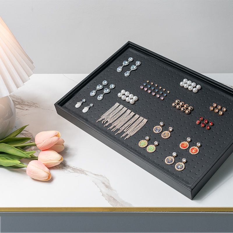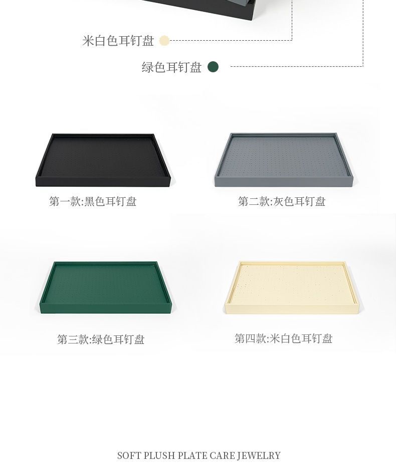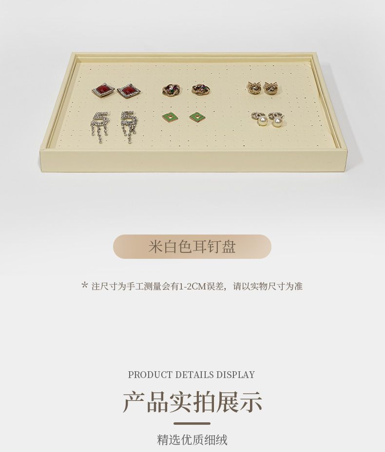 精致皮质耳钉墨绿盘珠宝首饰盒饰品收纳托盘柜台陈列展示摆摊道具
