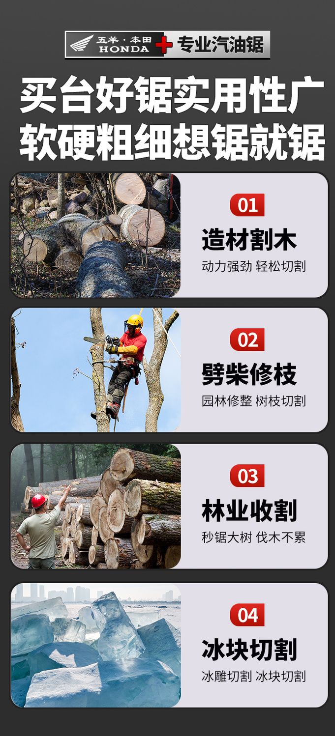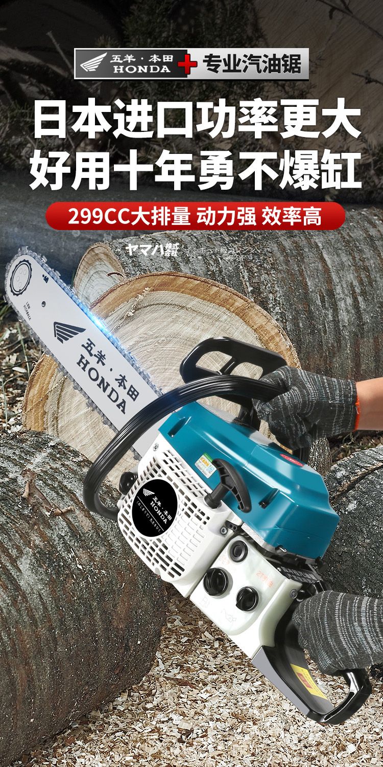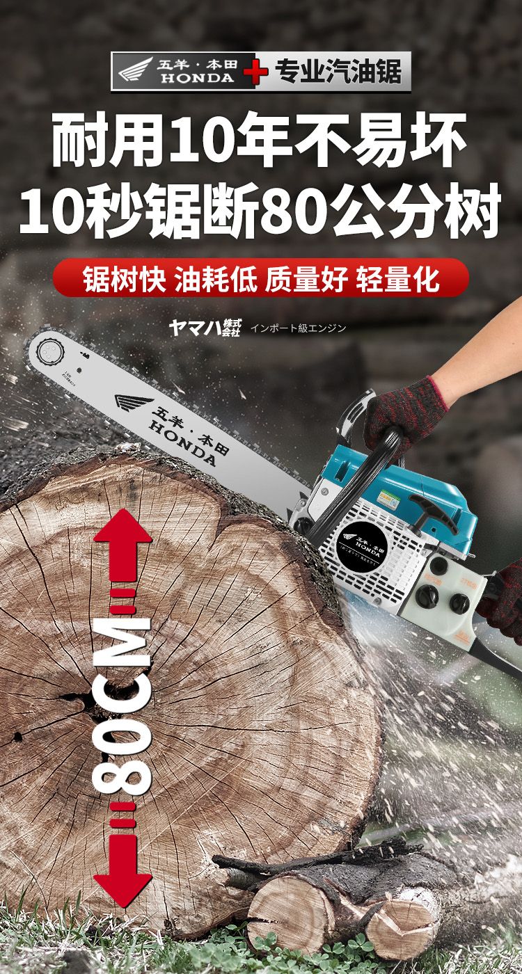 纯进口日本五羊本田大功率油锯伐木锯森林砍伐专业工具汽油锯砍树