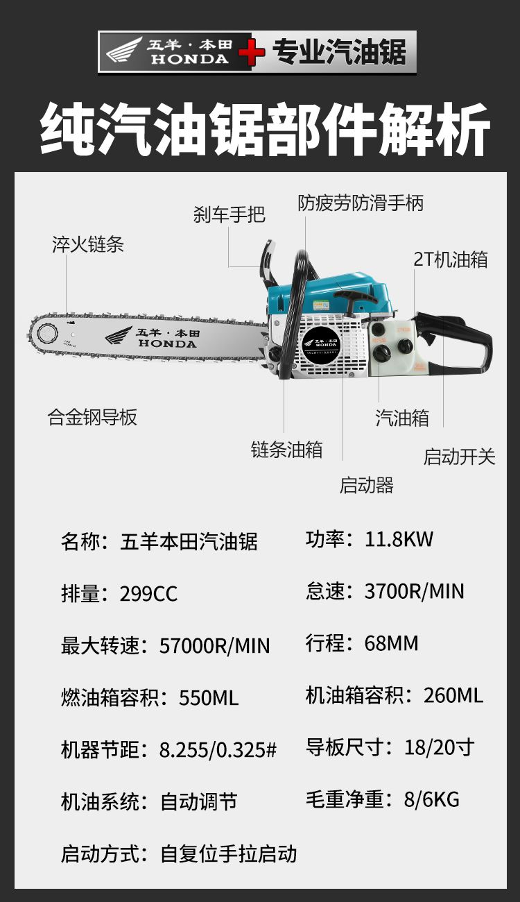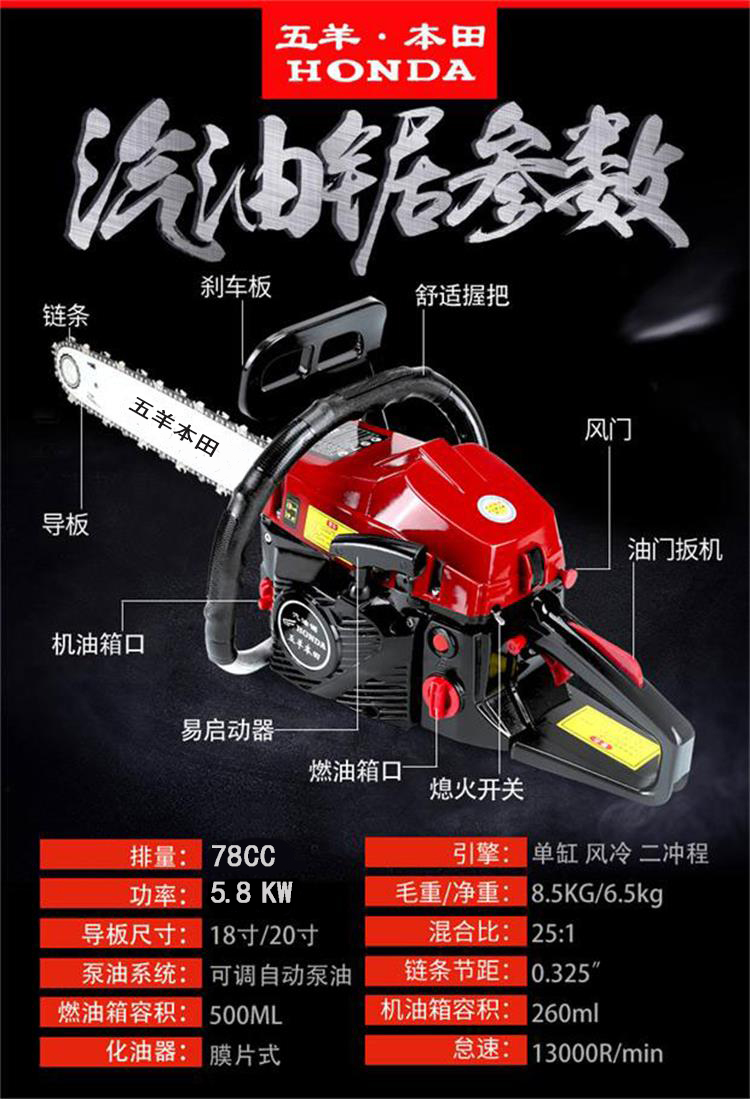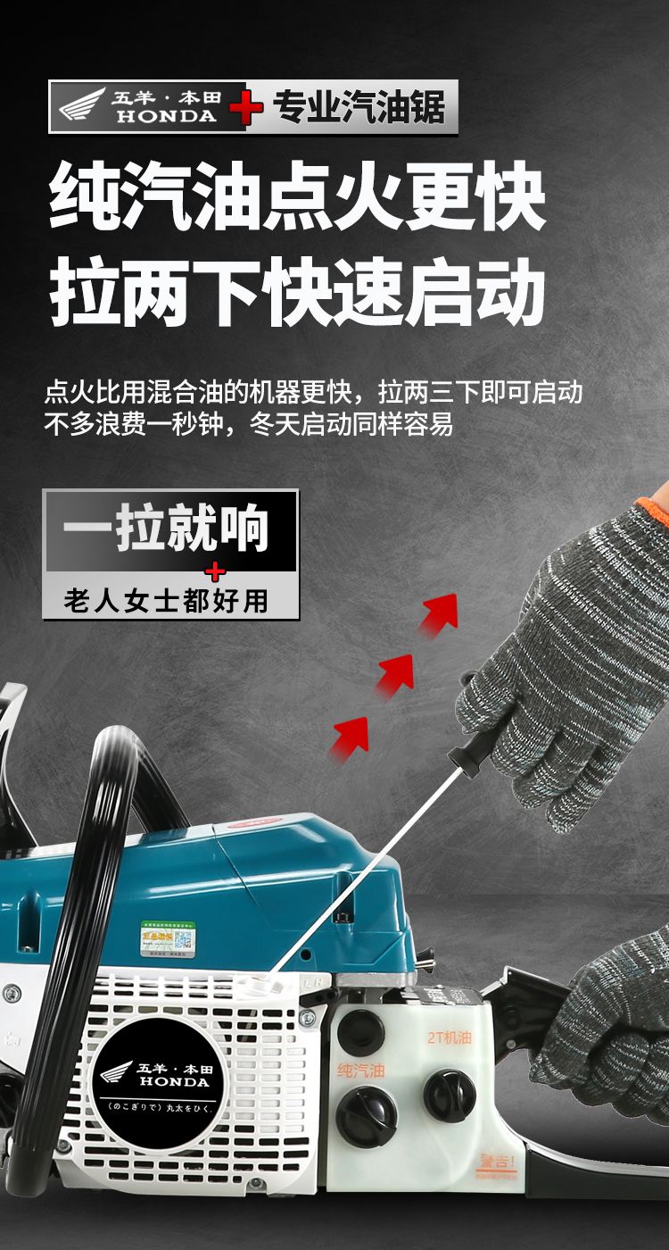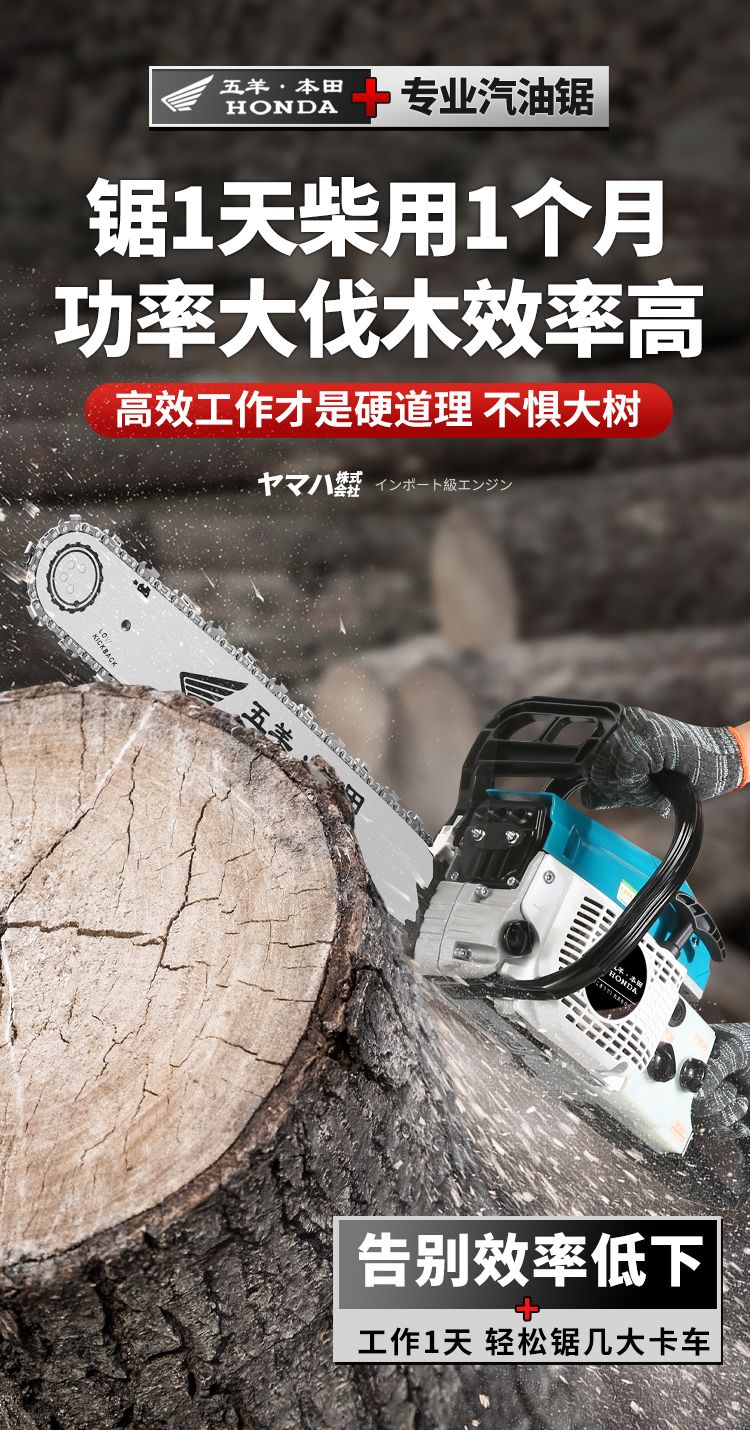 纯进口日本五羊本田大功率油锯伐木锯森林砍伐专业工具汽油锯砍树