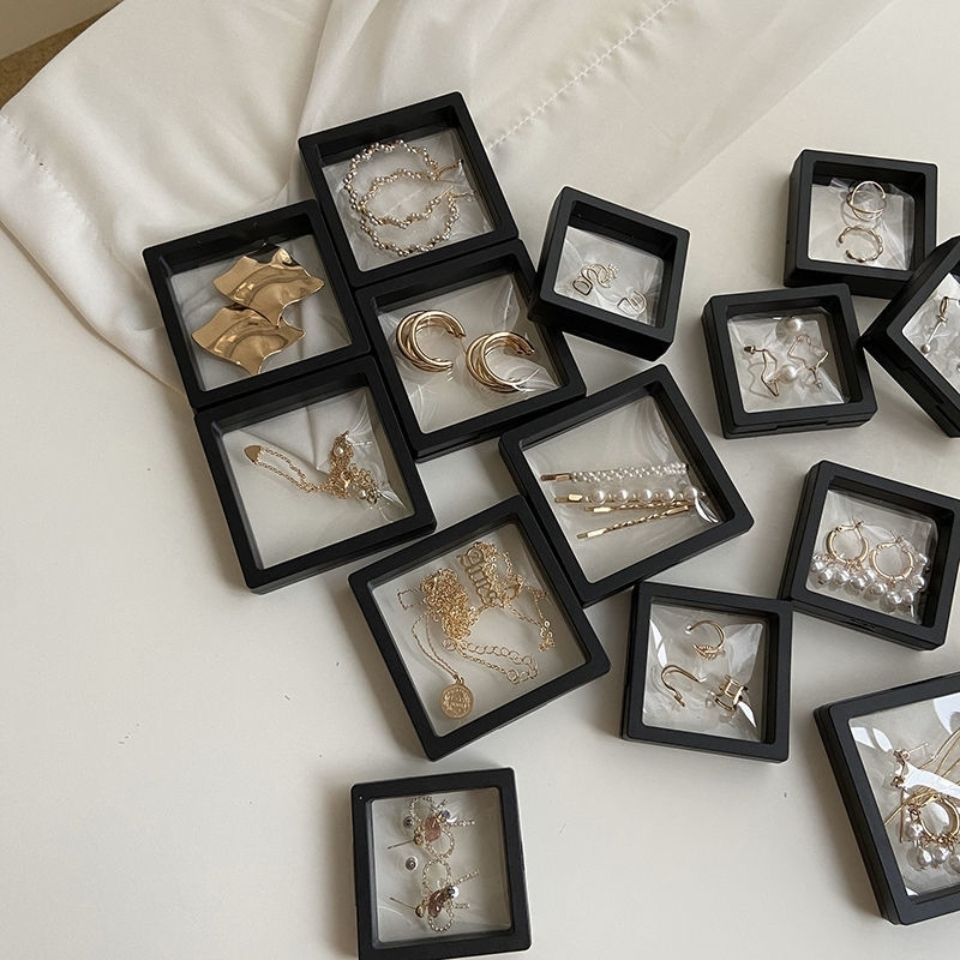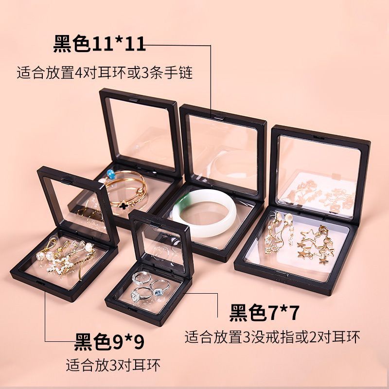文玩PE薄膜悬浮盒耳钉收纳盒小巧随身携带耳环耳饰架子展示首饰盒