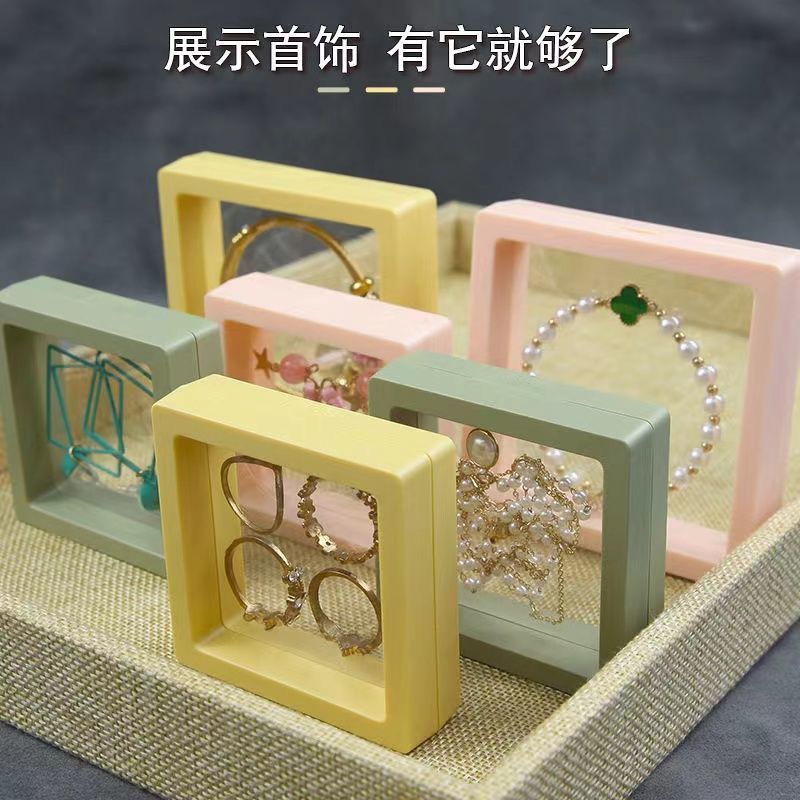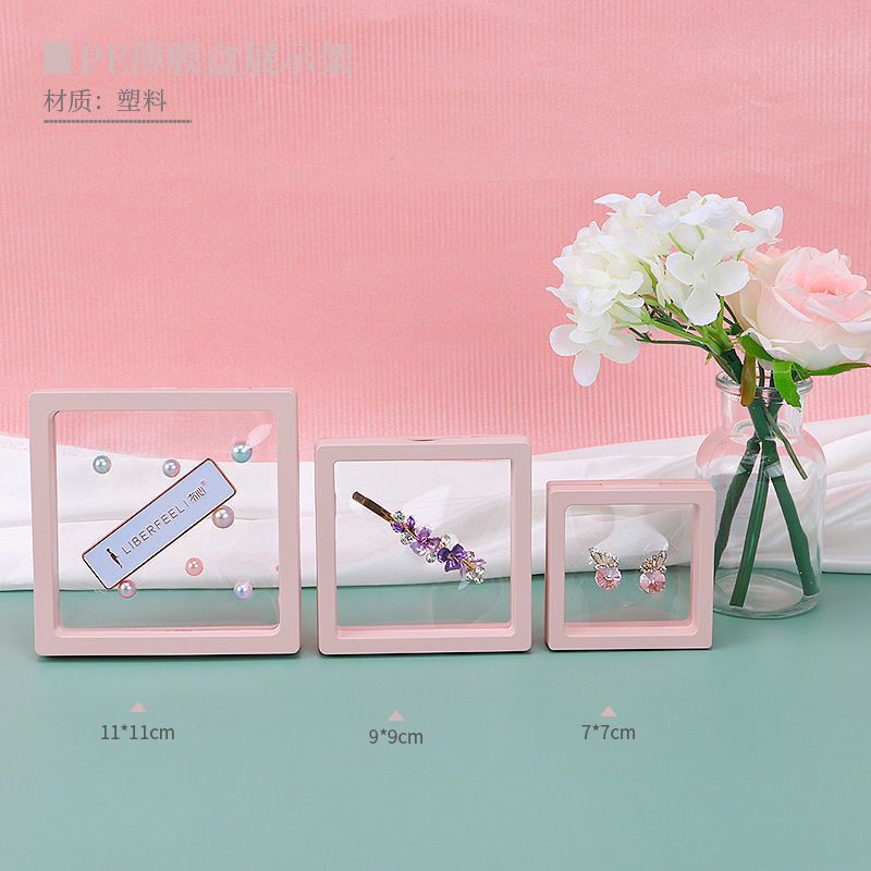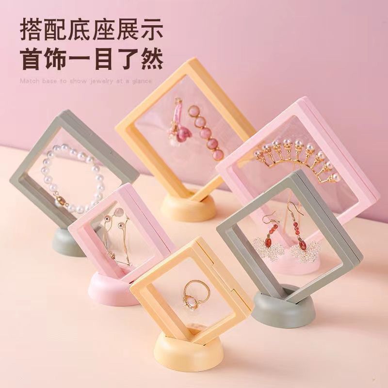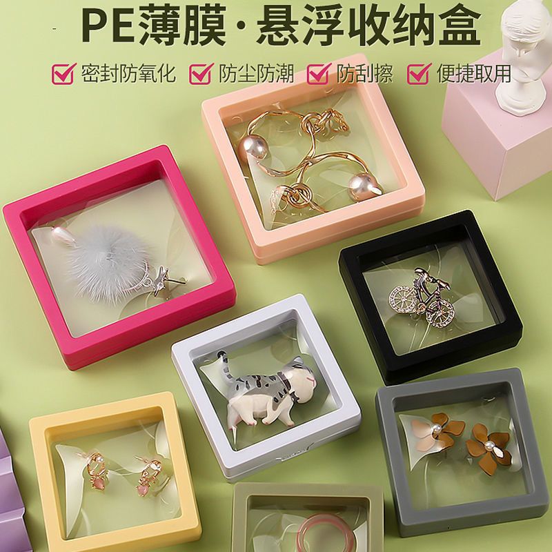 首饰品展示PE薄膜悬浮透明戒指手串吊坠微章文玩穿戴甲吧唧收纳盒