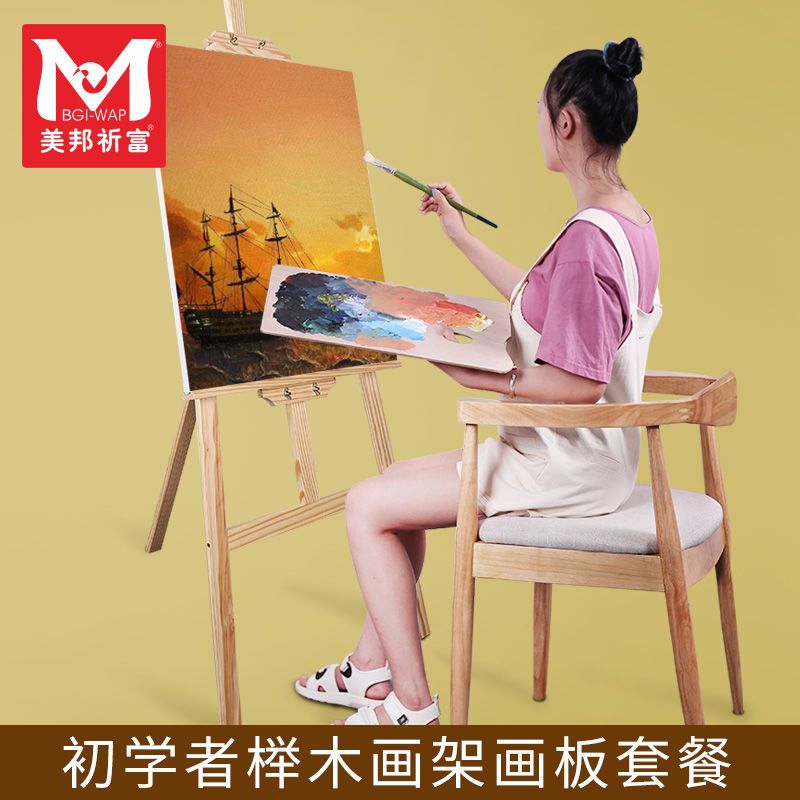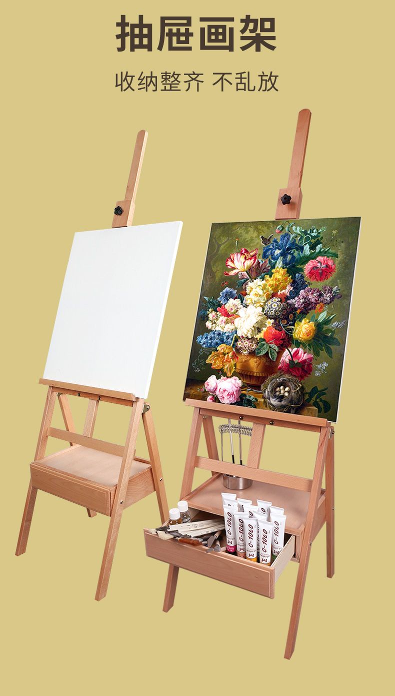 实木画架美术生专用木质素描画板套装可调节便携支架式广告展示架