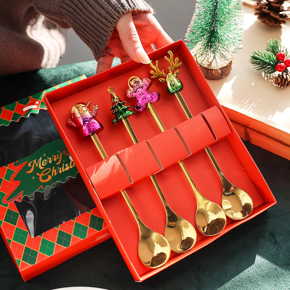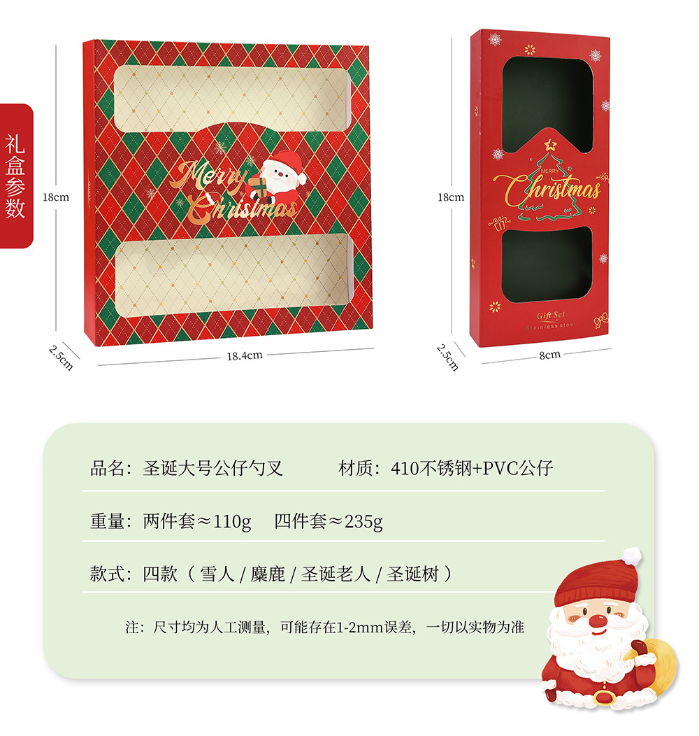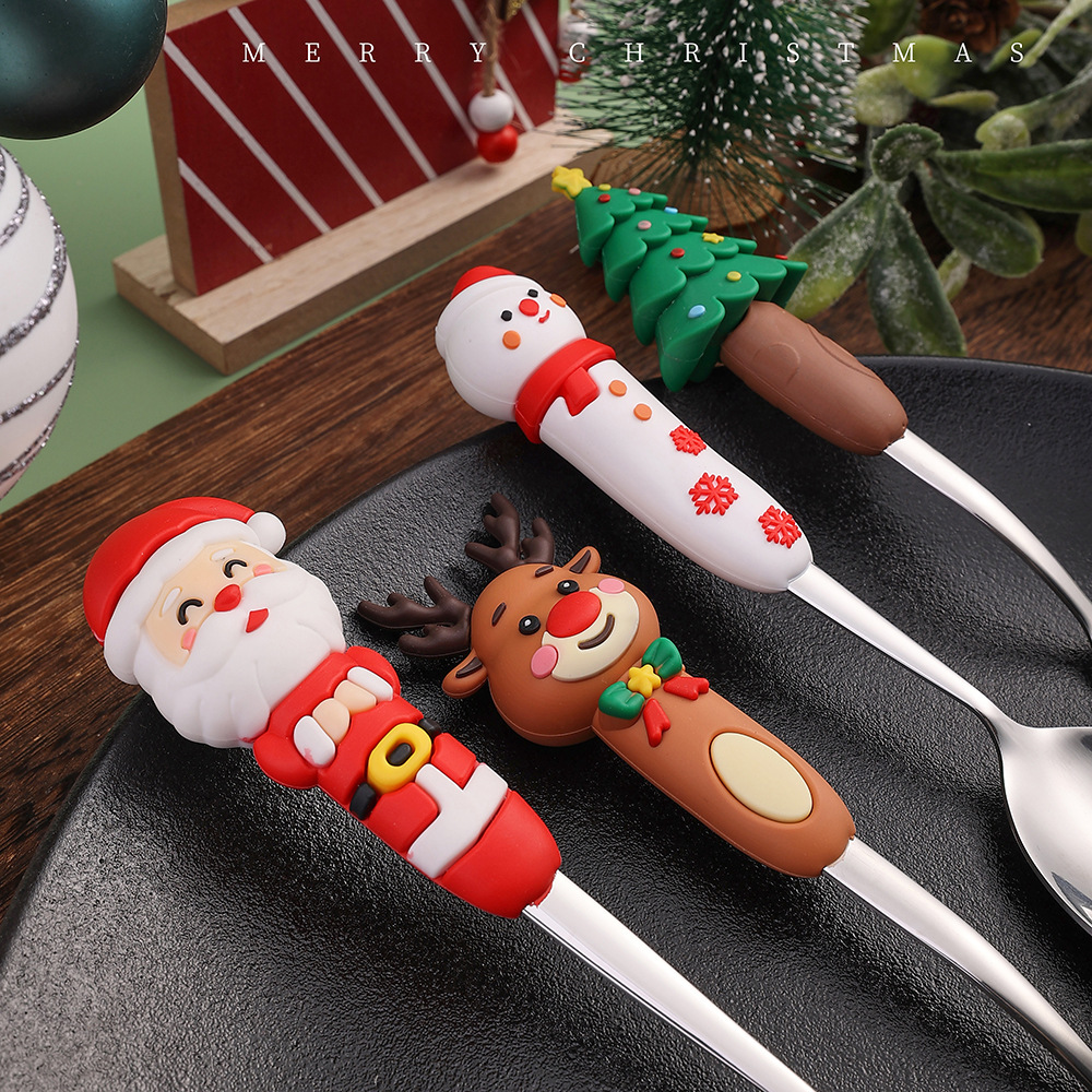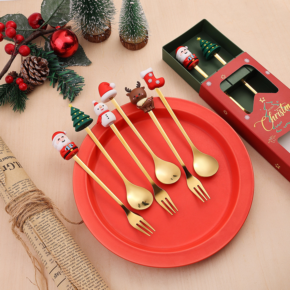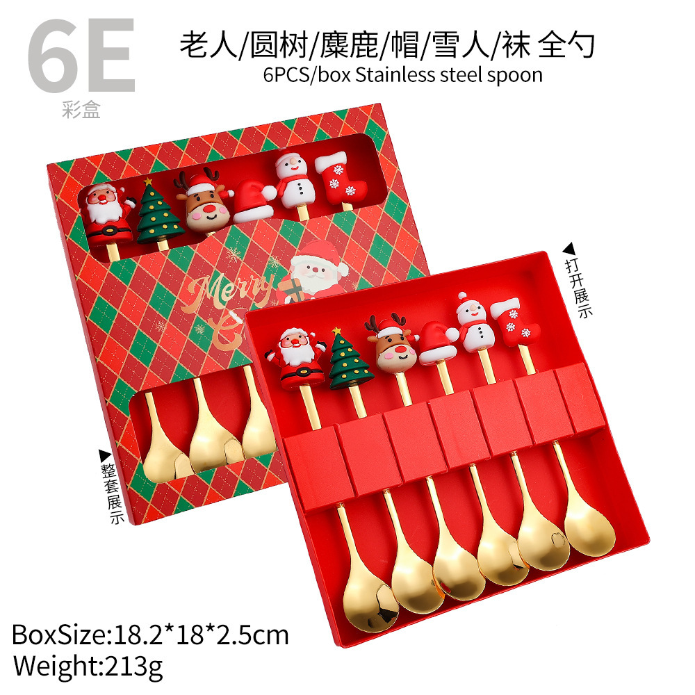 圣诞节勺子餐具套装 卡通圣诞树勺子麋鹿叉子节日礼盒甜品勺礼品