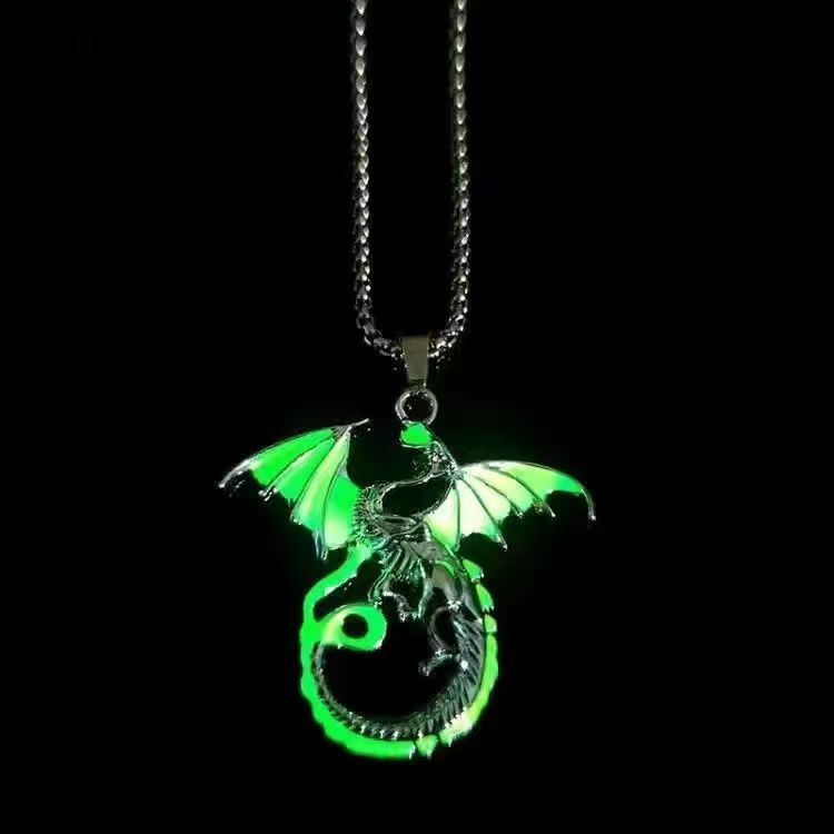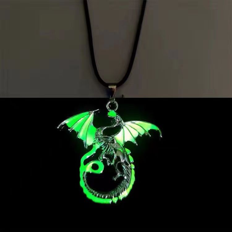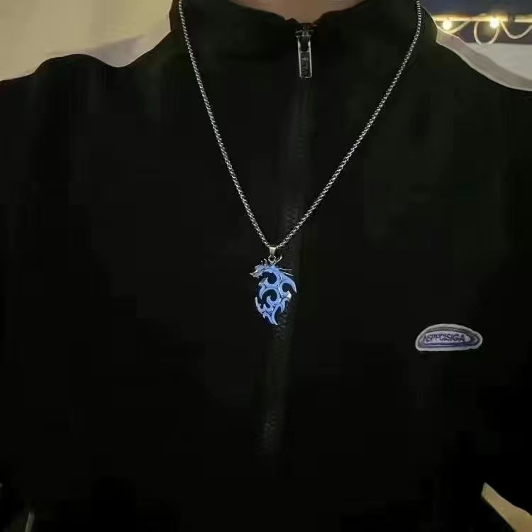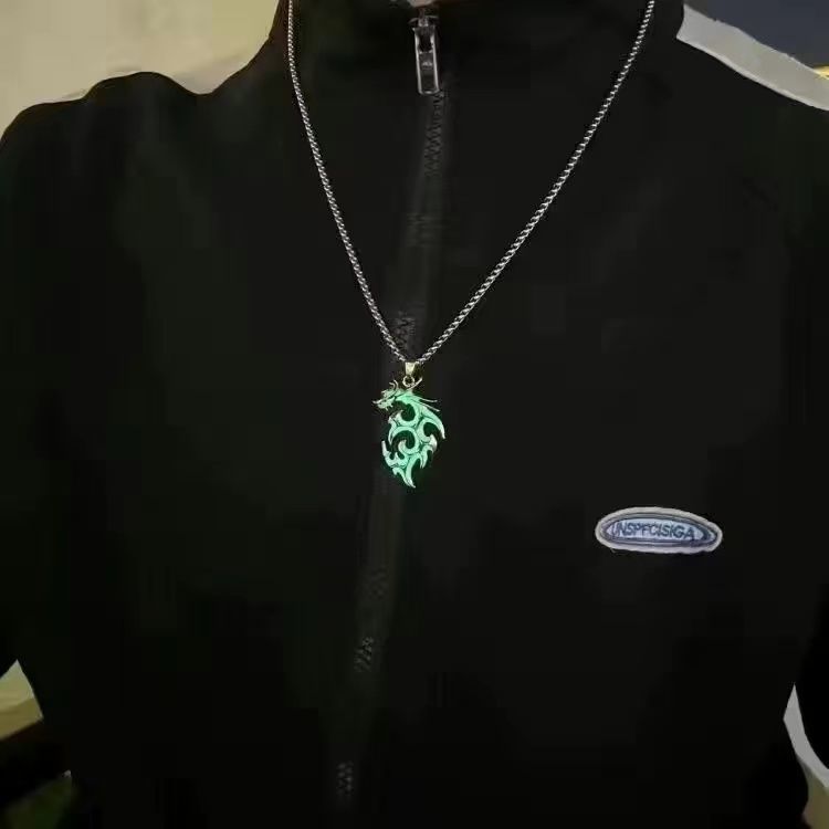 2022新款潮流帅气百搭永久夜光火焰龙项链发光吊坠男个性蹦迪饰品