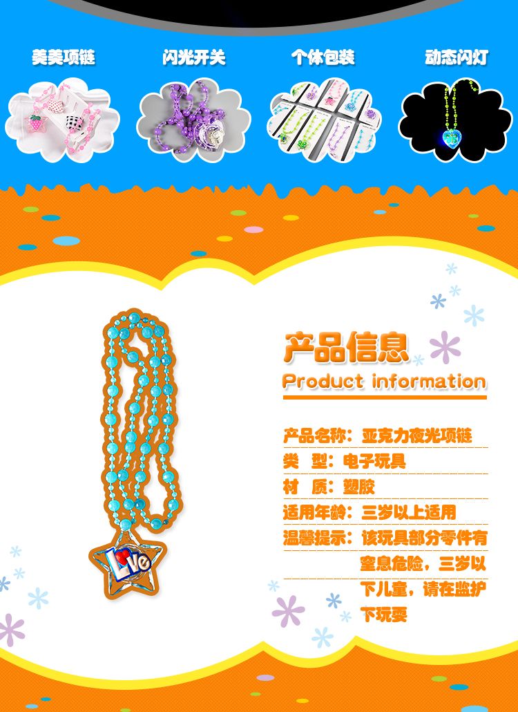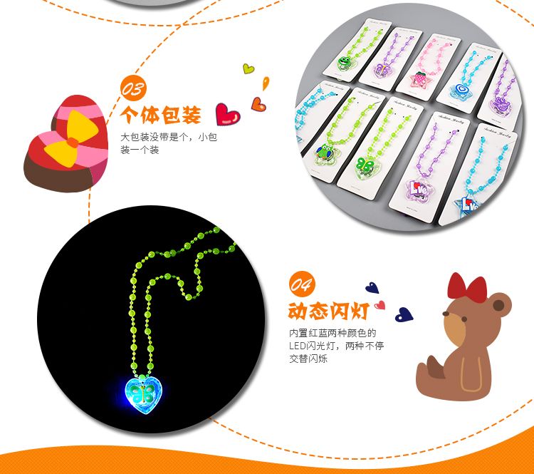 新款亚克力卡通发光项链儿童小玩具可爱闪光吊坠夜市地摊热卖批发