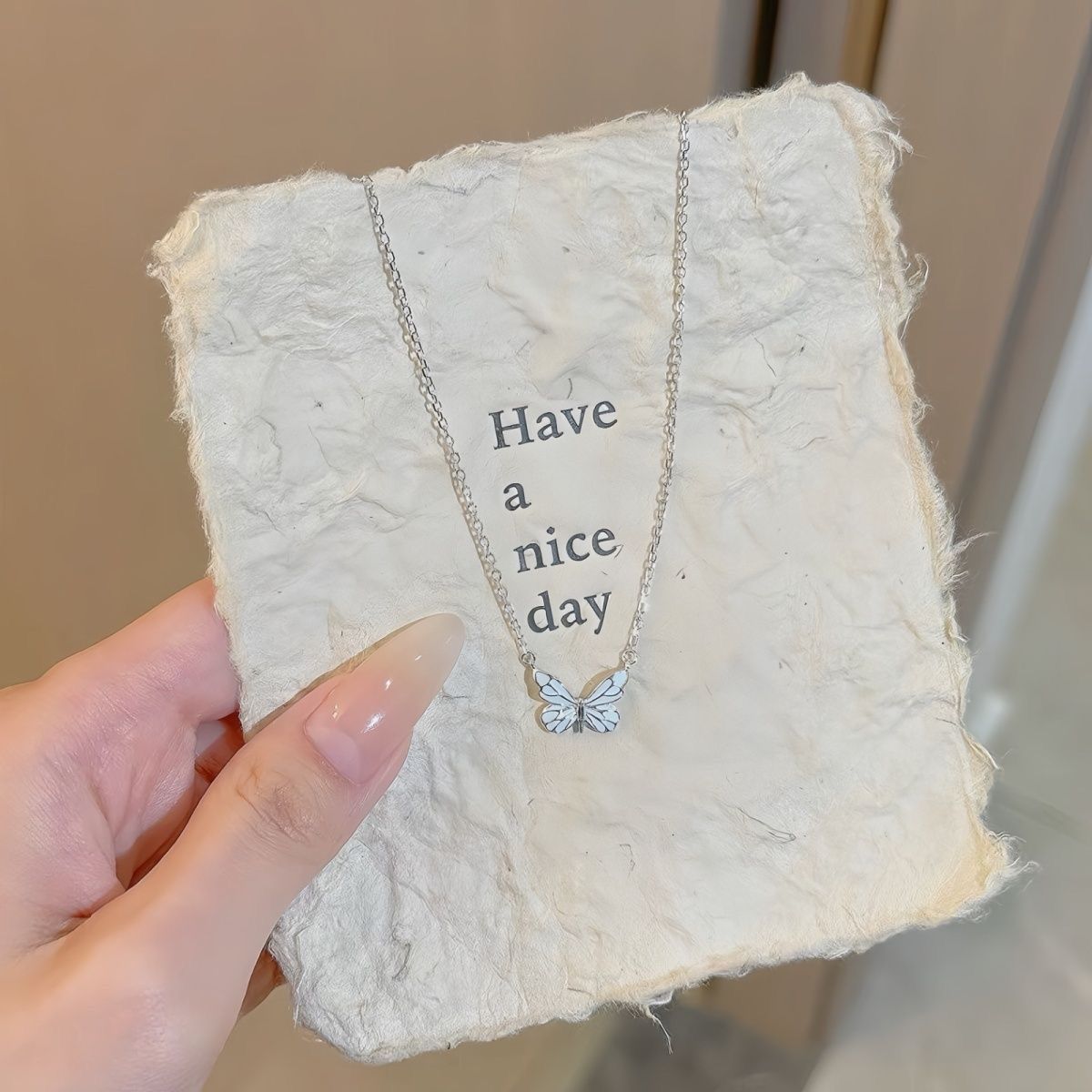 夜光蝴蝶项链~设计ins高级蓝色发光灵动蝴蝶手链女森系极光锁骨链