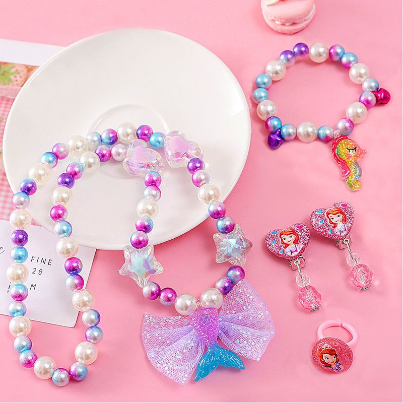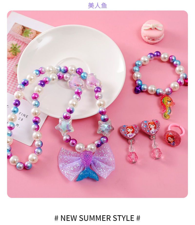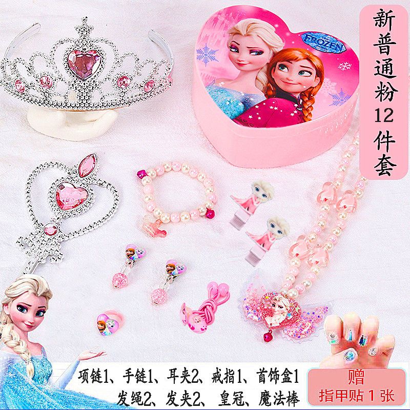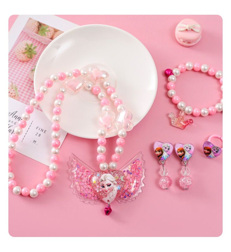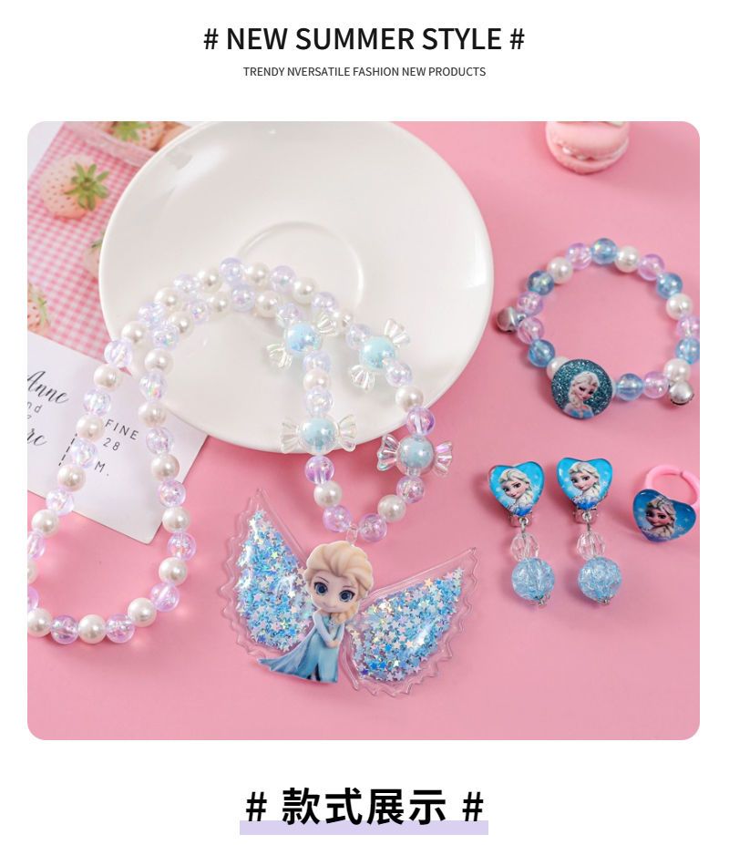 儿童项链冰雪公主艾莎公主项链小女孩手链戒指套装可爱首饰品玩具