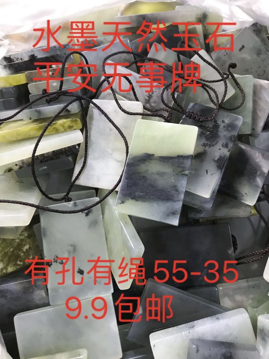 天然岫玉水墨平安无事牌玉石吊坠项链挂件牌子成品男女款玉石永久