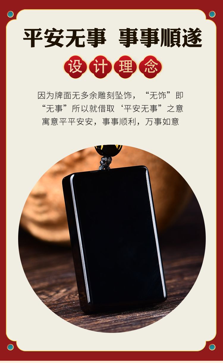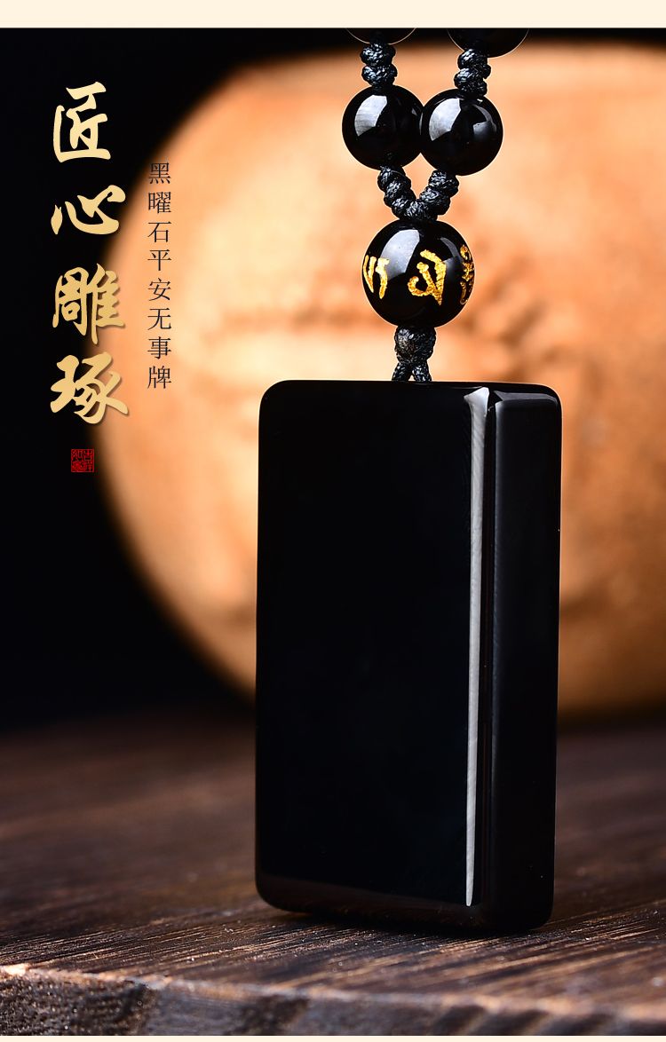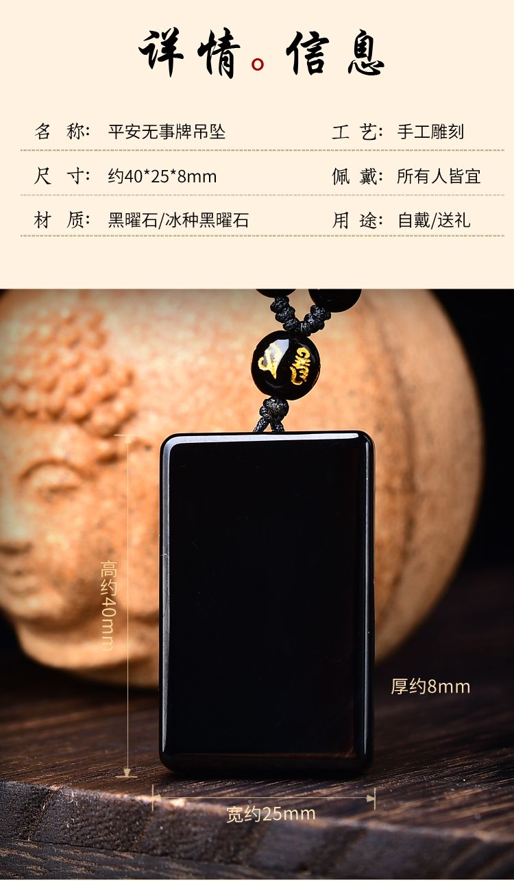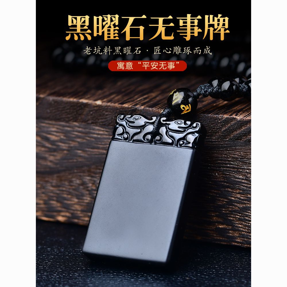 天然正品黑曜石平安无事牌吊坠男女款冰种项链本命年护身挂件礼物