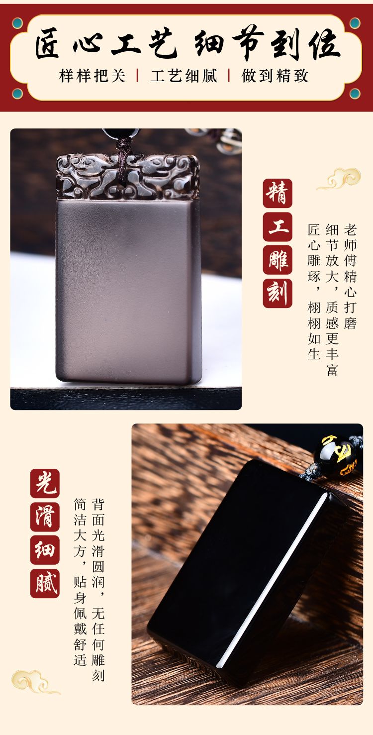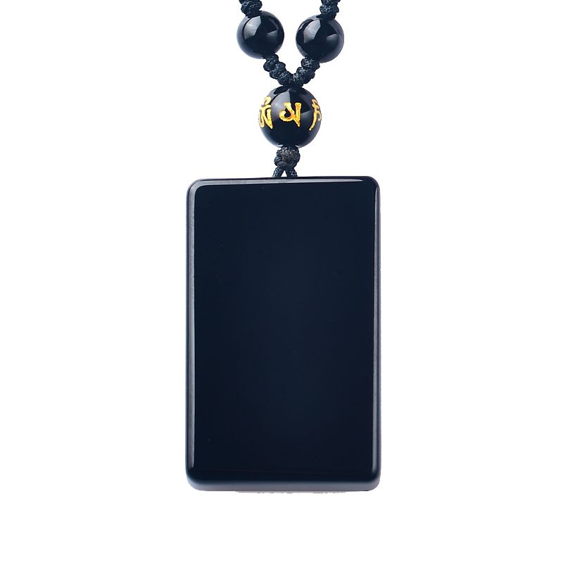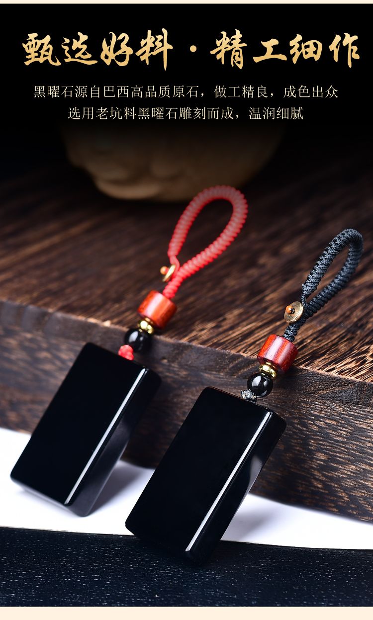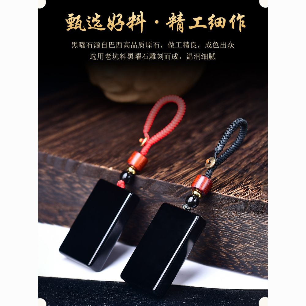 天然正品黑曜石平安无事牌吊坠男女款冰种项链本命年护身挂件礼物