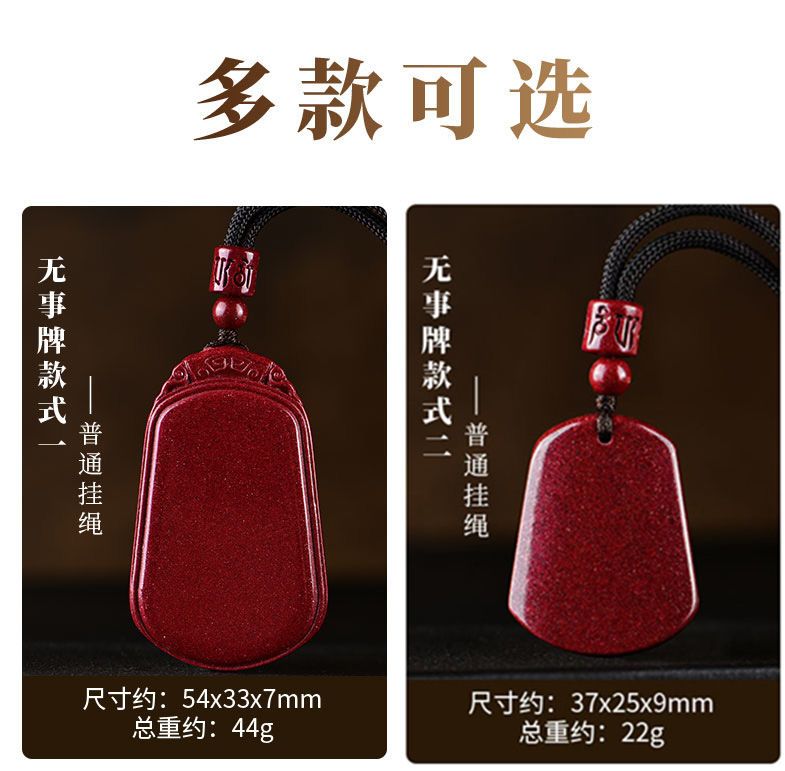 正品真紫金砂朱砂平安无事牌吊坠项链 男女本命年龙年福牌挂件坠