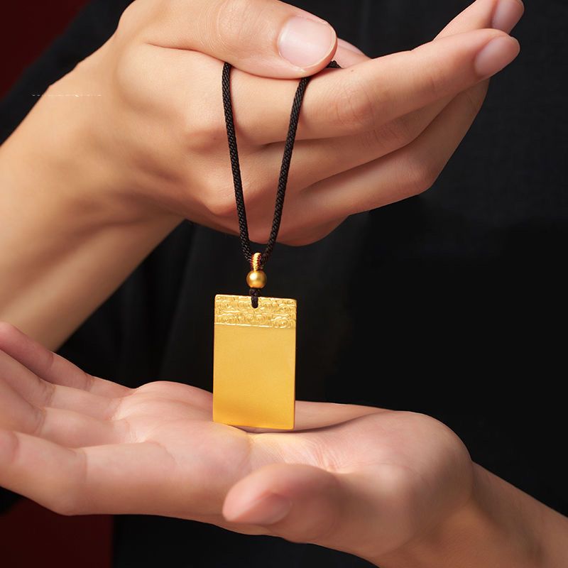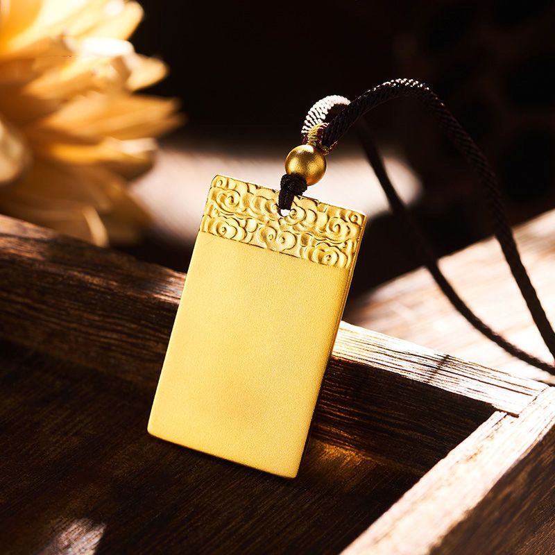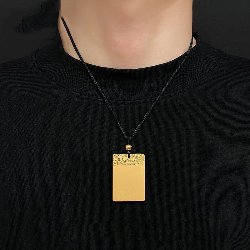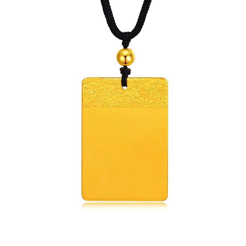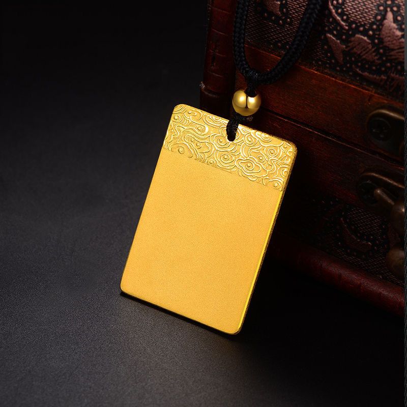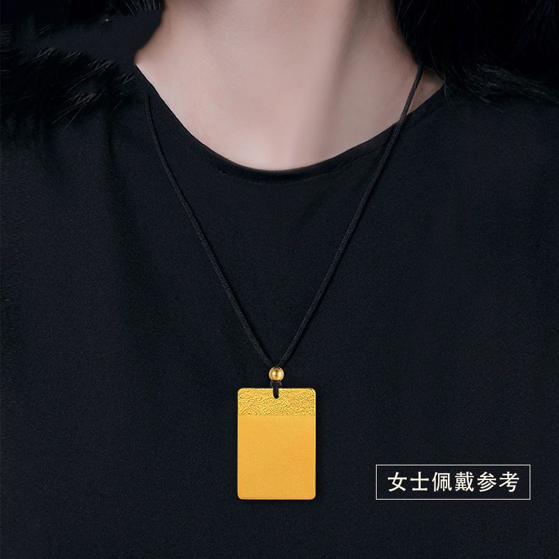 正品黄金色无事牌吊坠女沙金项链实心方牌久不掉色生日礼物送男友