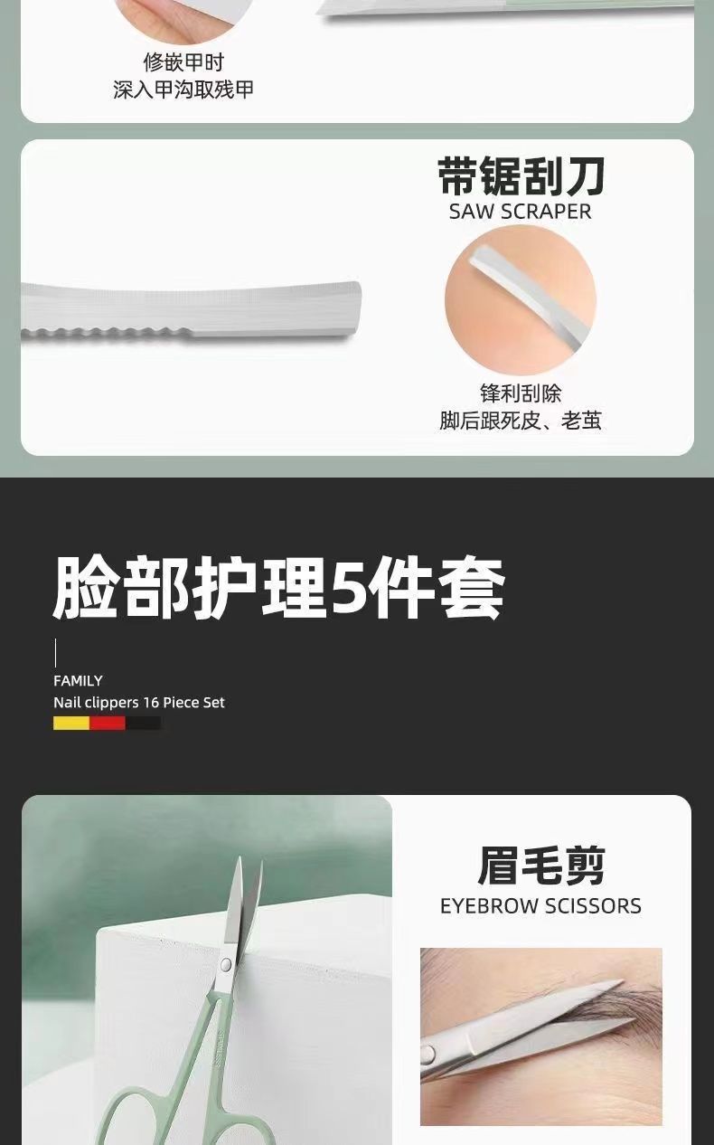锋利碳钢指甲刀套装全套指甲剪钳套装家用挖耳勺死皮剪修脚工具刀