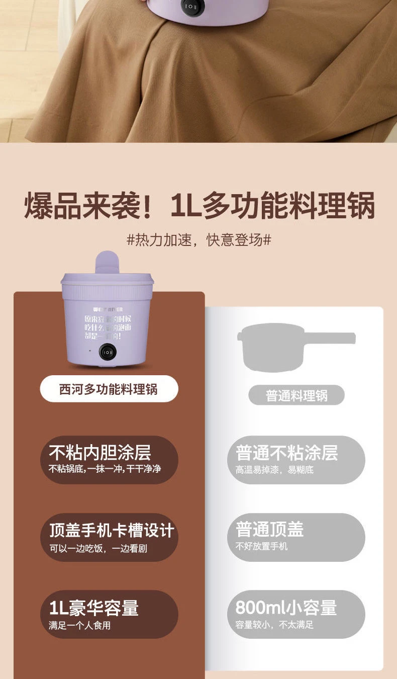 多功能泡面锅煎炒煮涮电煮锅宿舍懒人电热锅网红同款厨房小电饭锅