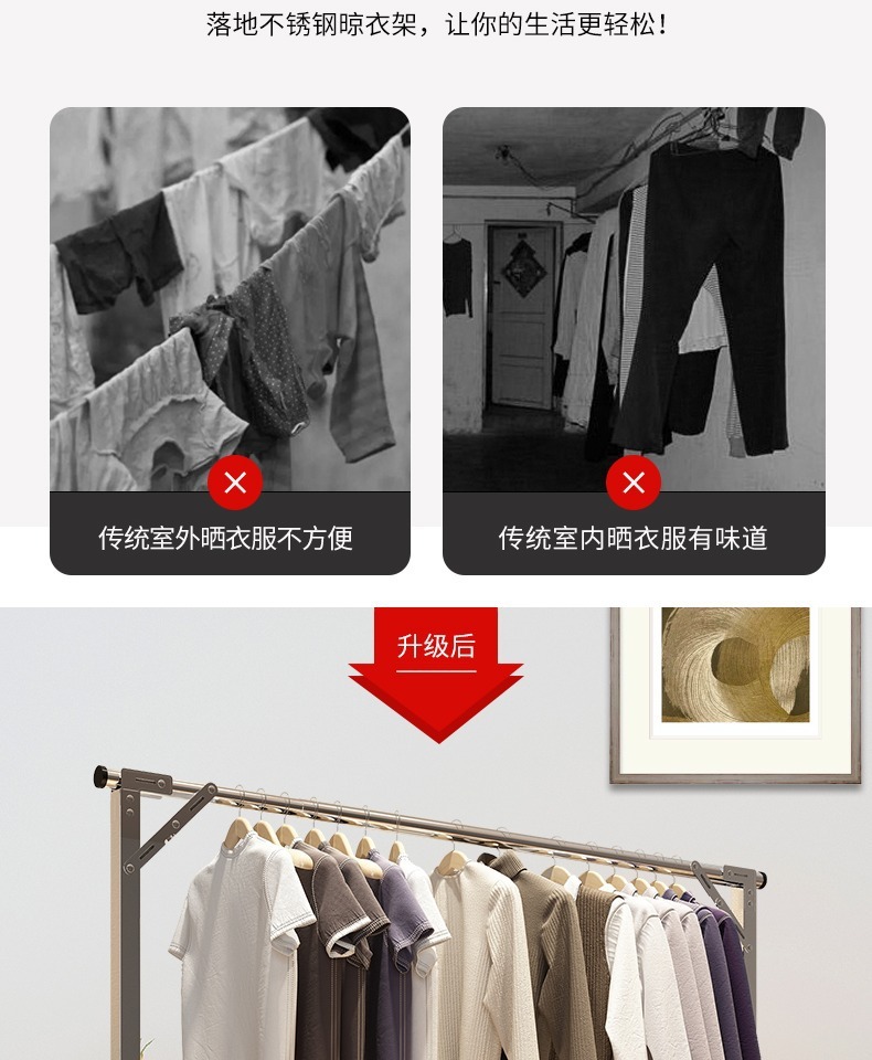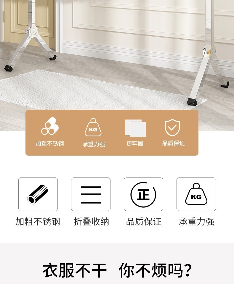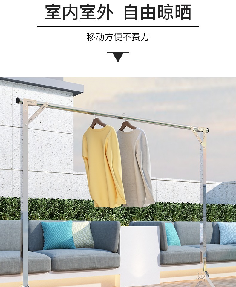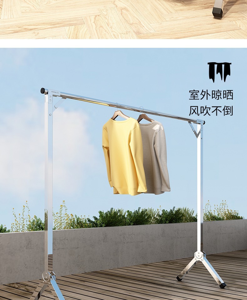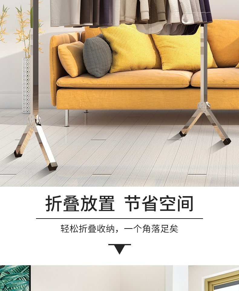 单杆式不锈钢晾衣架落地折叠室内阳台折叠晾衣杆卧室宿舍晒衣架