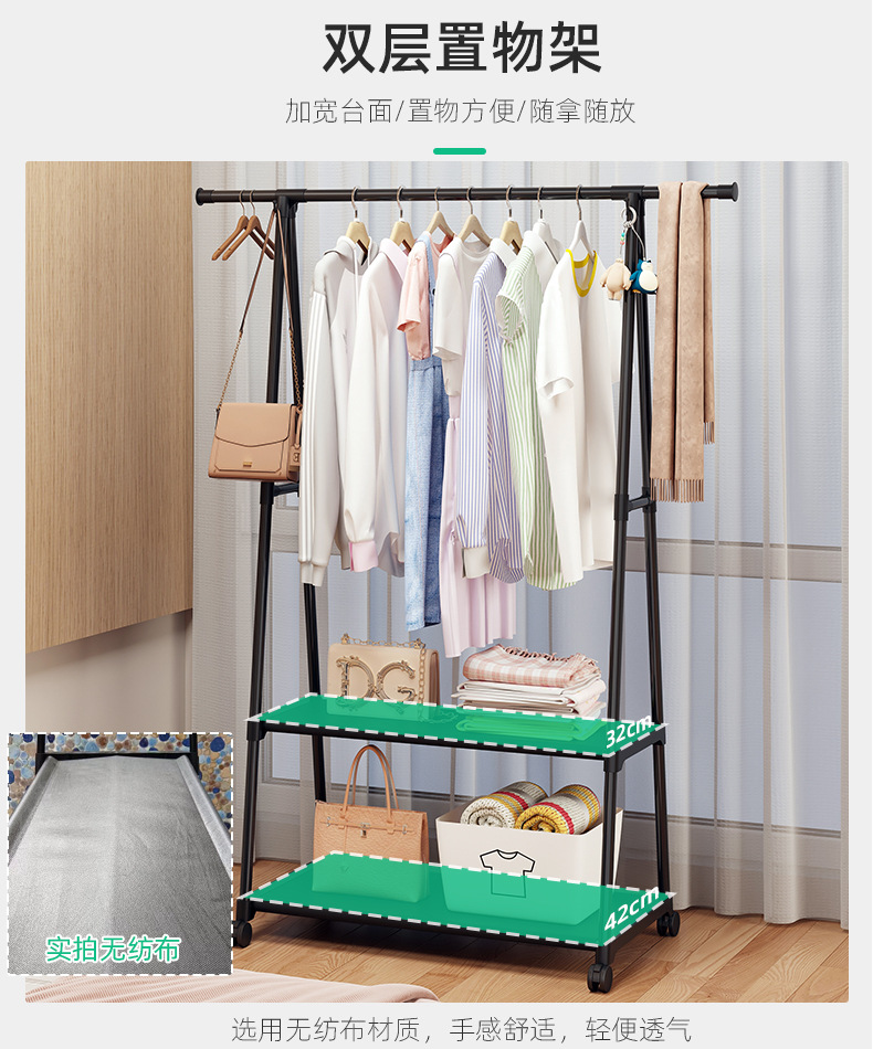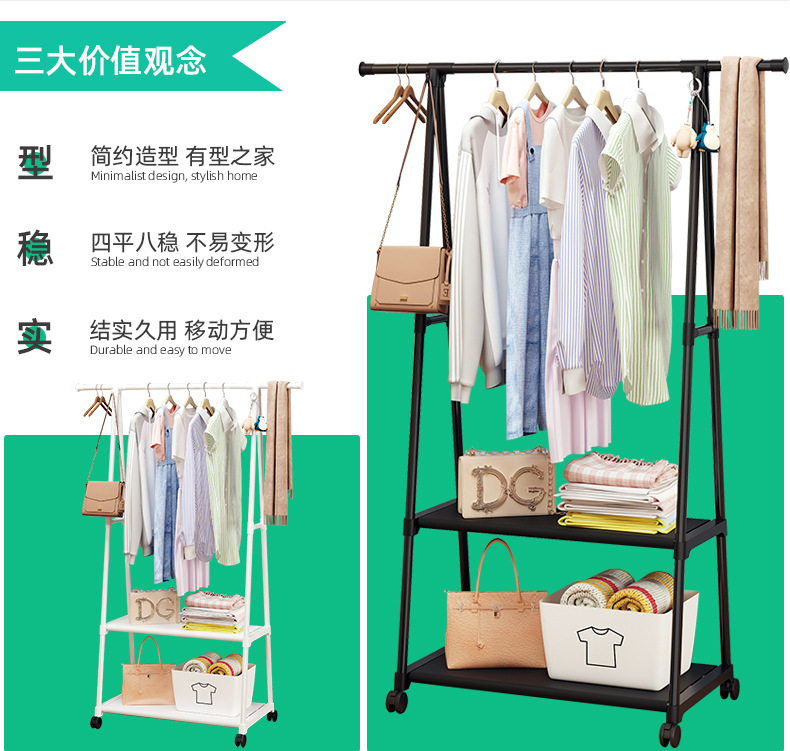 衣帽架落地移动 挂衣服家用三角带轮置物收纳衣架 挂衣架一件起批