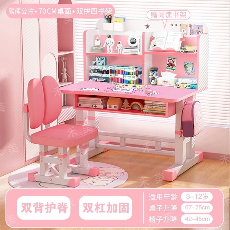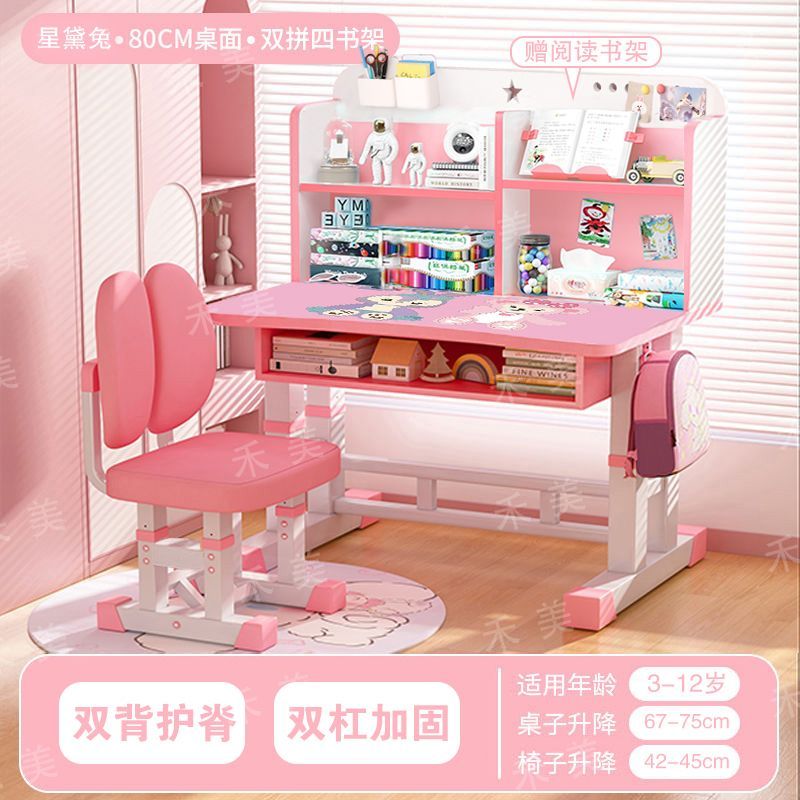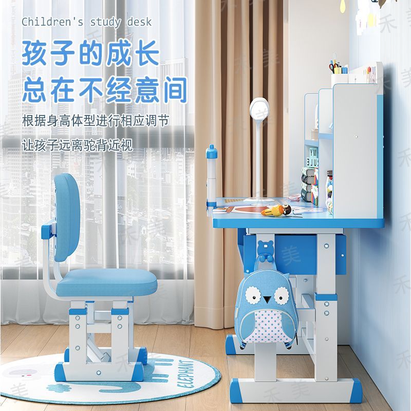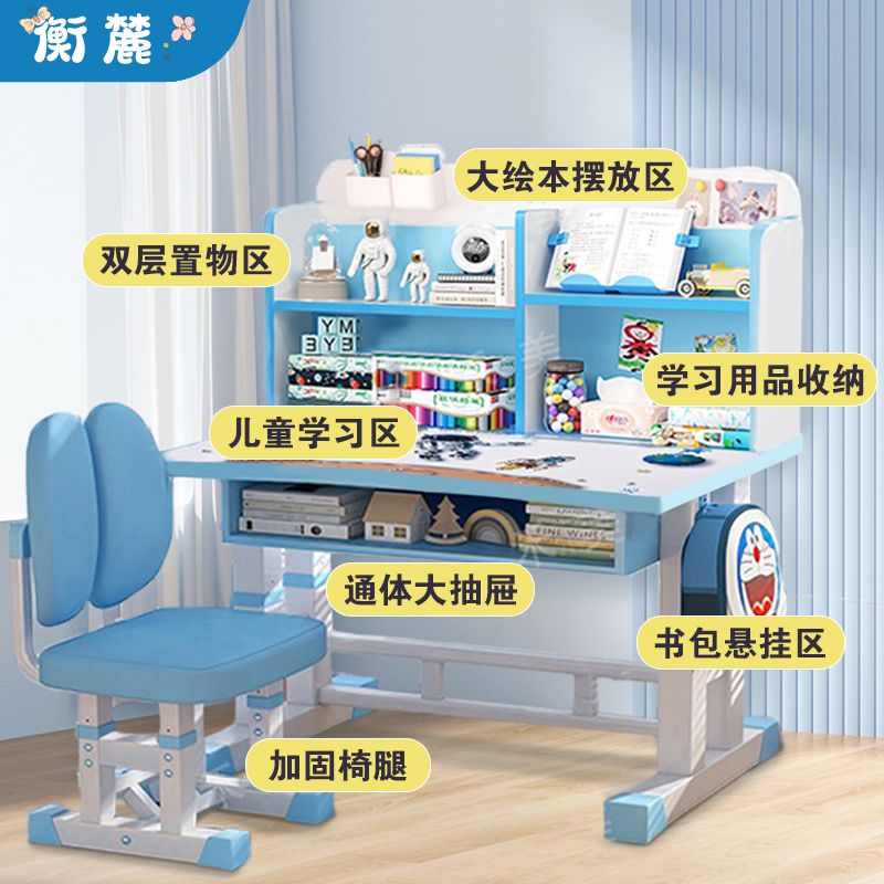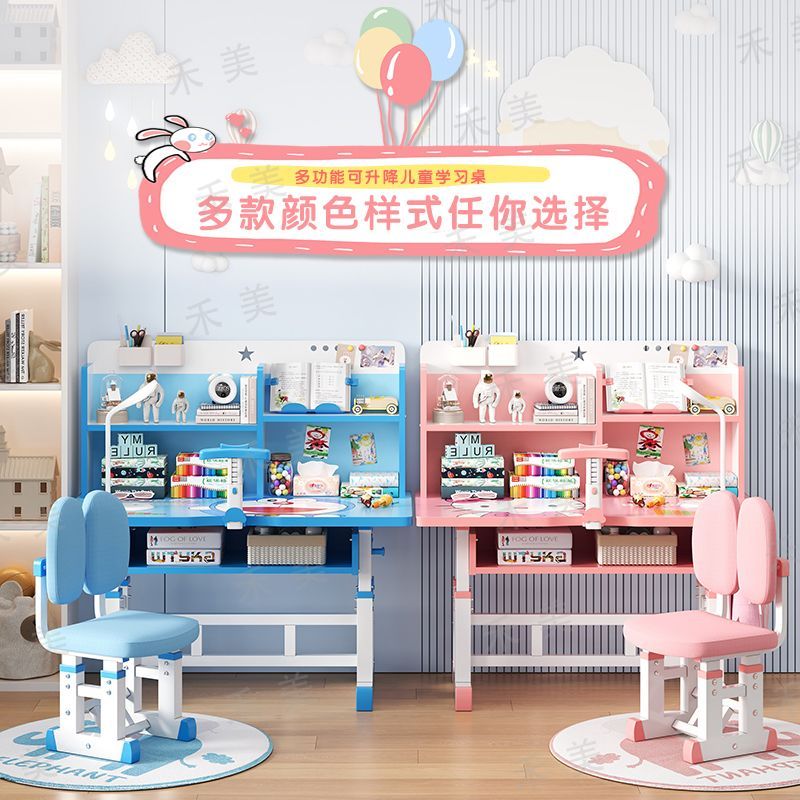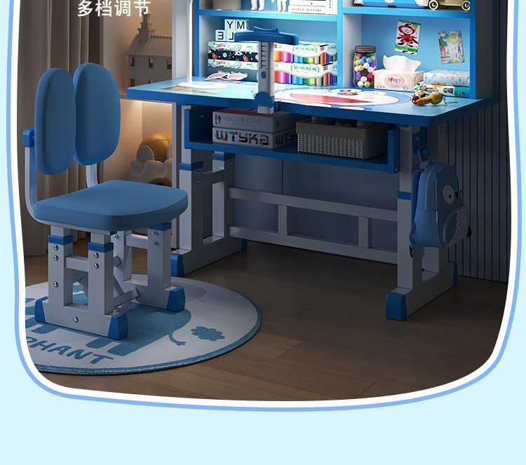 儿童学习桌椅套装家用中小学生书桌书架写字桌可升降课桌椅子组合
