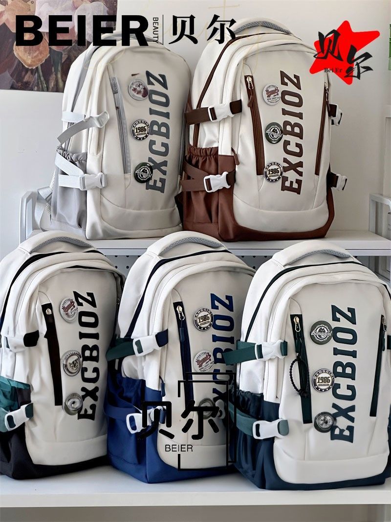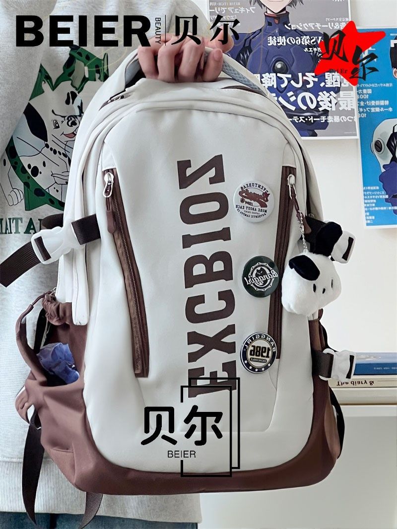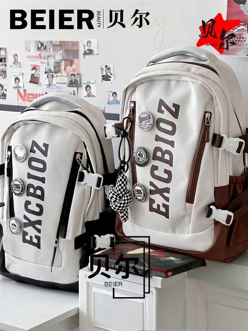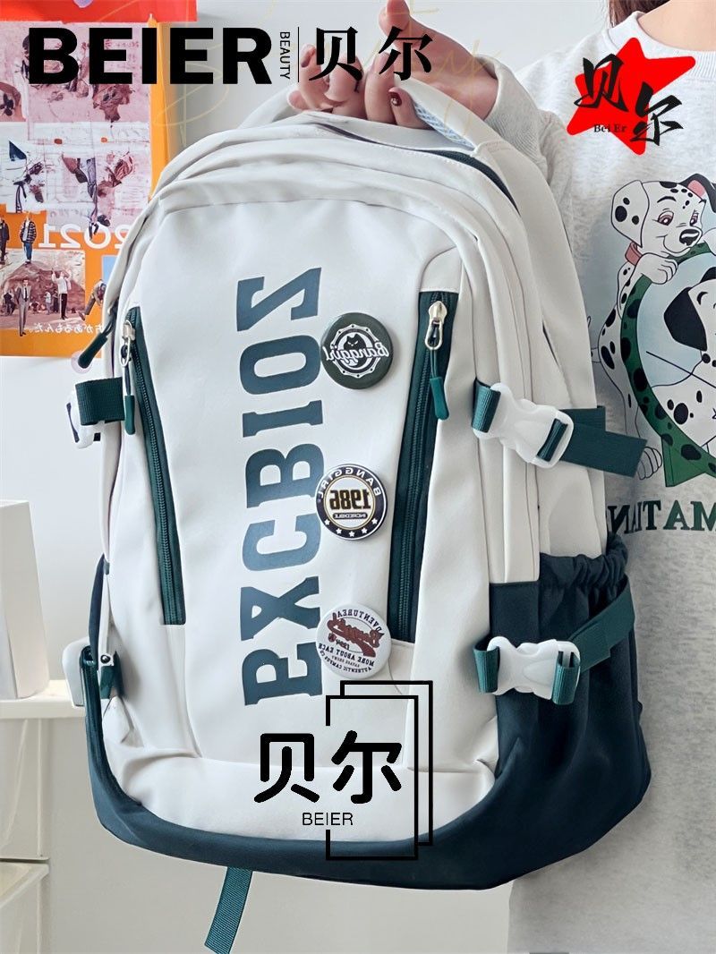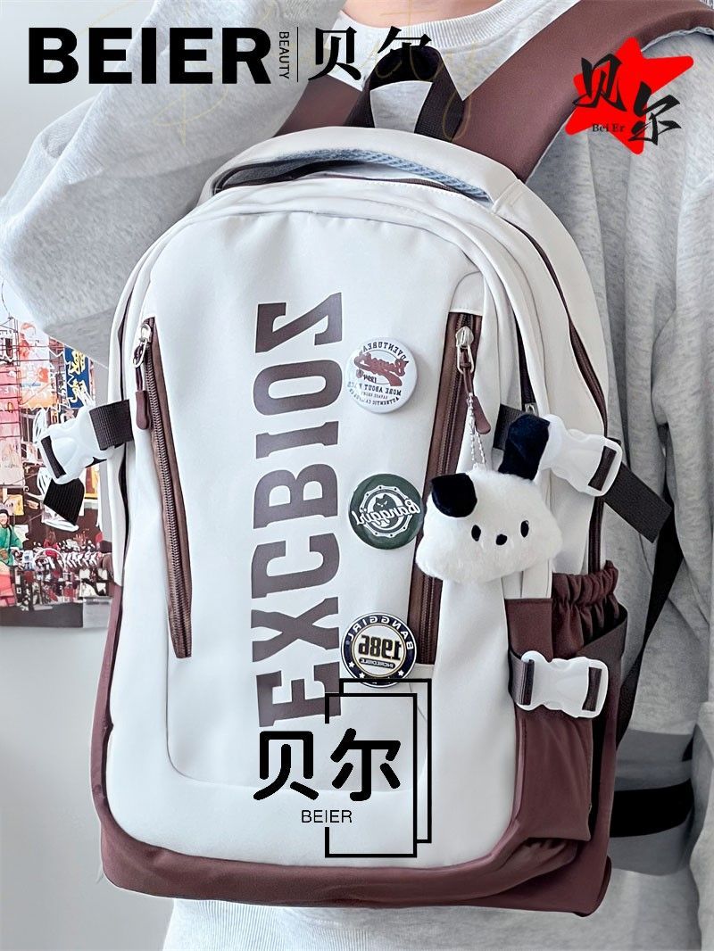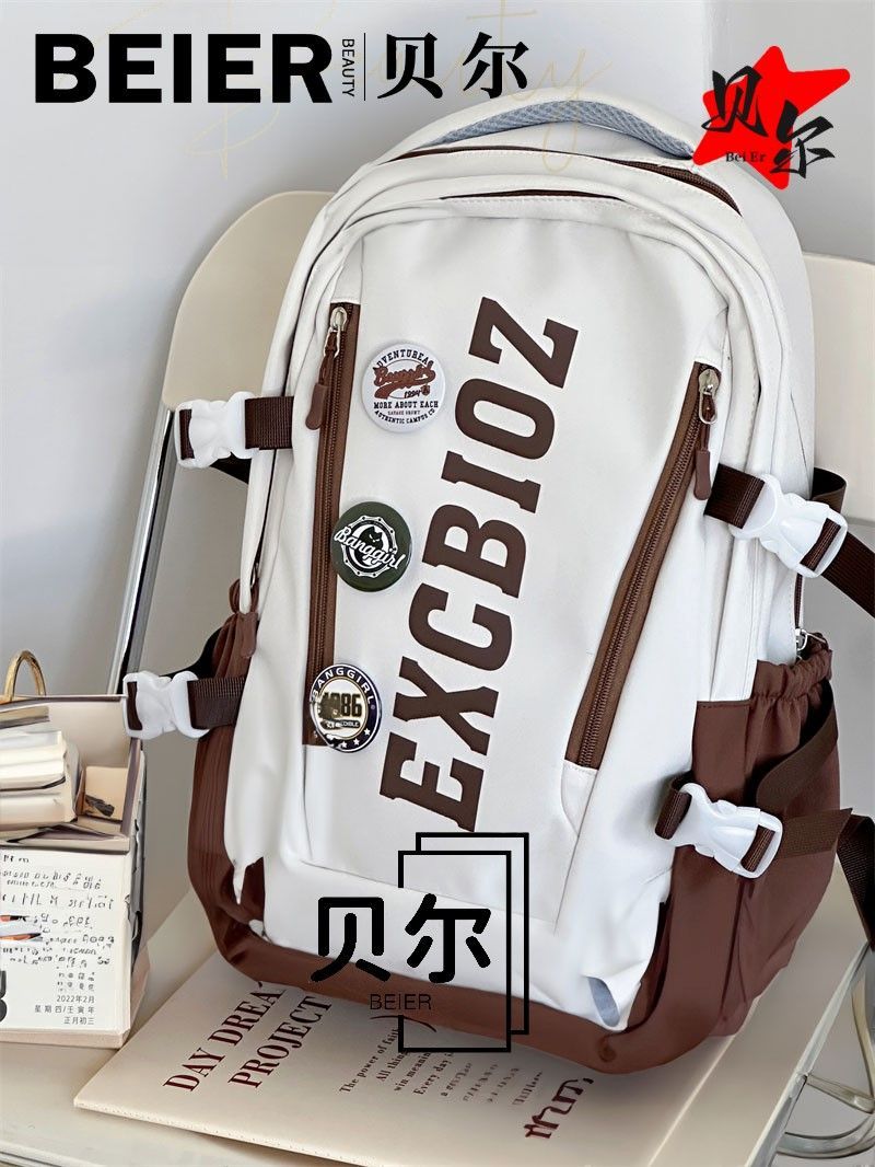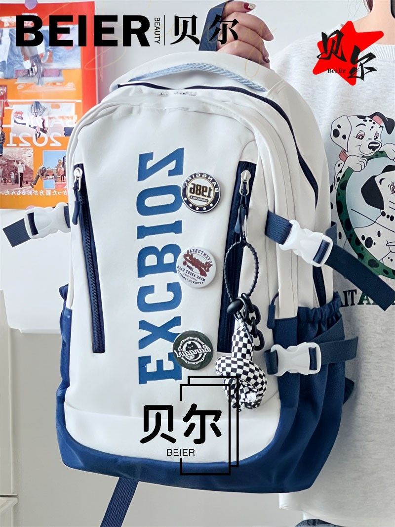 美式复古帅气双肩大容量多隔层高中初中生书包ins小众欧美风背包