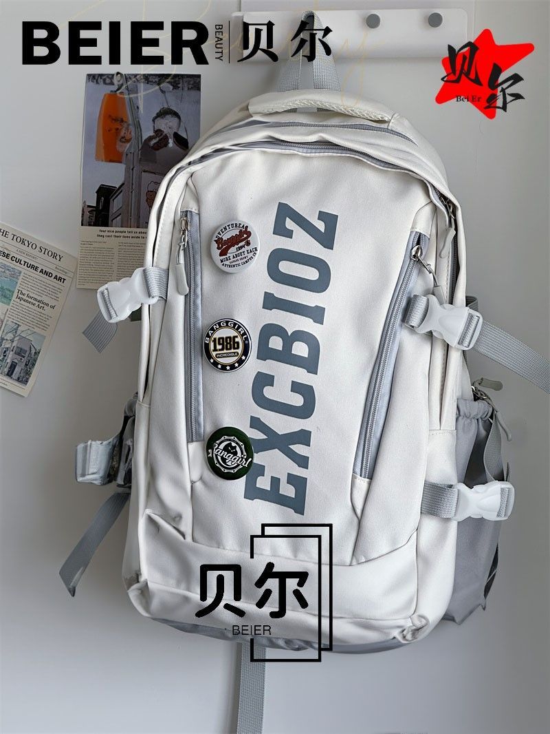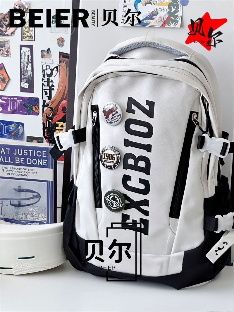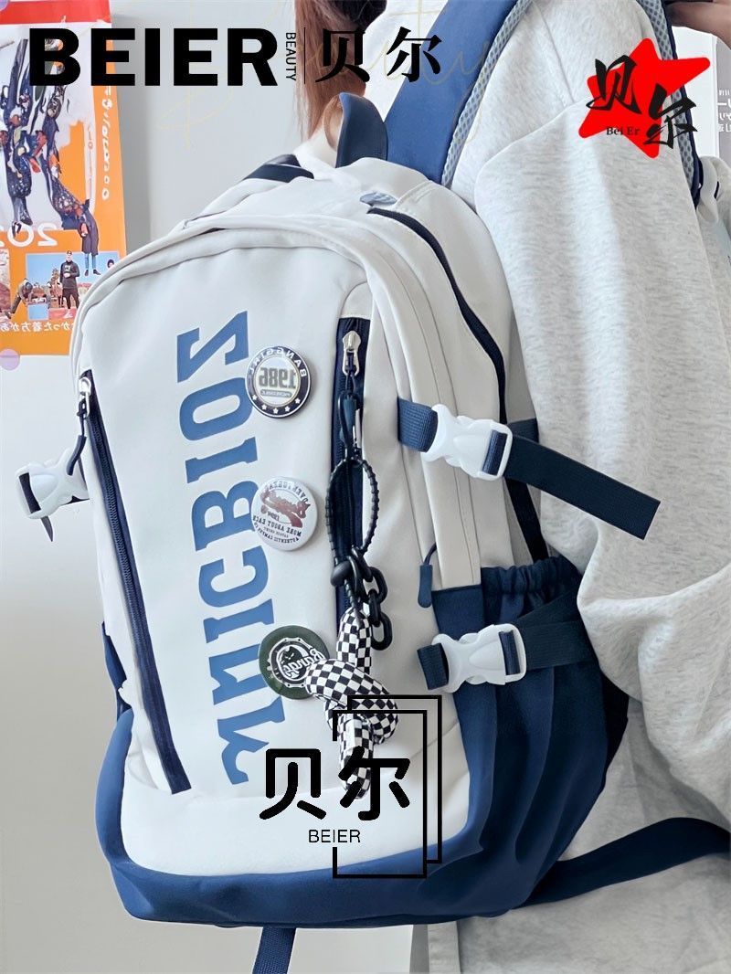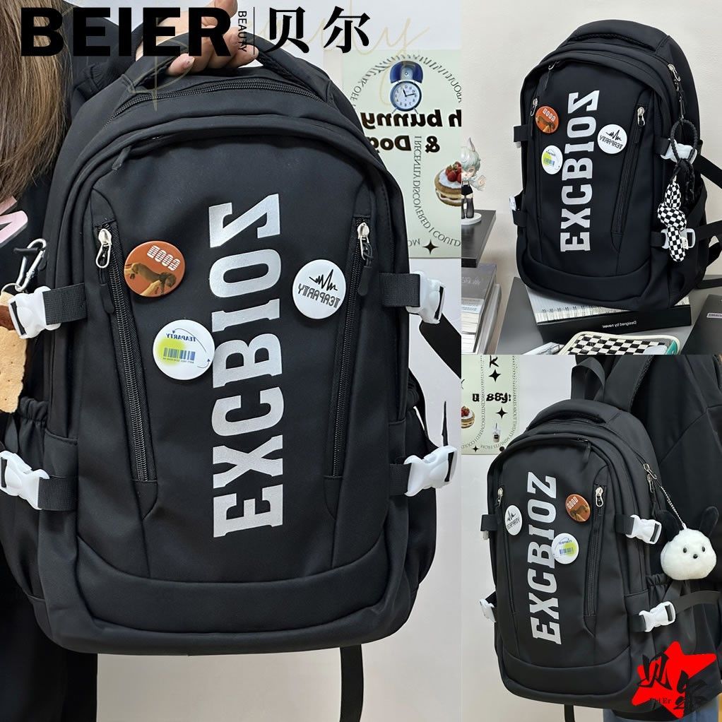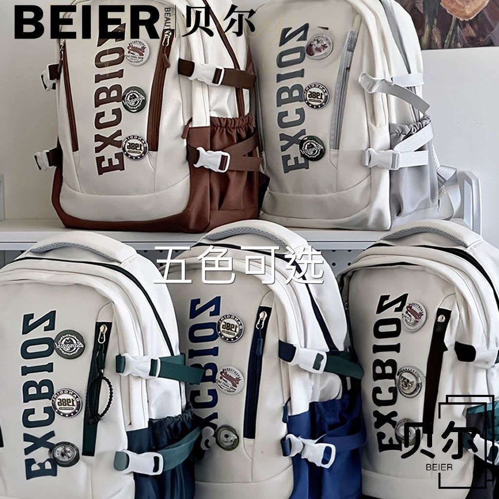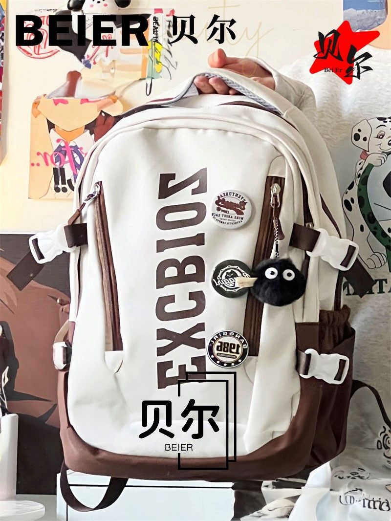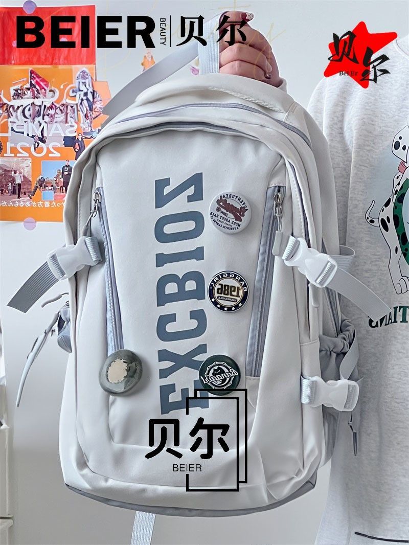 美式复古帅气双肩大容量多隔层高中初中生书包ins小众欧美风背包
