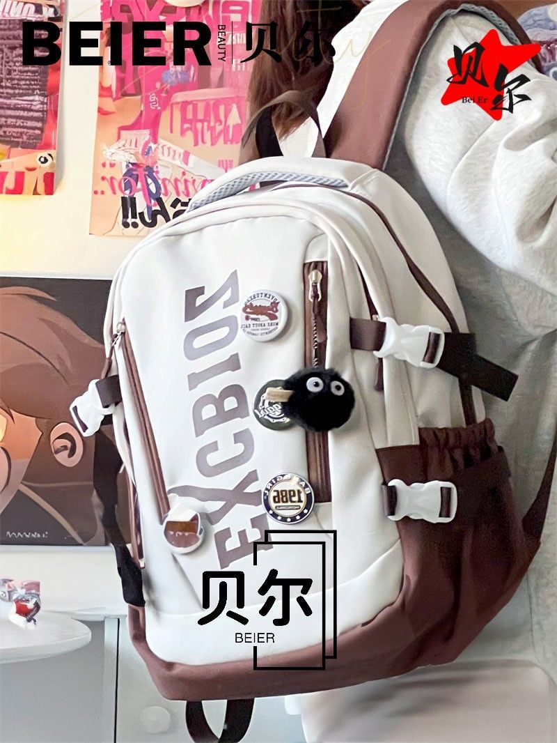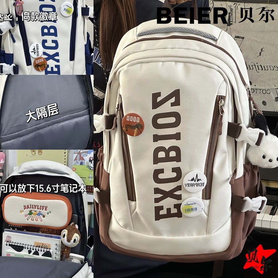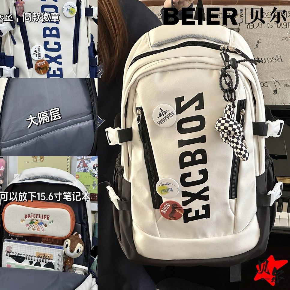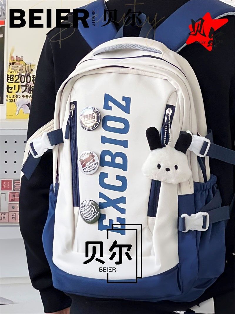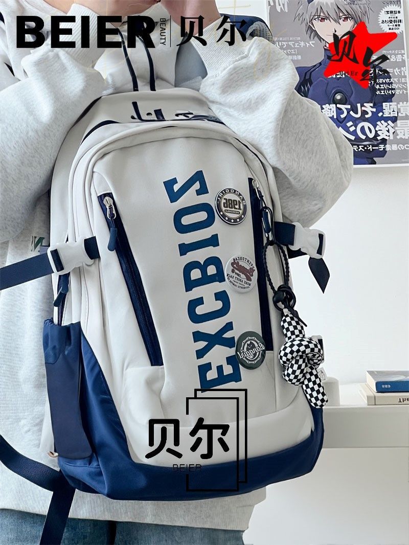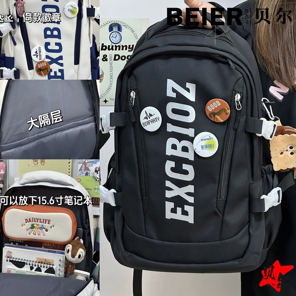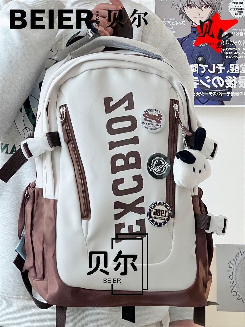 美式复古帅气双肩大容量多隔层高中初中生书包ins小众欧美风背包