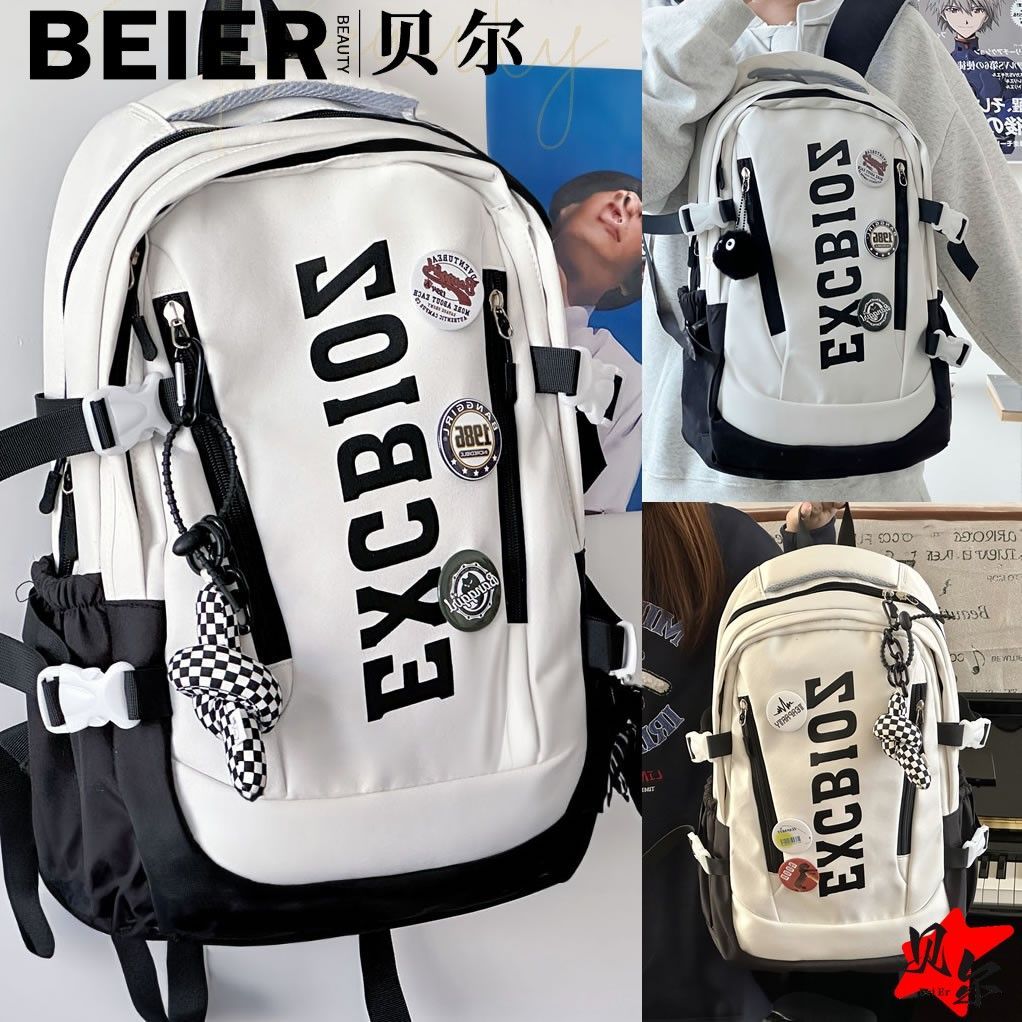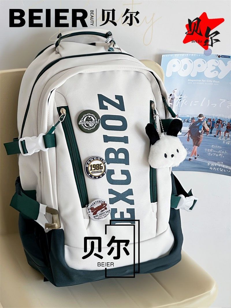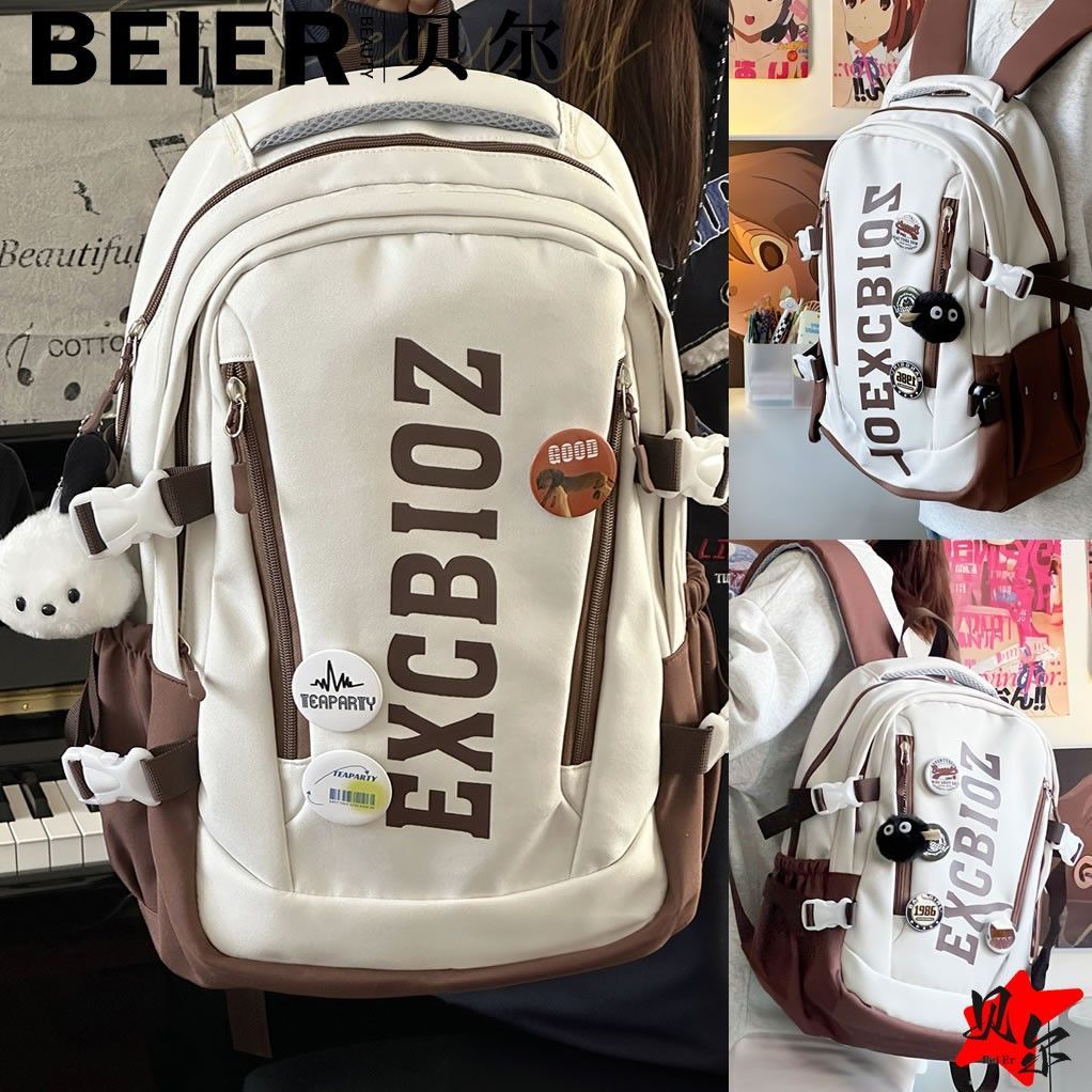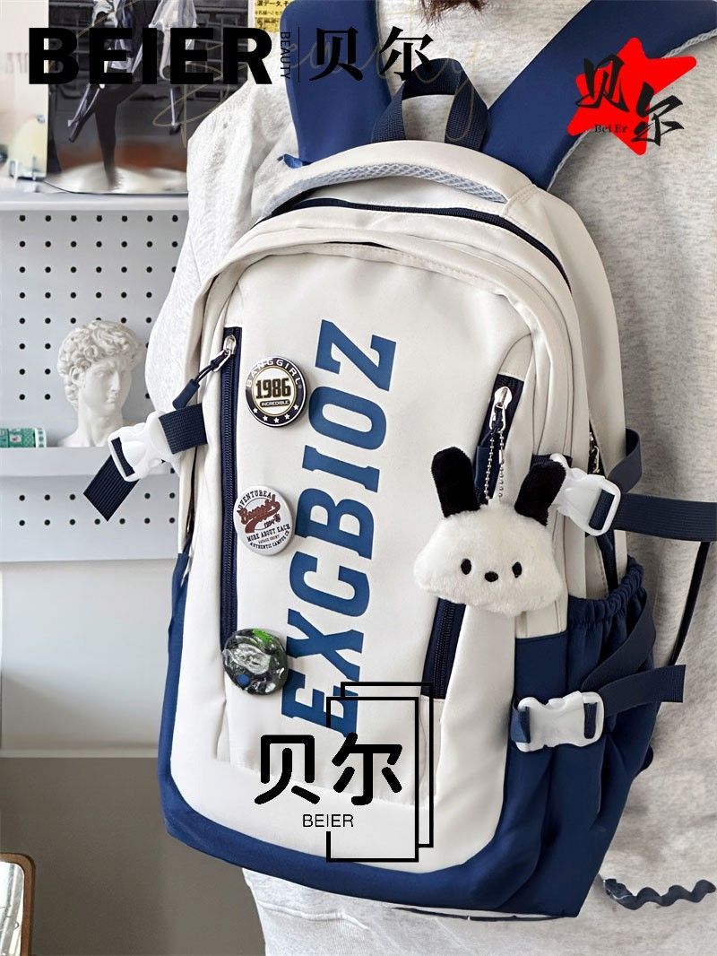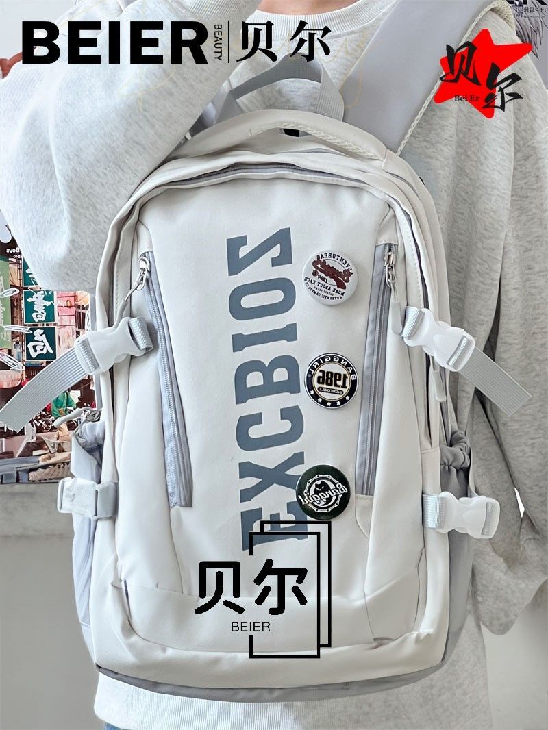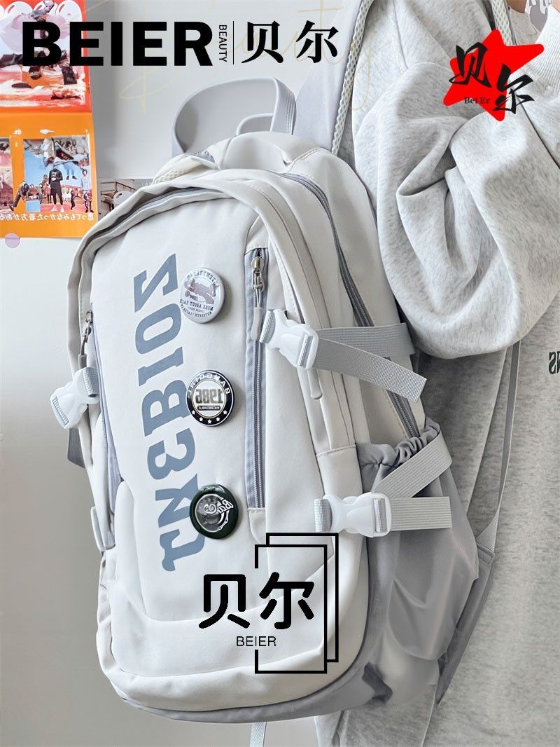美式复古帅气双肩大容量多隔层高中初中生书包ins小众欧美风背包