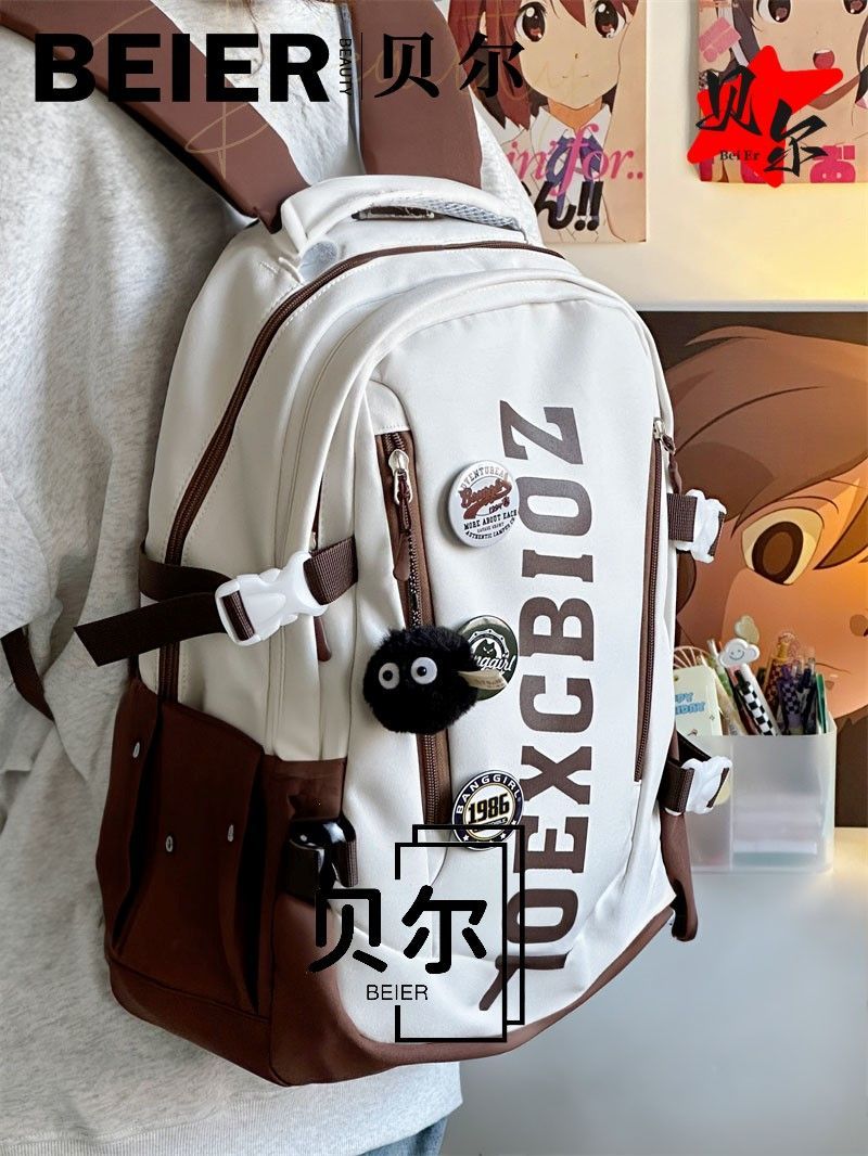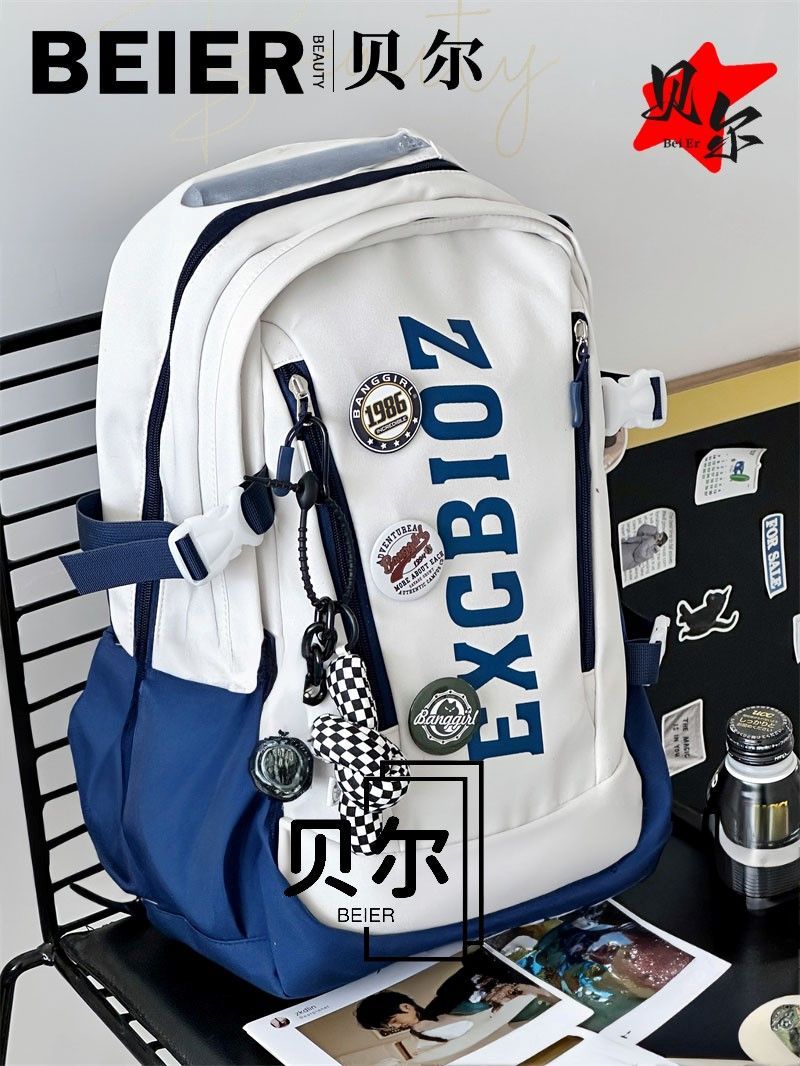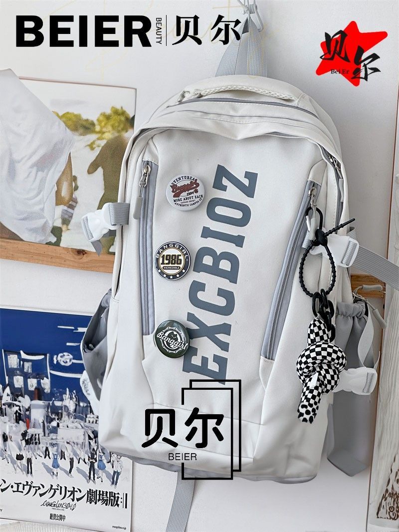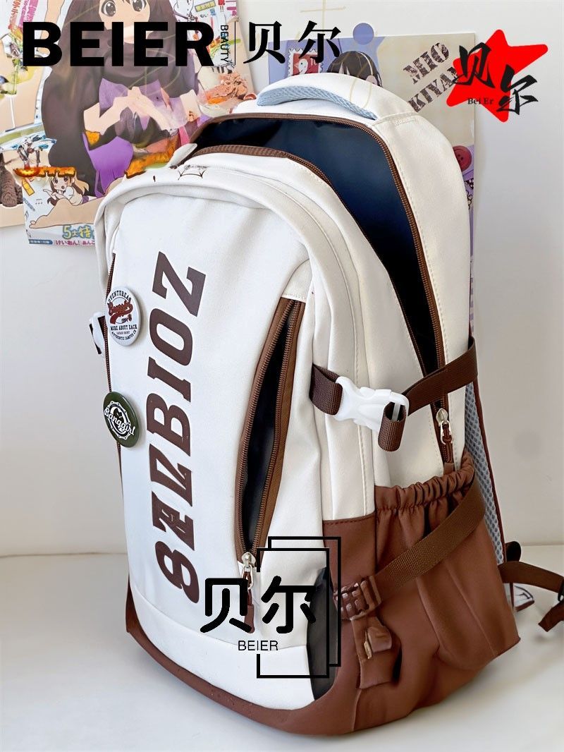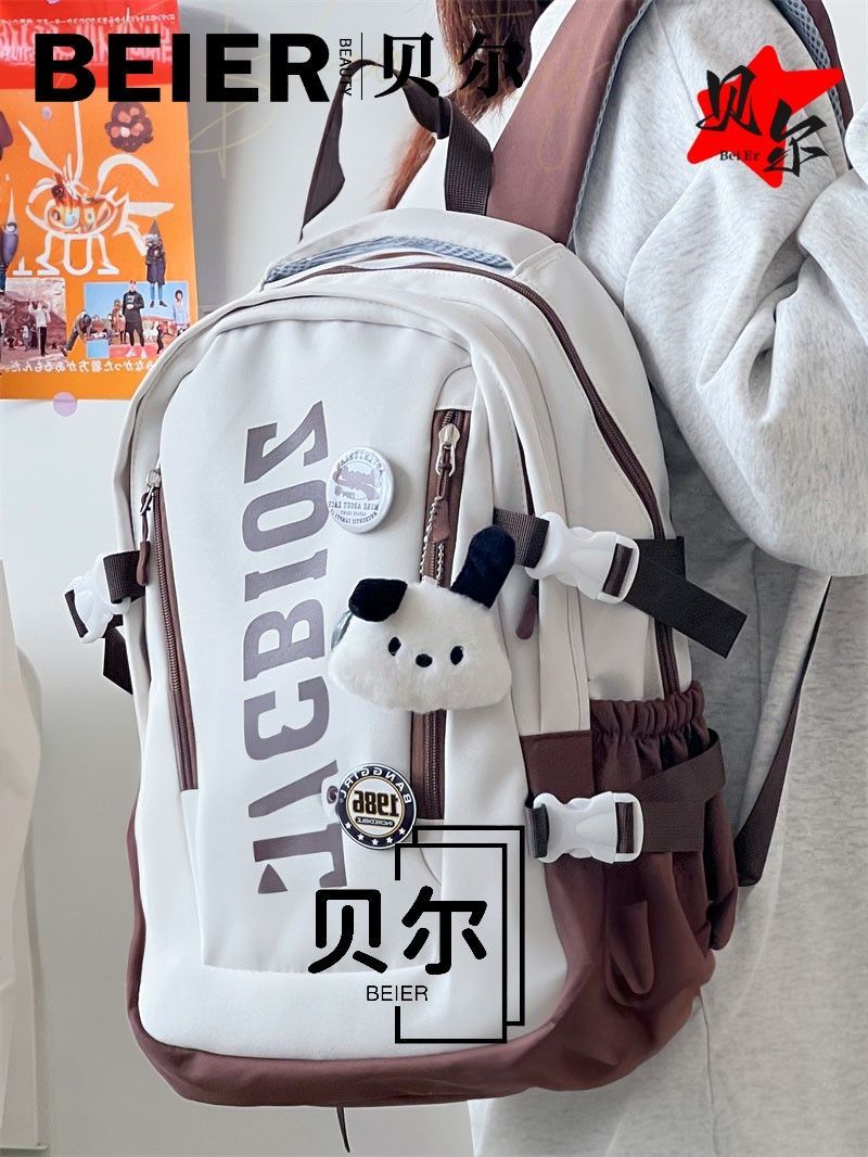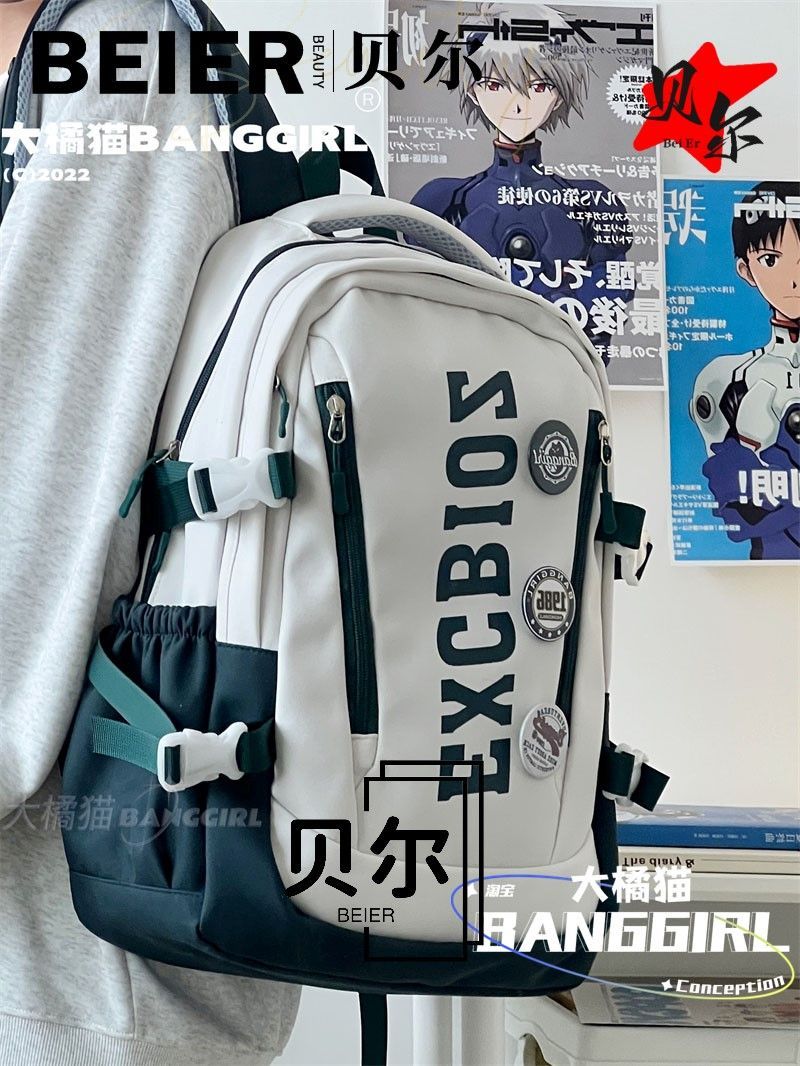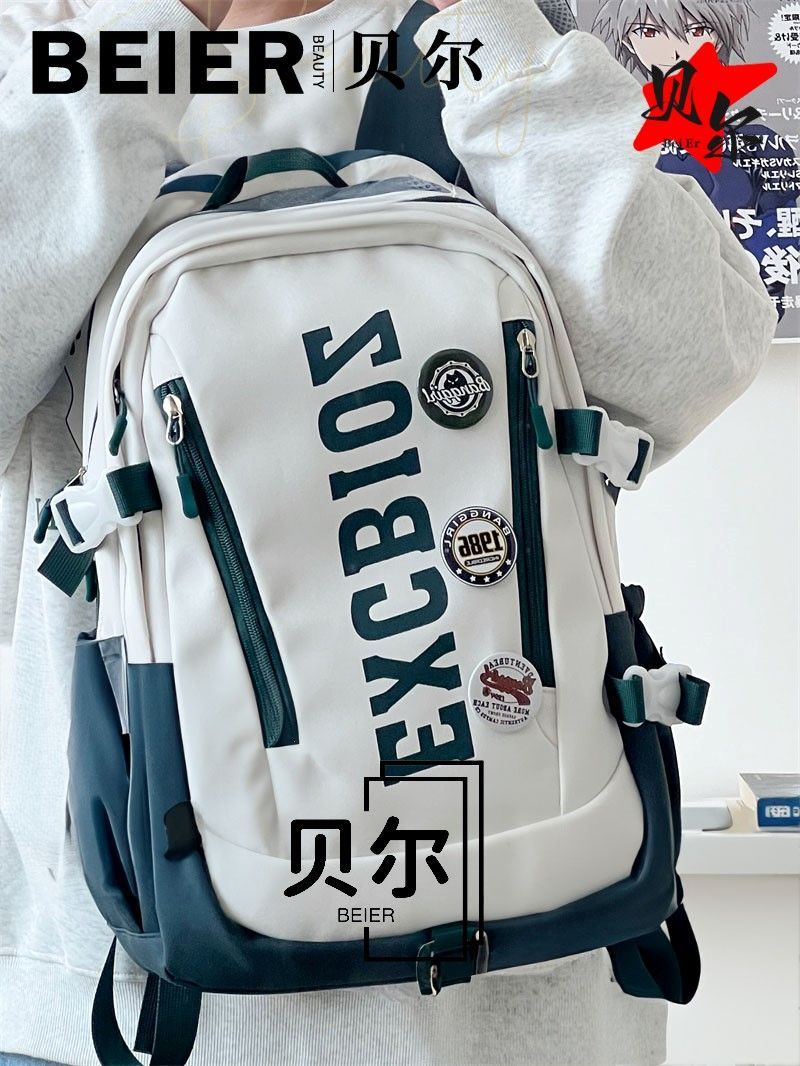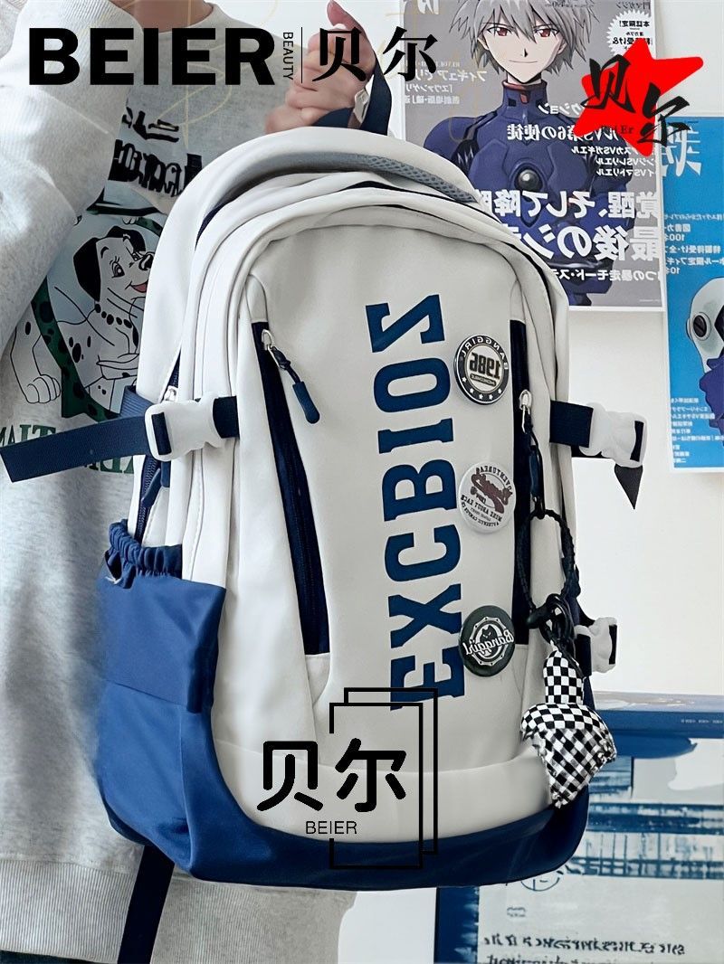 美式复古帅气双肩大容量多隔层高中初中生书包ins小众欧美风背包