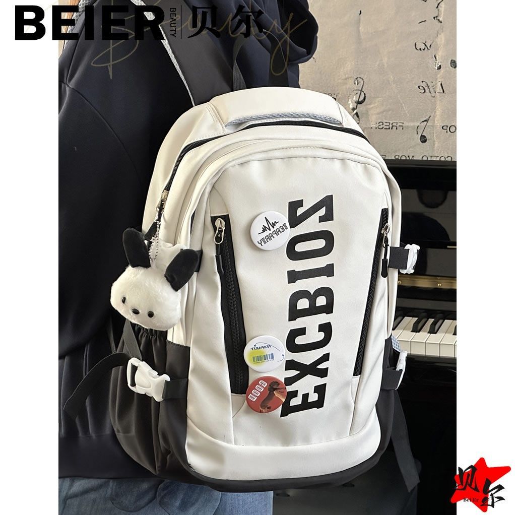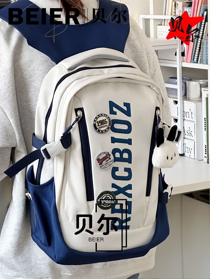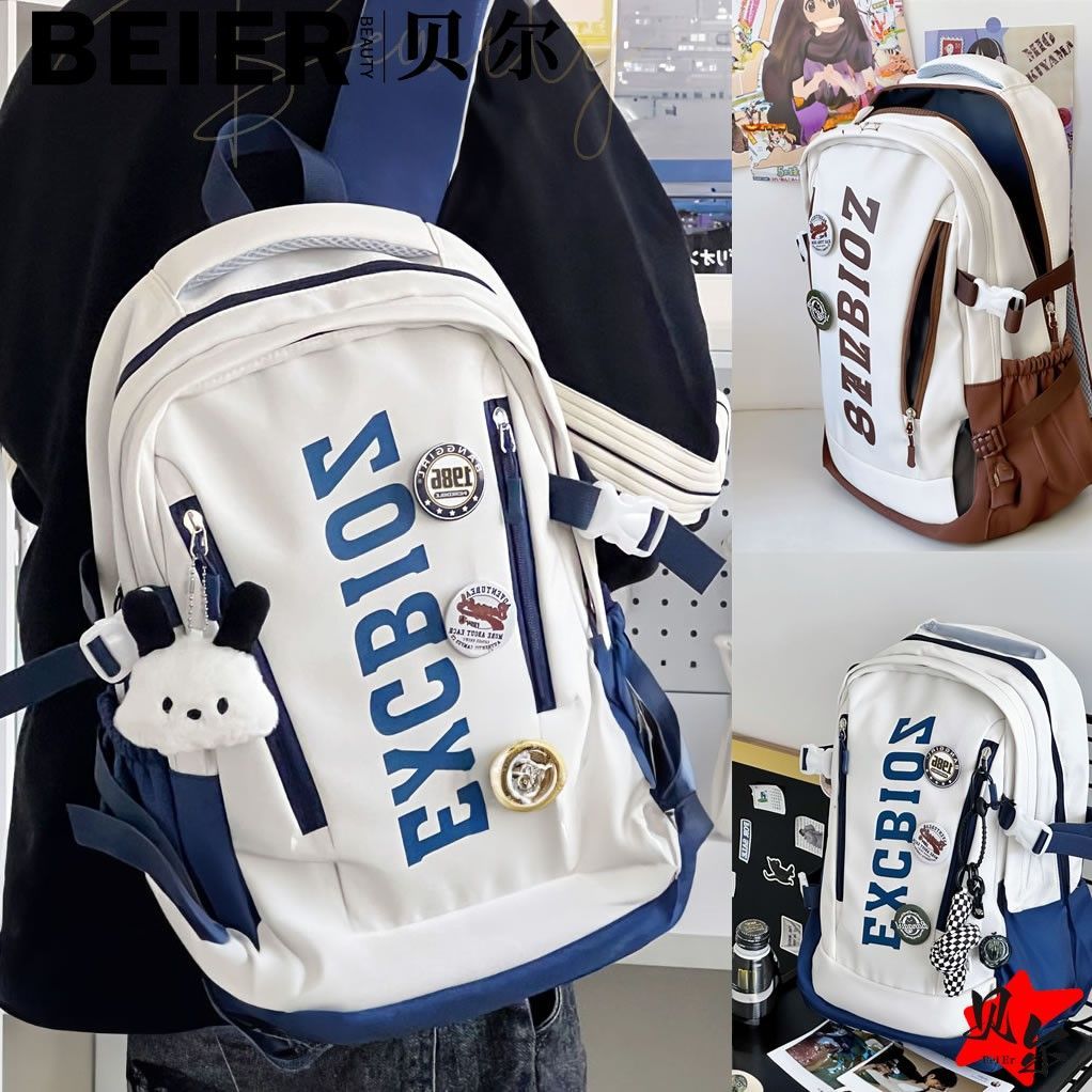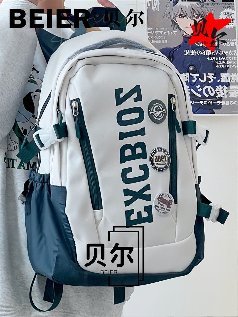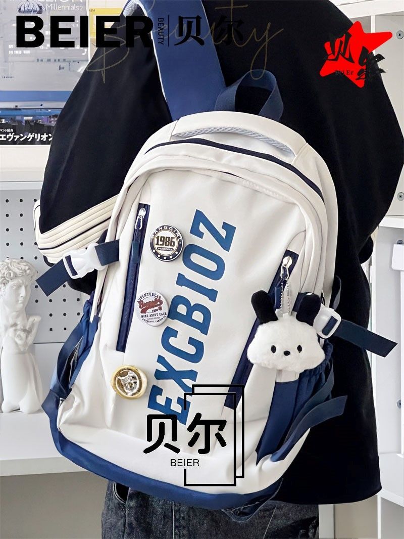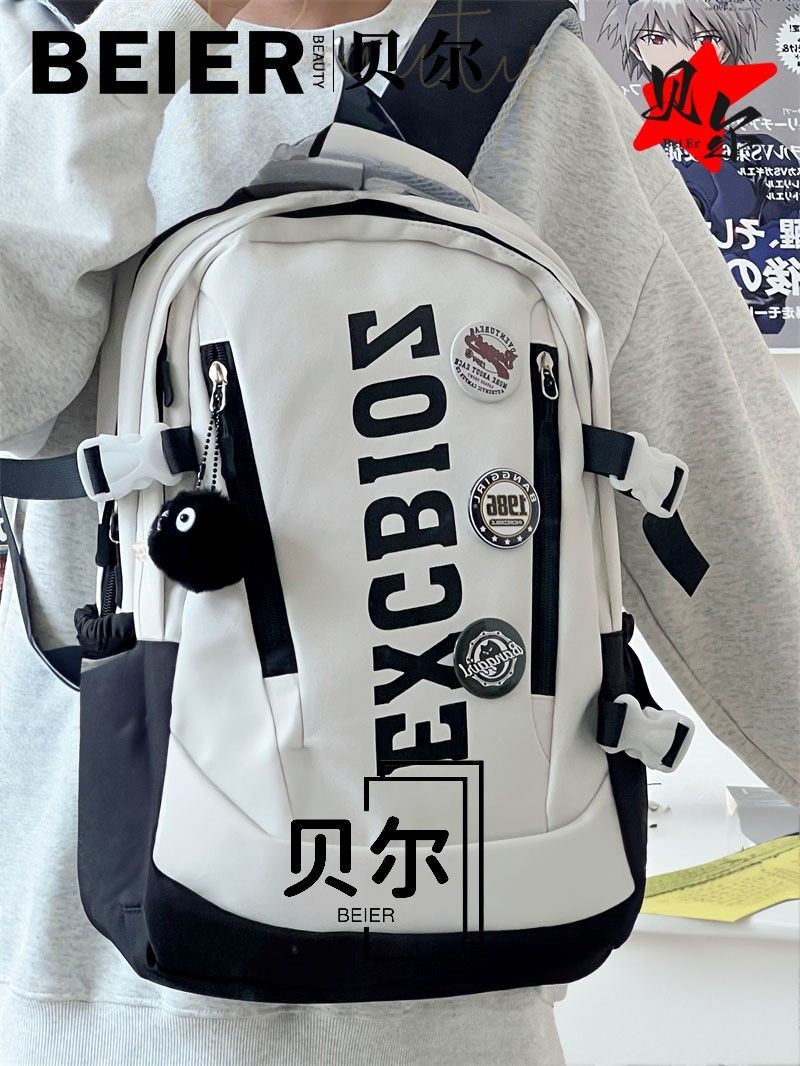 美式复古帅气双肩大容量多隔层高中初中生书包ins小众欧美风背包